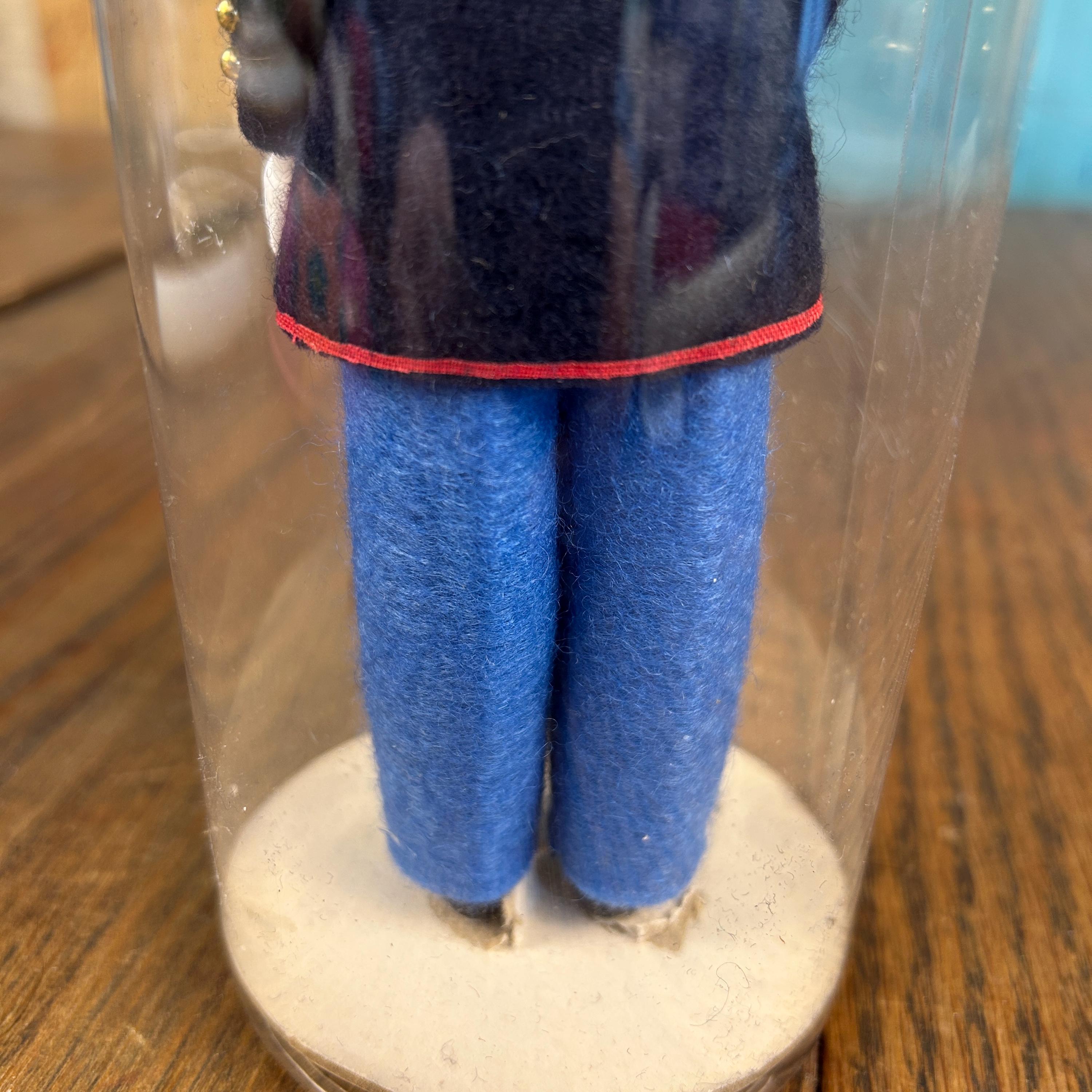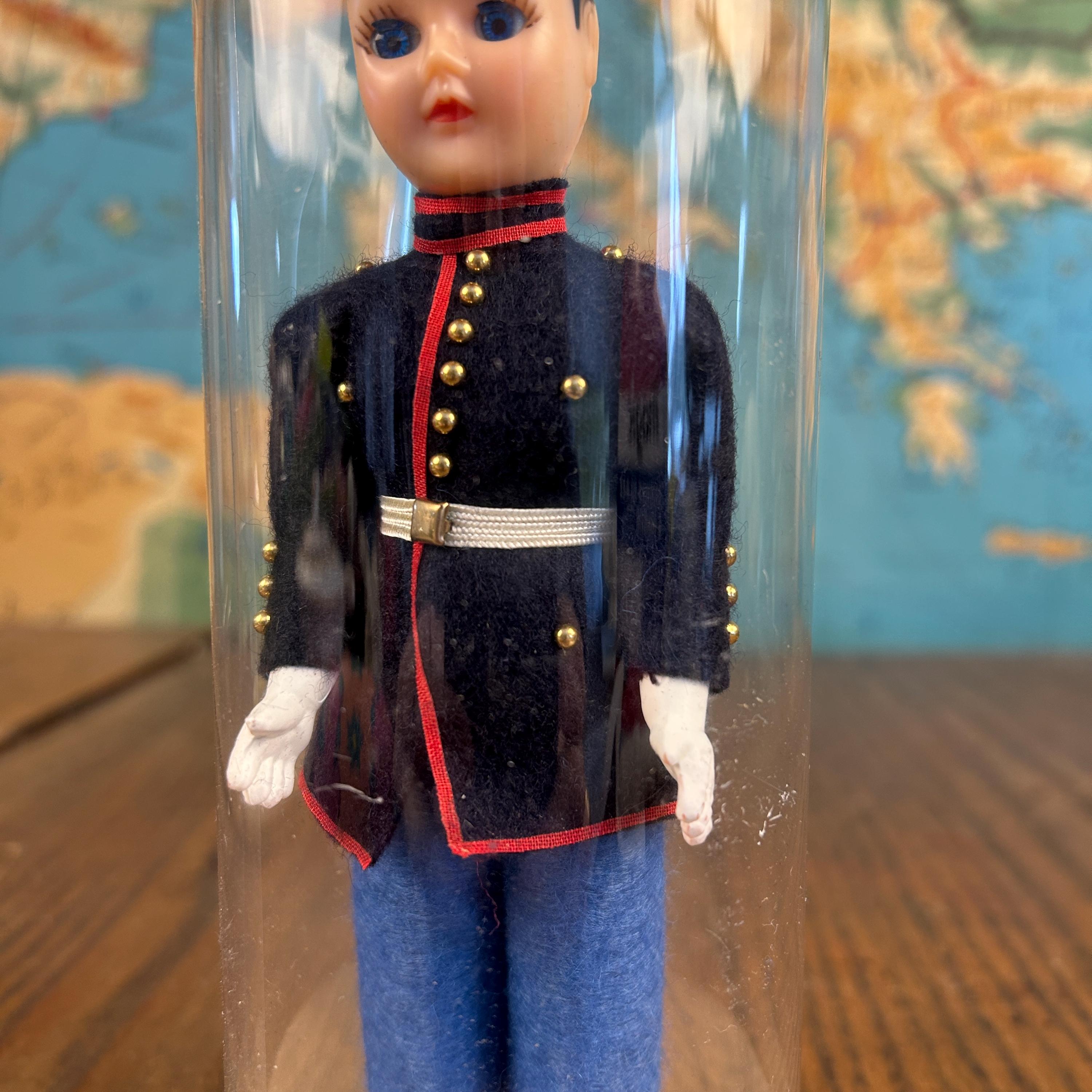 Produced by Ken Nolan, Inc., this collectible doll features a plastic body with detailed felt military-style clothing and classic sleep eyes that open and close. These dolls were often sold in special packaging labeled “Send-Me-Home” Doll, making them a charming piece of both doll and patriotic memorabilia history.