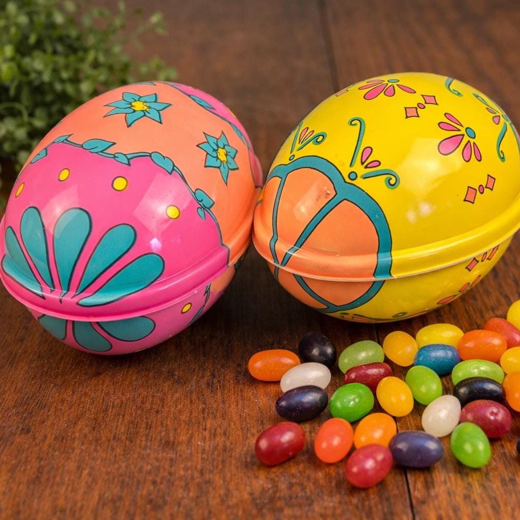These eggs snap open and closed, making them ideal as candy containers, small surprise holders, or festive table décor. Unlike many plastic eggs, they have small flat bottoms, so they can stand upright for easy display in baskets, on shelves, or as part of a centerpiece.