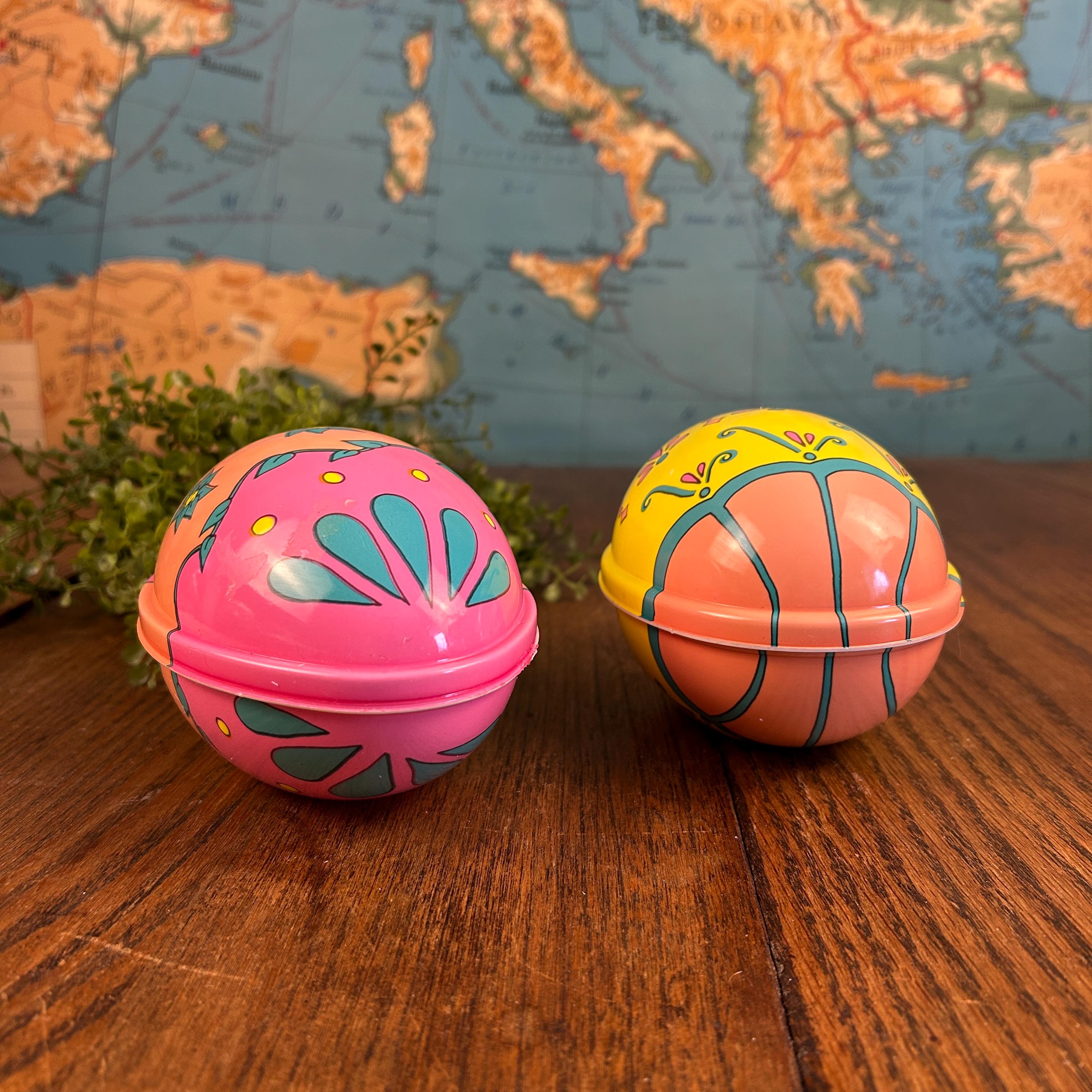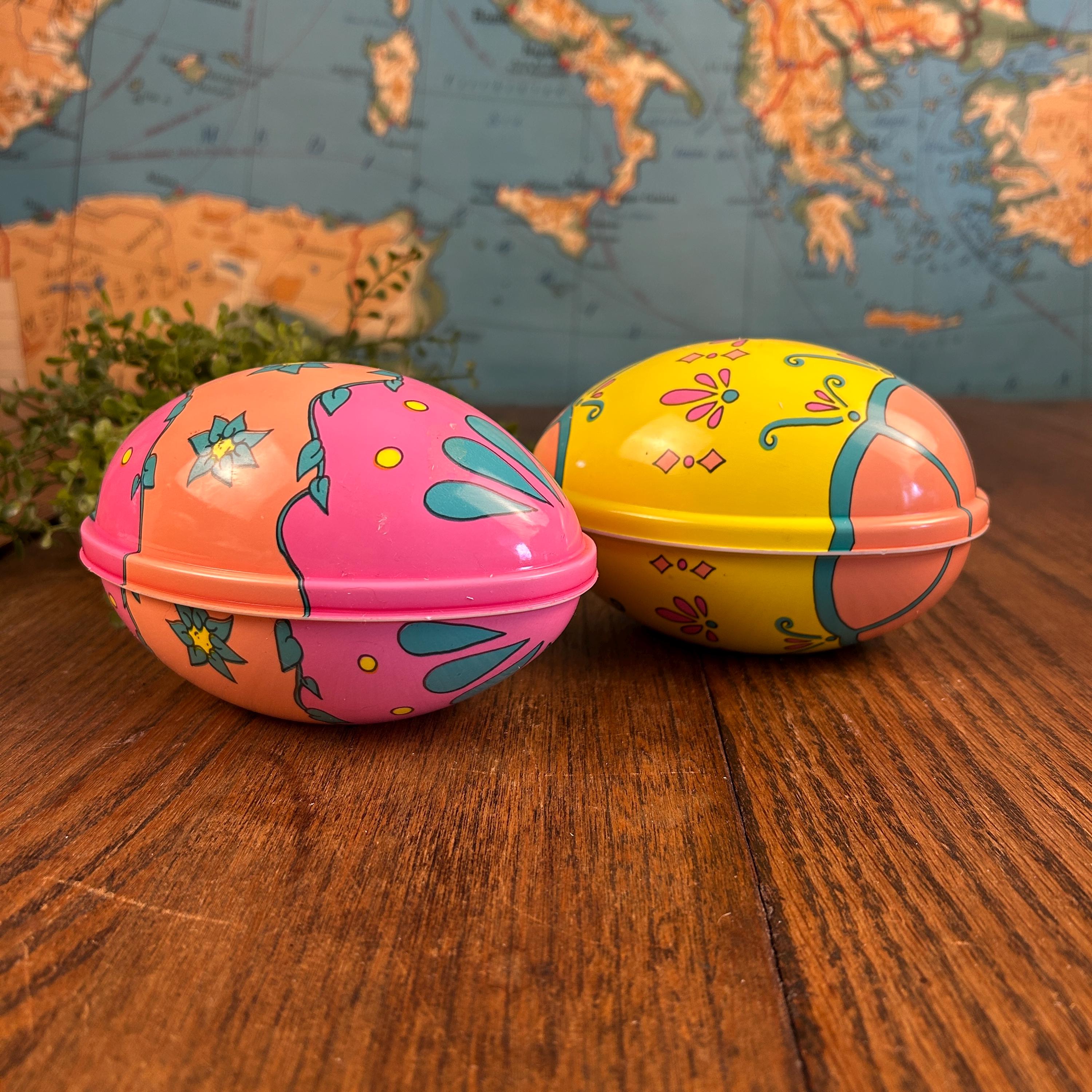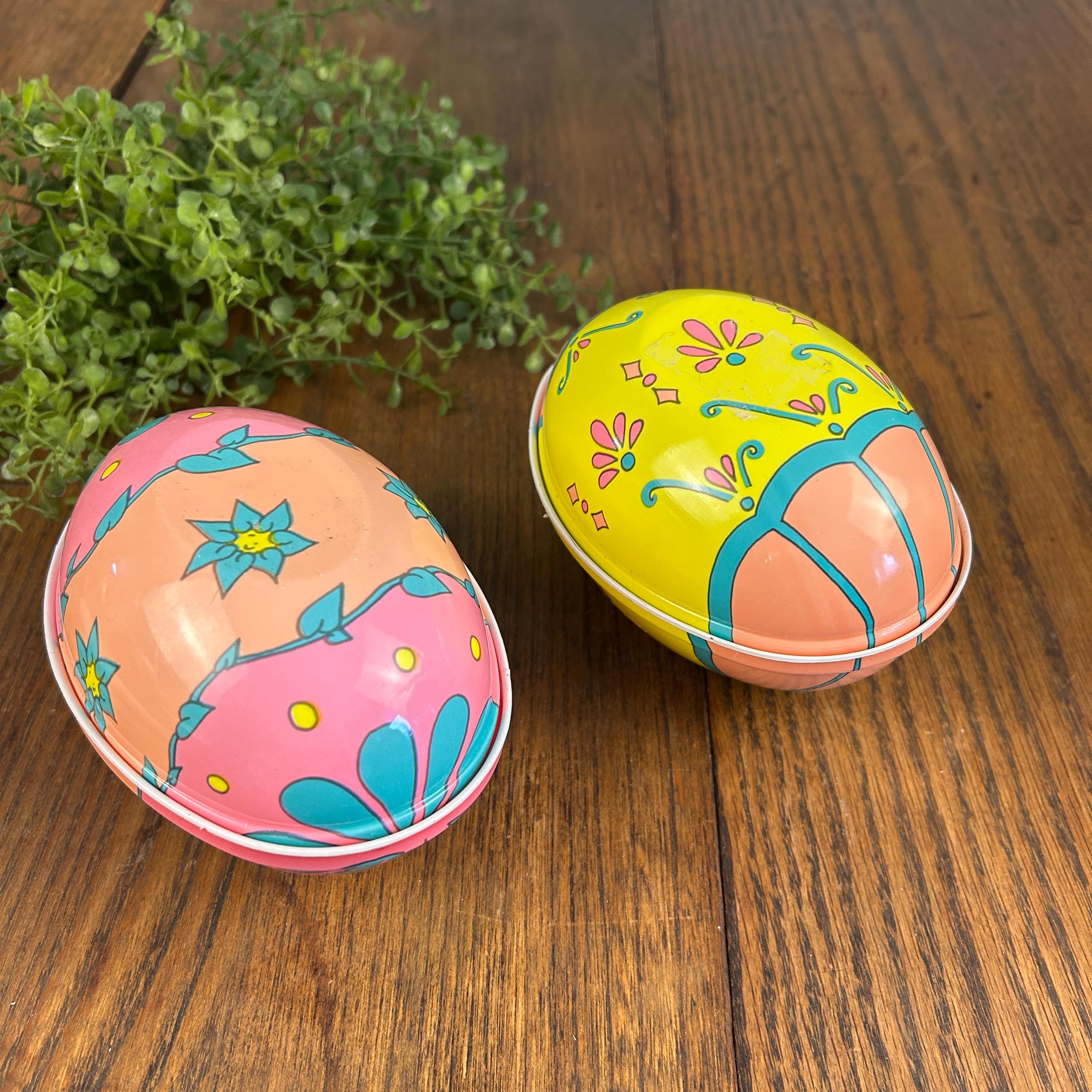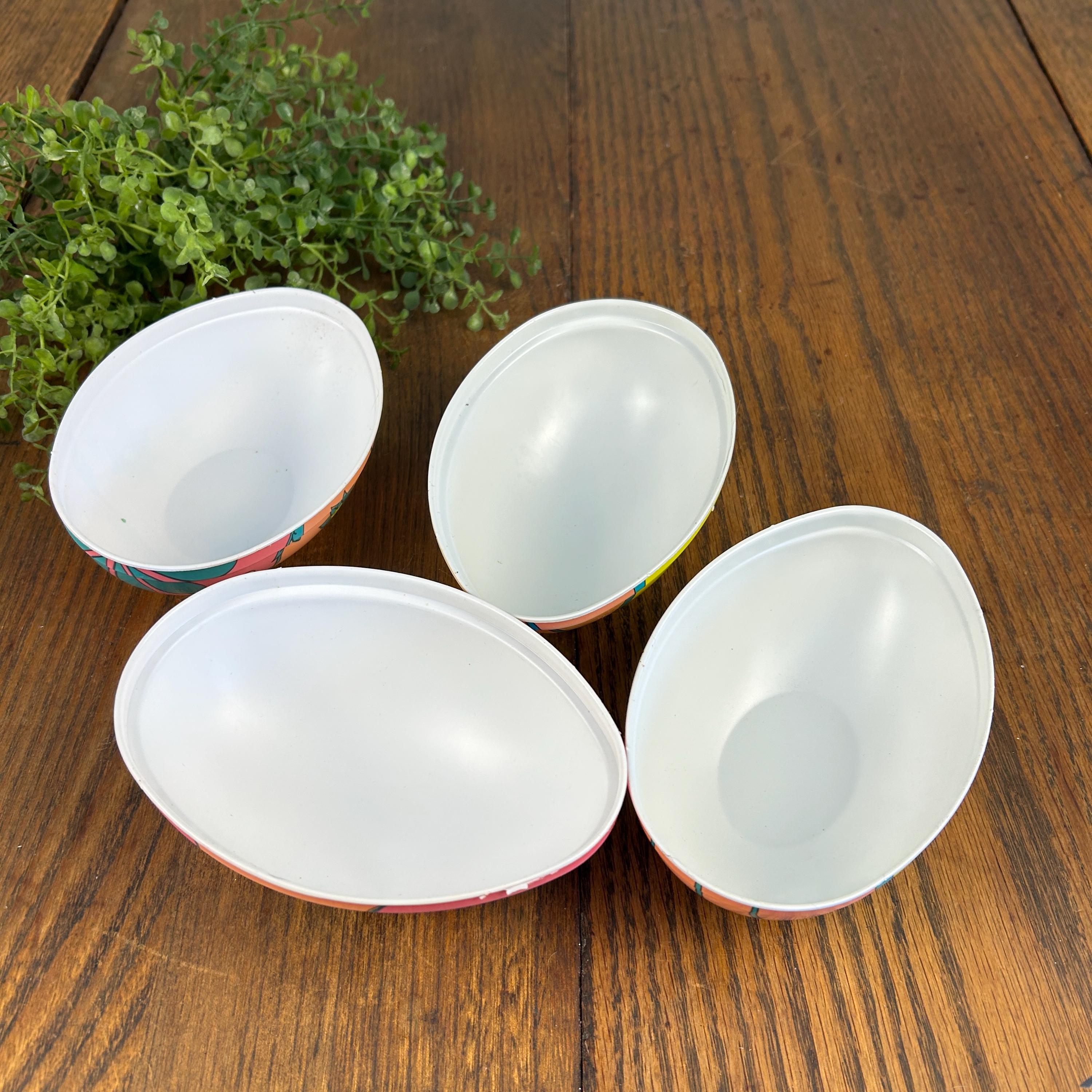 Add a pop of cheerful vintage color to your spring décor with these vintage hard plastic floral Easter eggs. Each egg features a bright, vibrant floral design that perfectly captures that classic retro Easter look.
