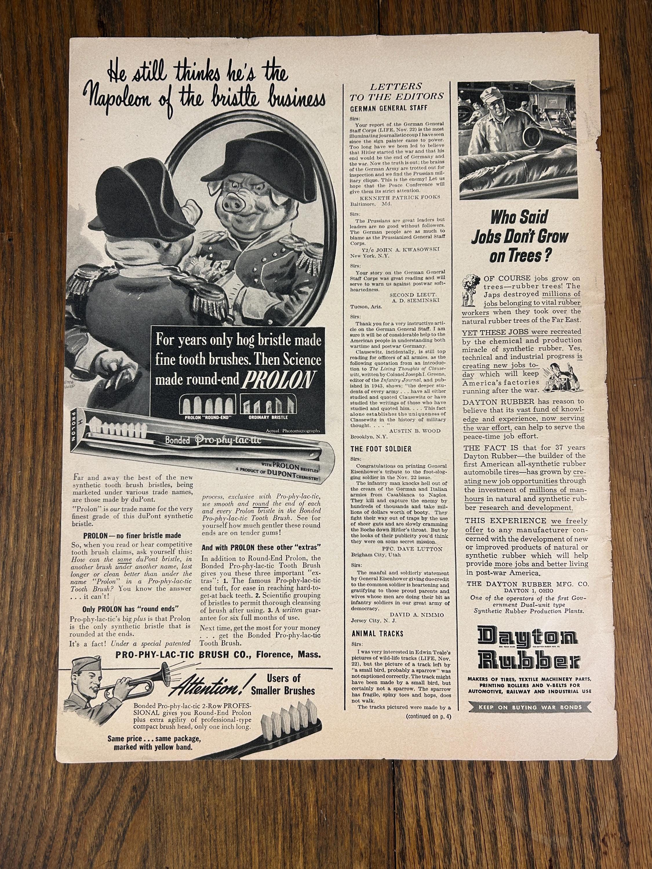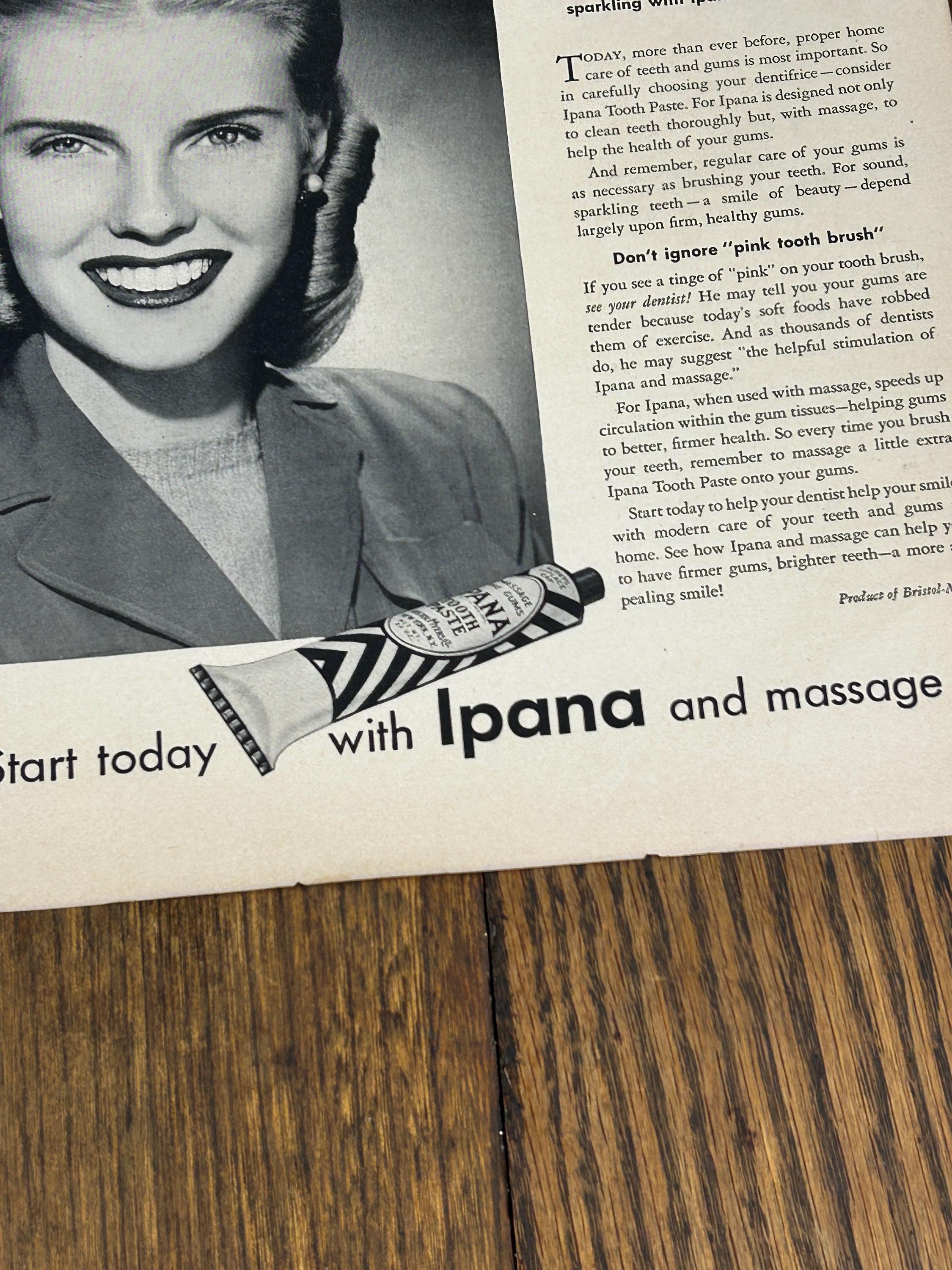 This is an original vintage magazine advertisement for Ipana Tooth Paste, published around 1943–1944 during World War II.