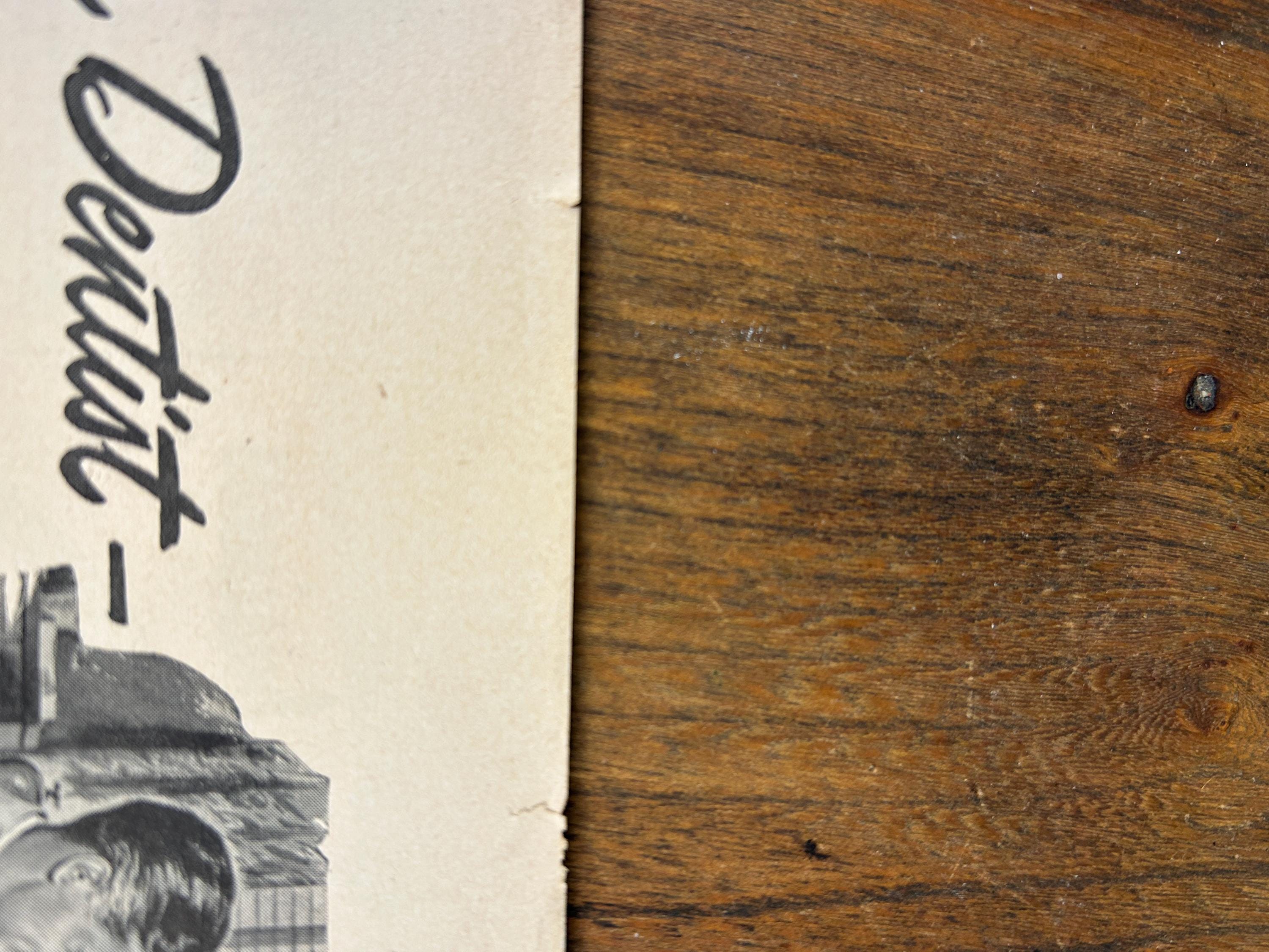 With its cheerful illustration and classic 1940s typography, this piece makes fantastic décor for a dental office, hygienist room, bathroom, or vintage advertising collection.