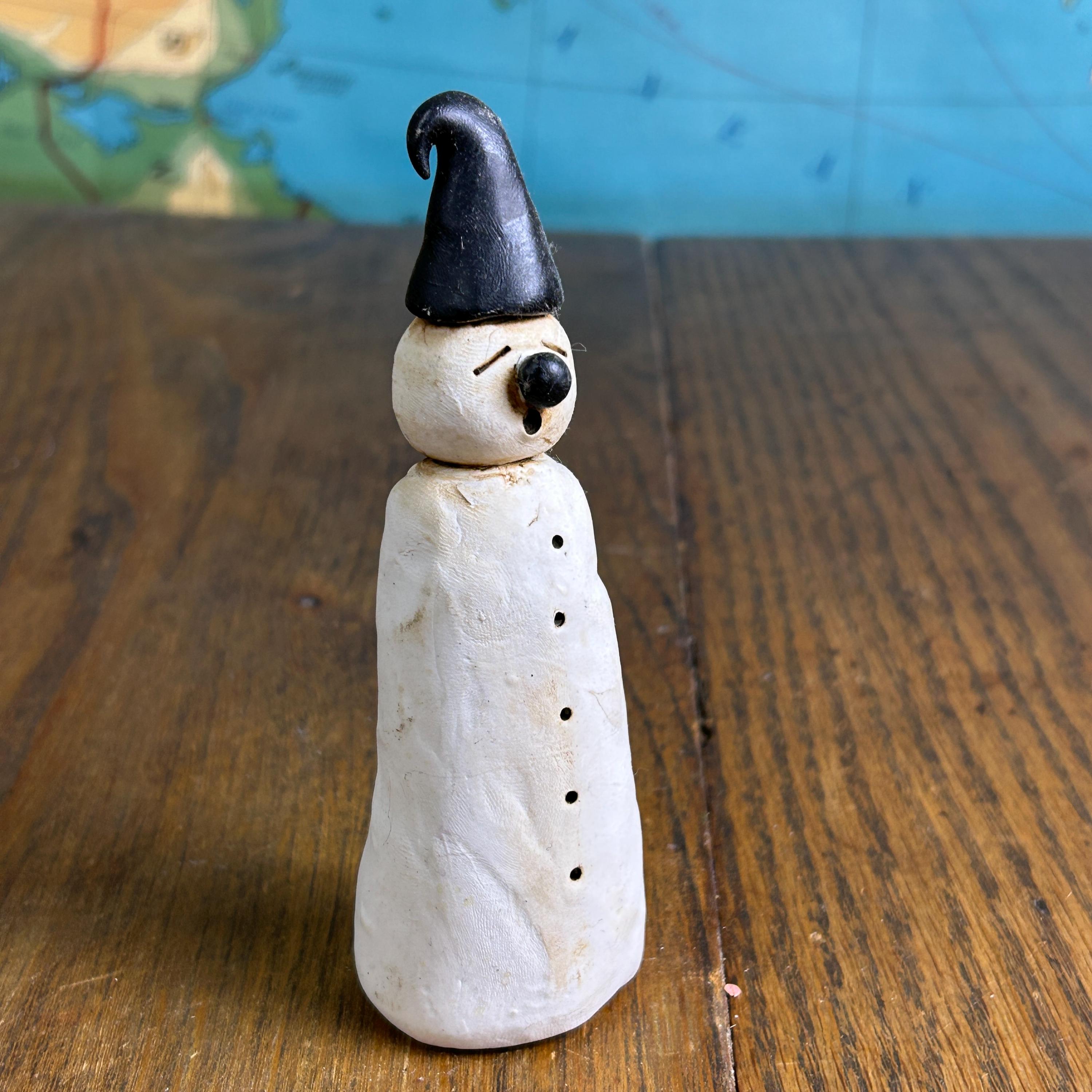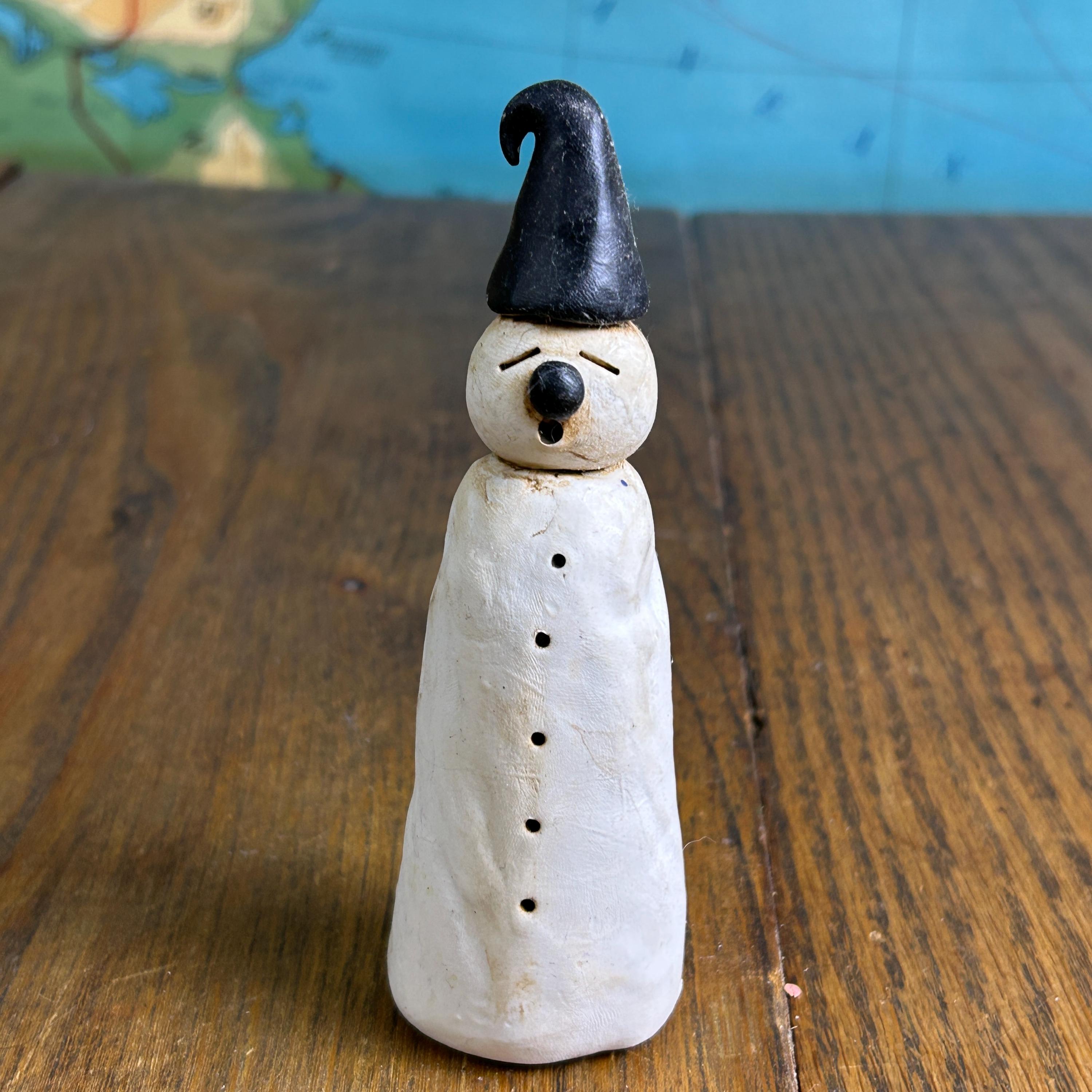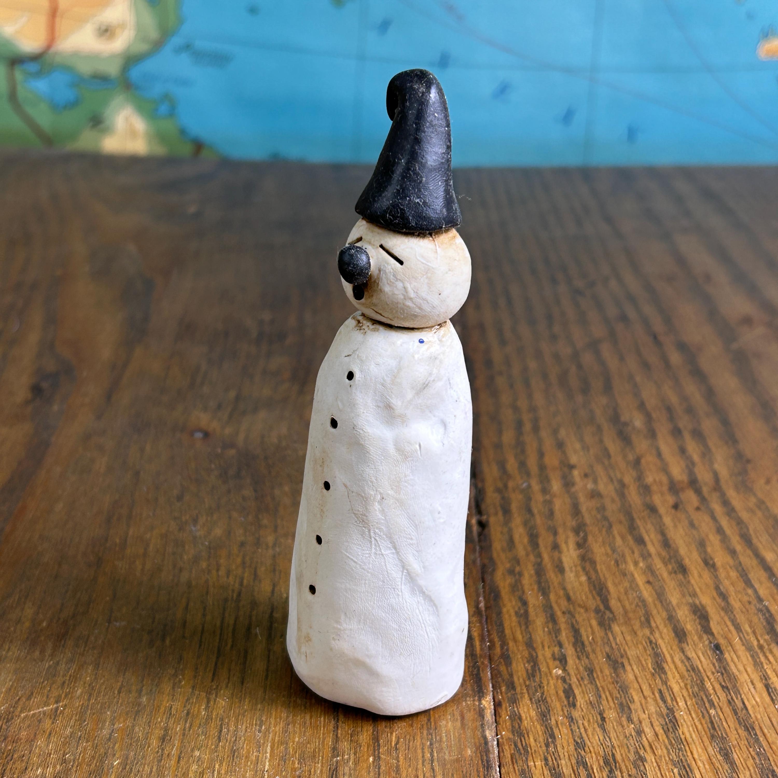 Made entirely by hand, this piece celebrates imperfection and creativity—perfect for anyone who loves whimsical, outsider, or folk art–style decor. The sculpted details and expressive character make it a standout display piece for winter, Christmas, or year-round collections.