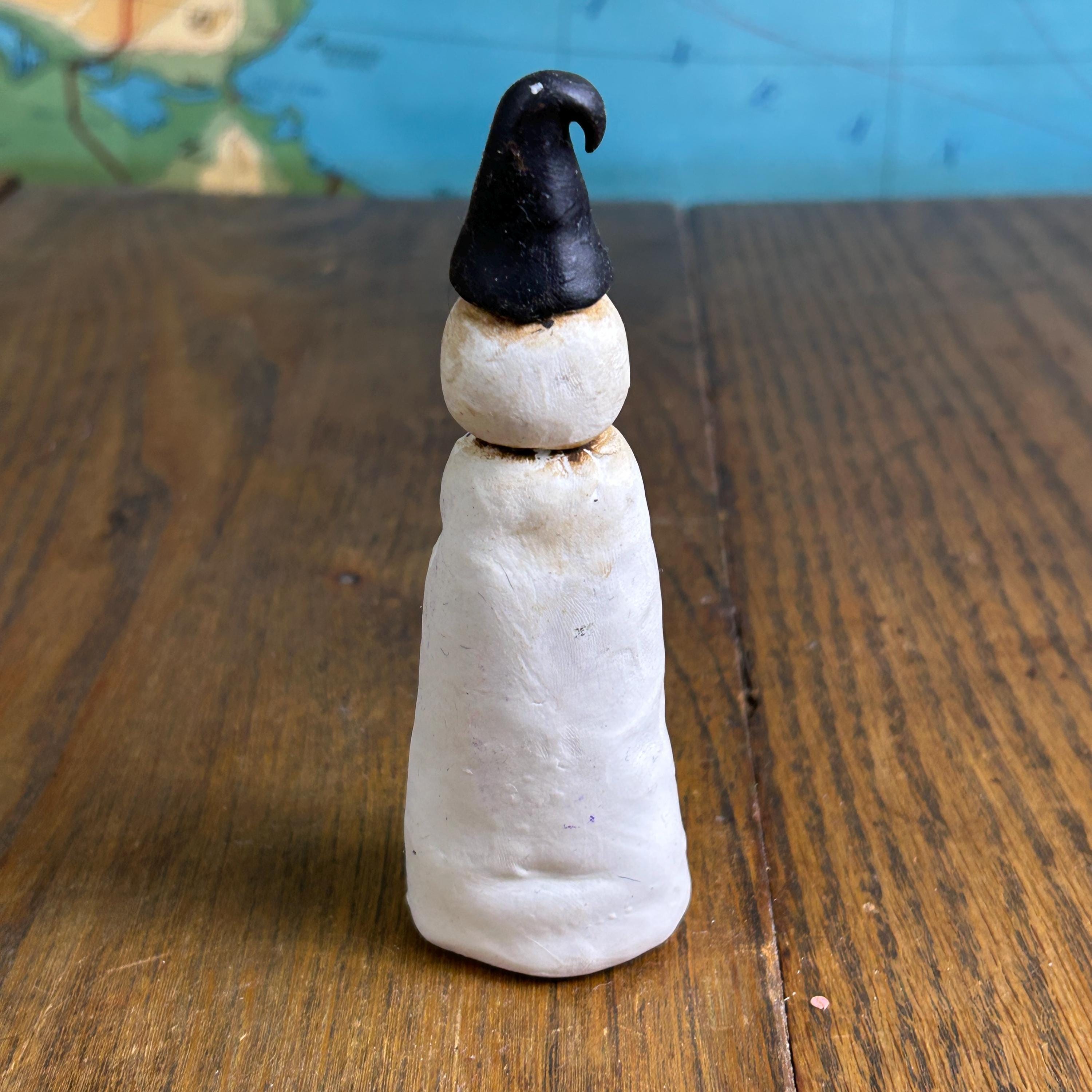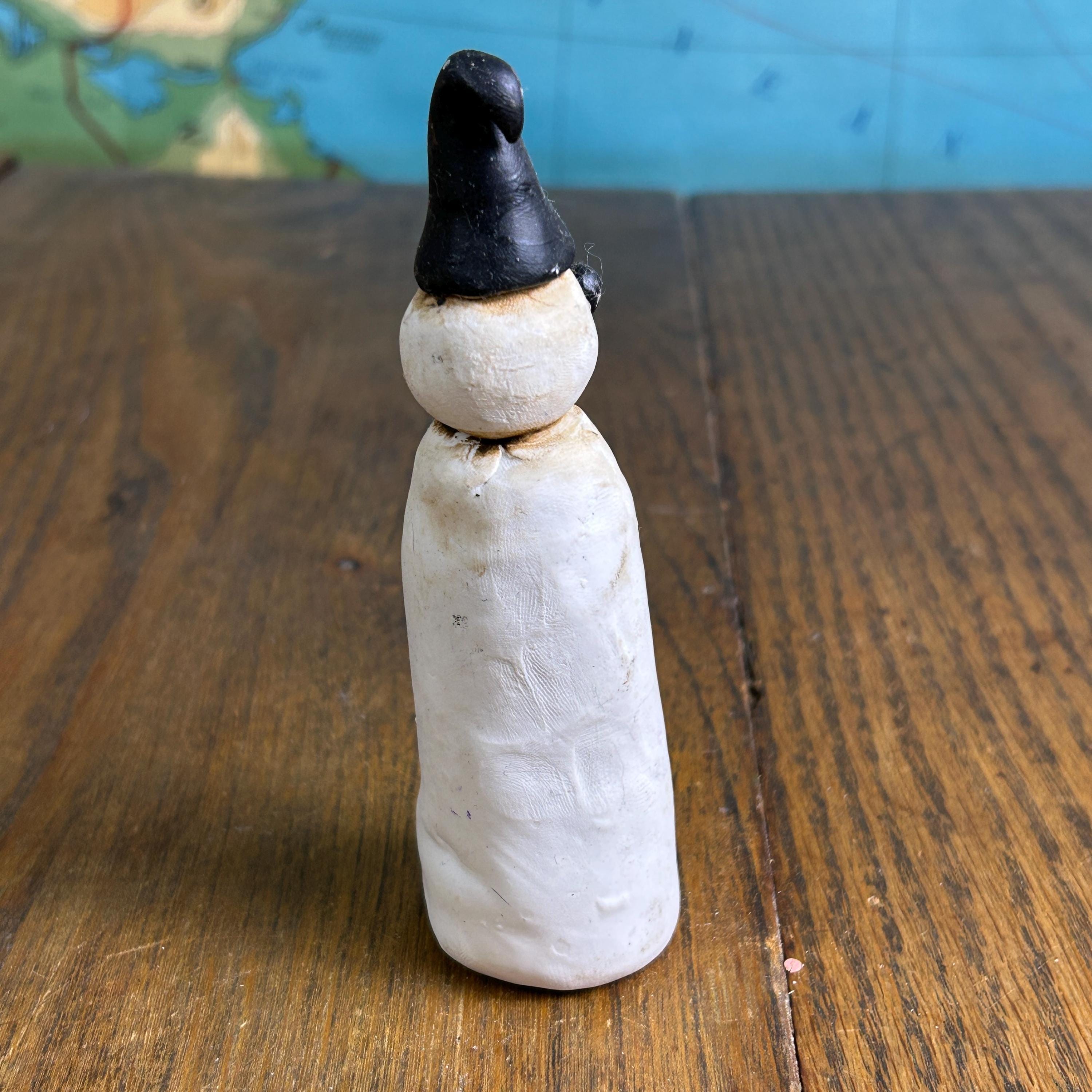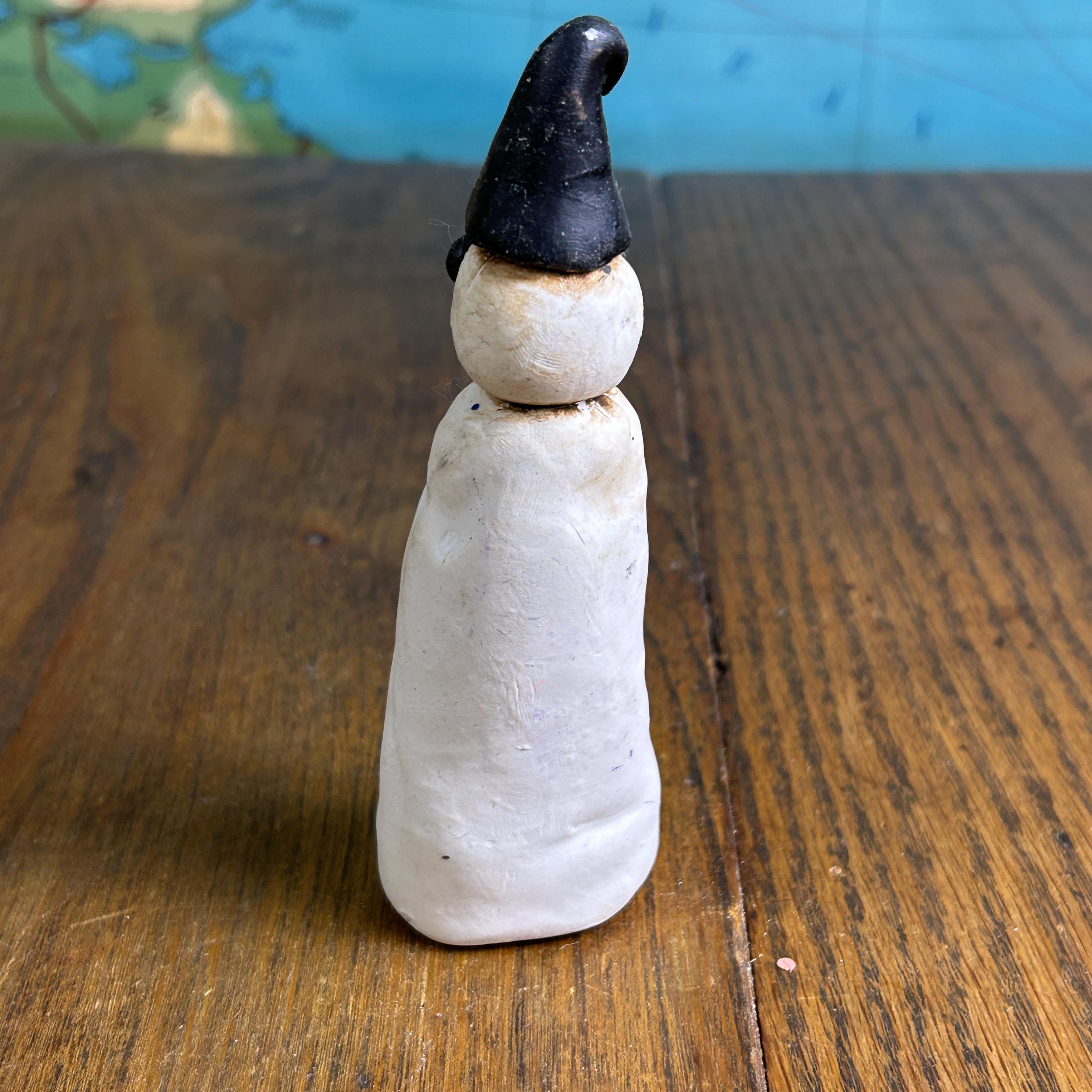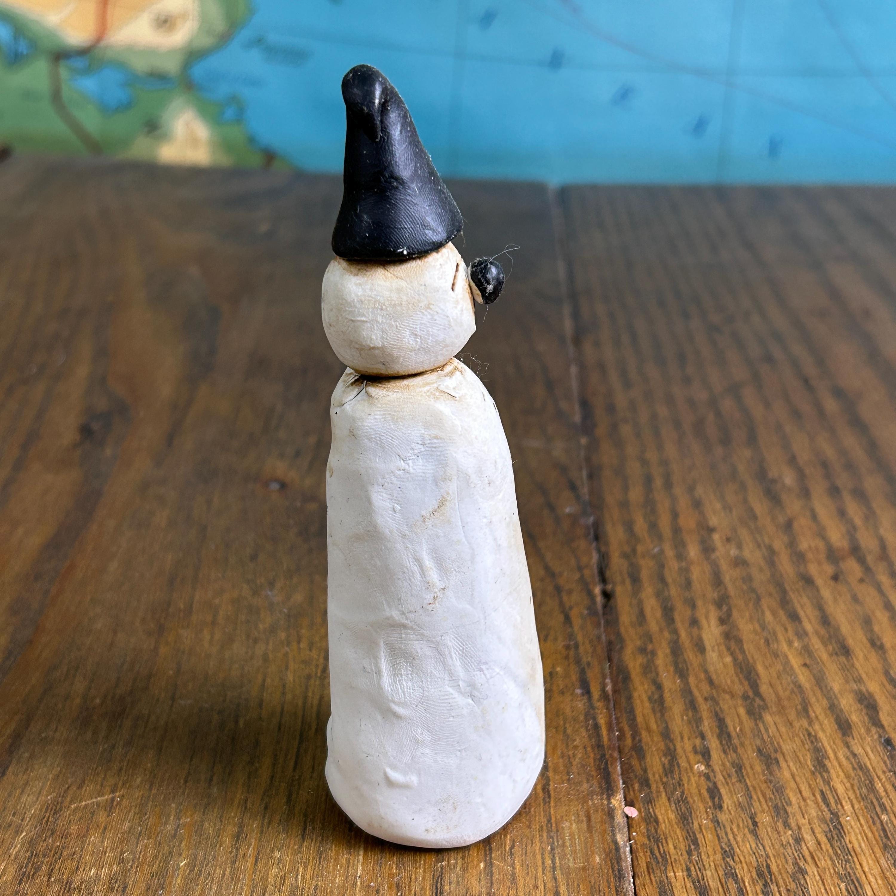 Made entirely by hand, this piece celebrates imperfection and creativity—perfect for anyone who loves whimsical, outsider, or folk art–style decor. The sculpted details and expressive character make it a standout display piece for winter, Christmas, or year-round collections.
