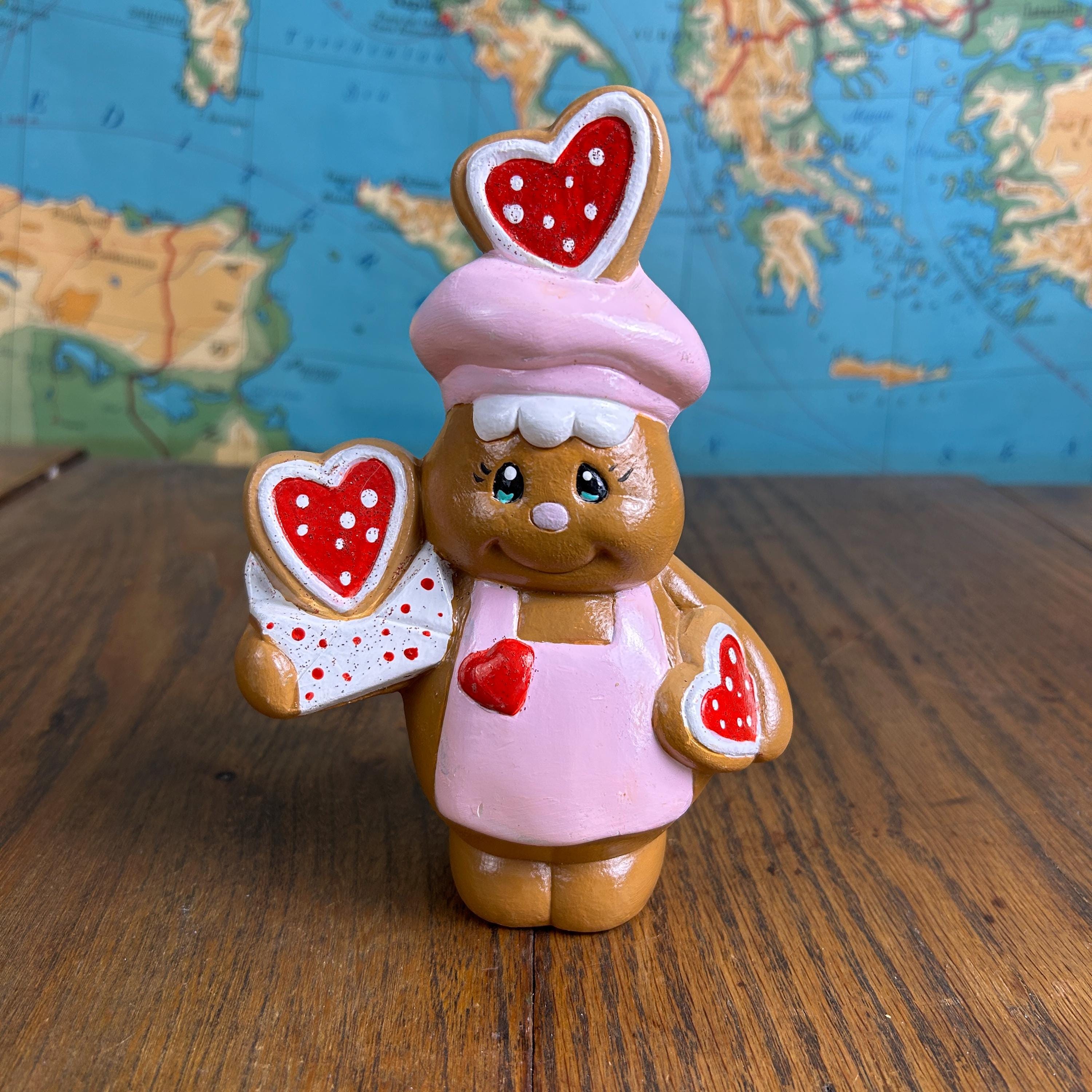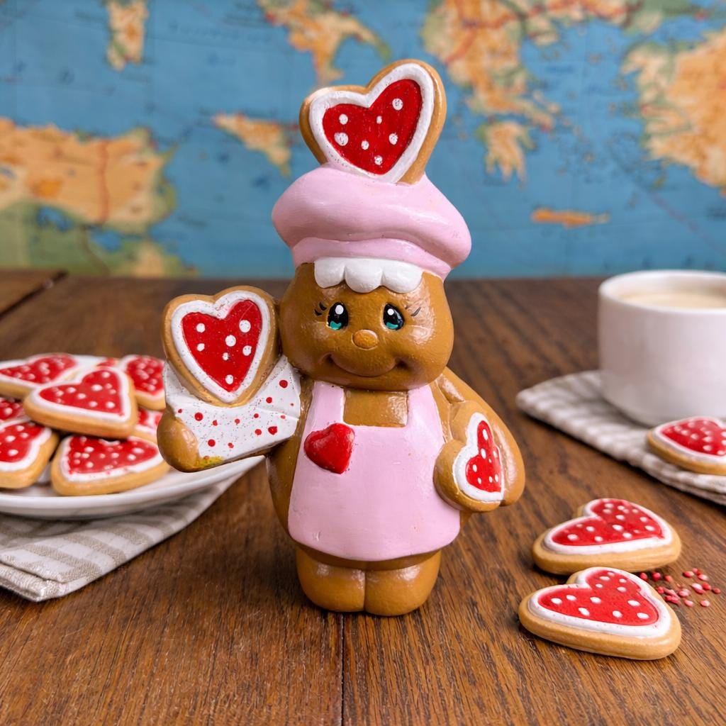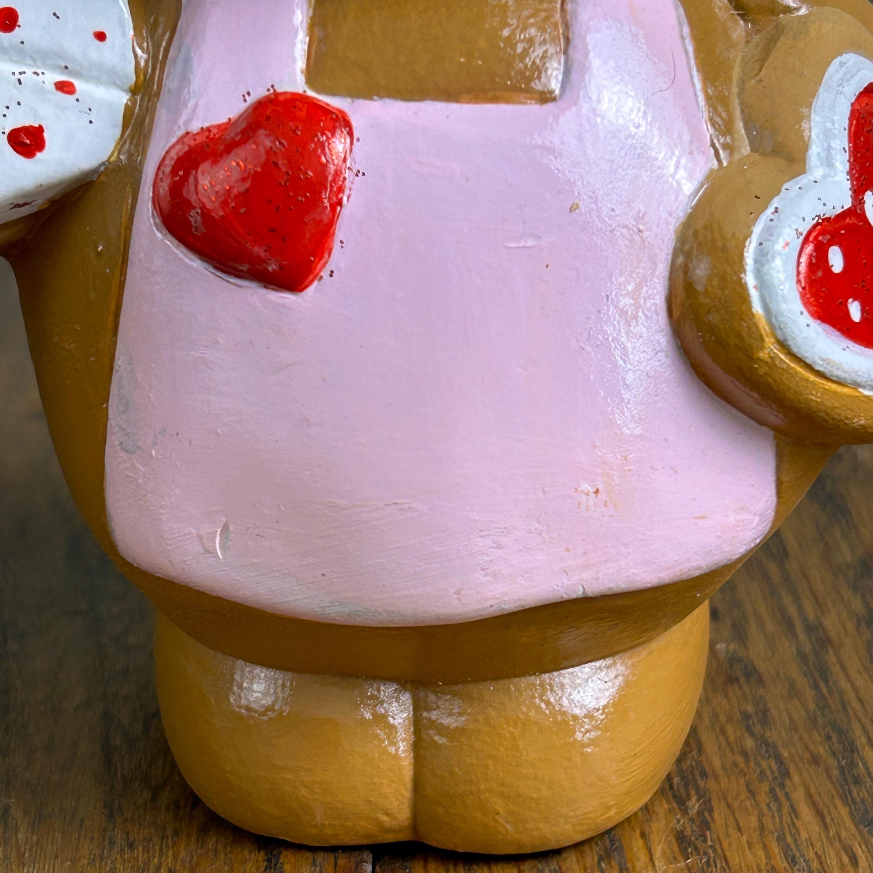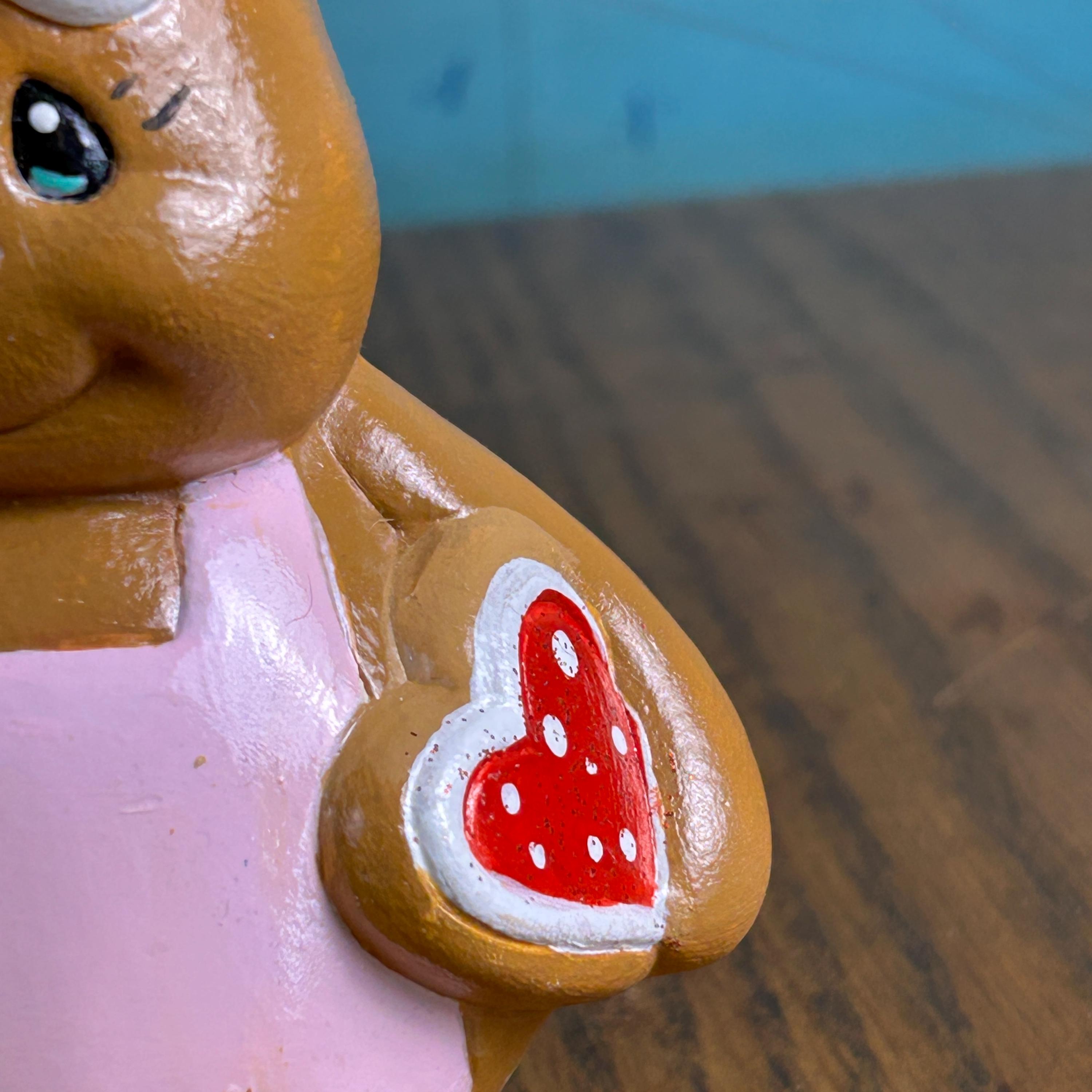 Carefully hand painted, this figure has that cozy, nostalgic look collectors love. It’s ideal for displaying on a shelf, tiered tray, kitchen counter, or mixed into your Valentine vignette with cookies and pink accents.