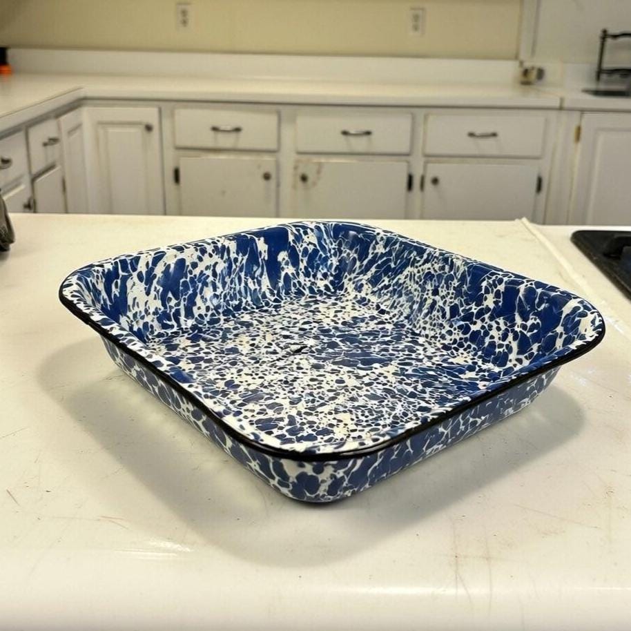 With its iconic blue-and-white splatter pattern, this pan also makes a beautiful decorative accent in a farmhouse or cottage-style kitchen. A great find for anyone who collects vintage enamelware or appreciates functional pieces with old-fashioned charm.