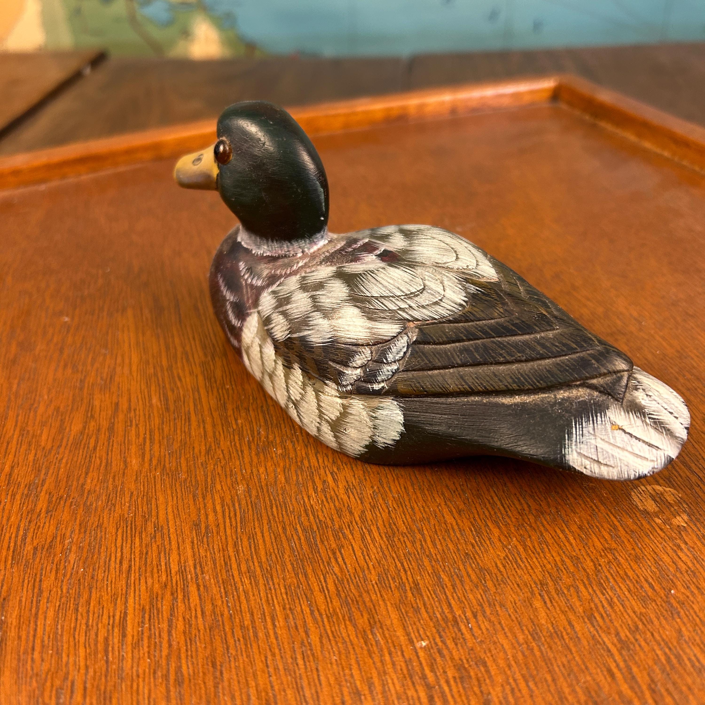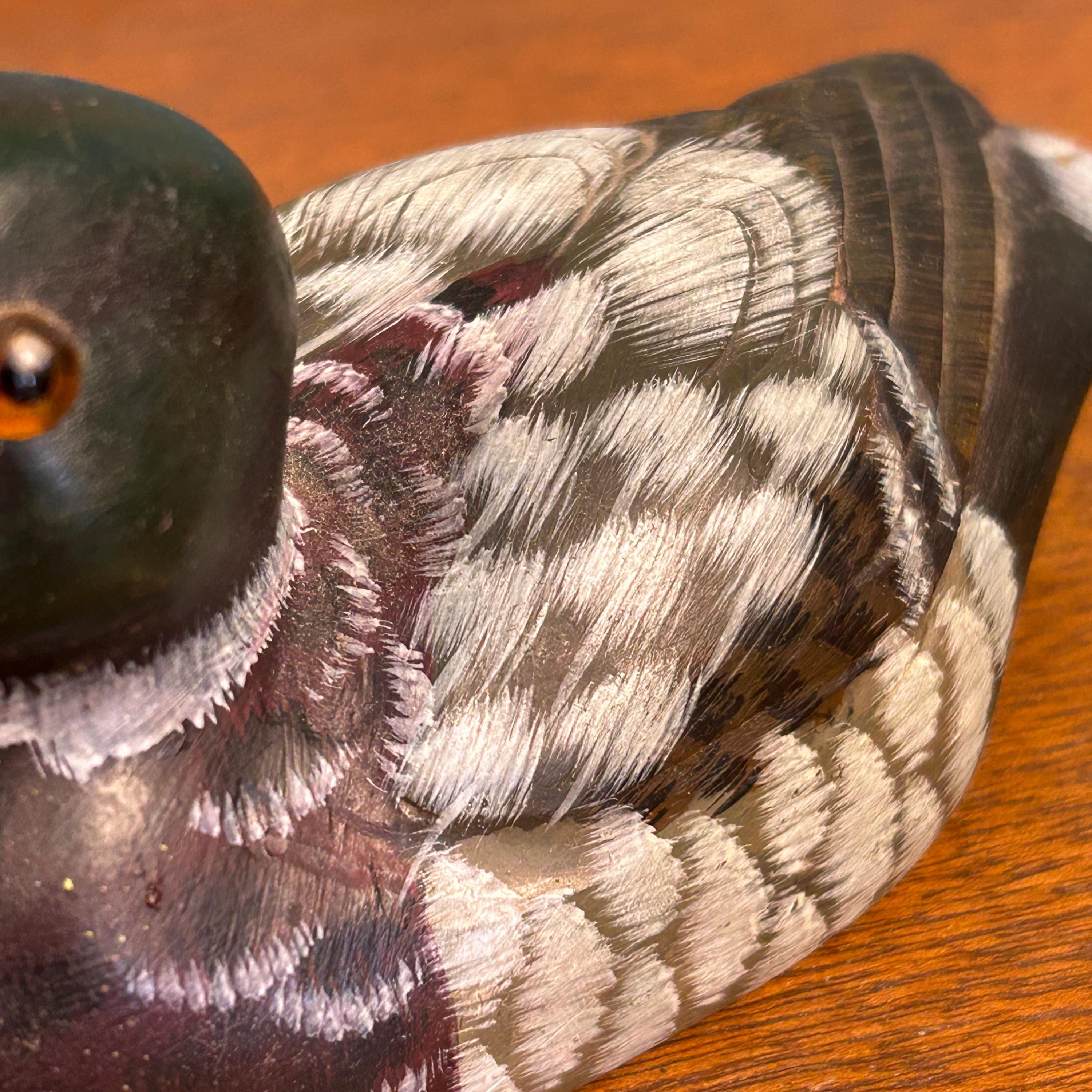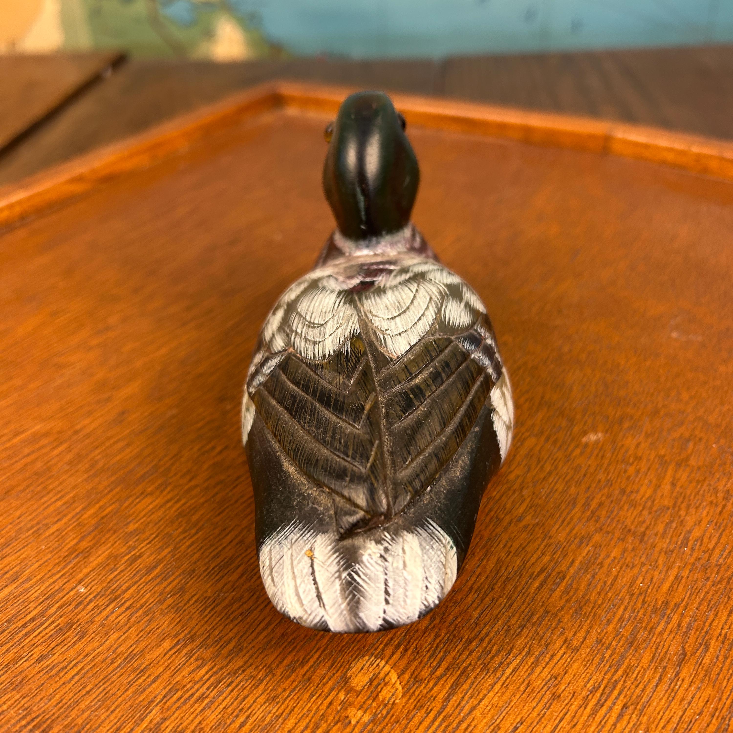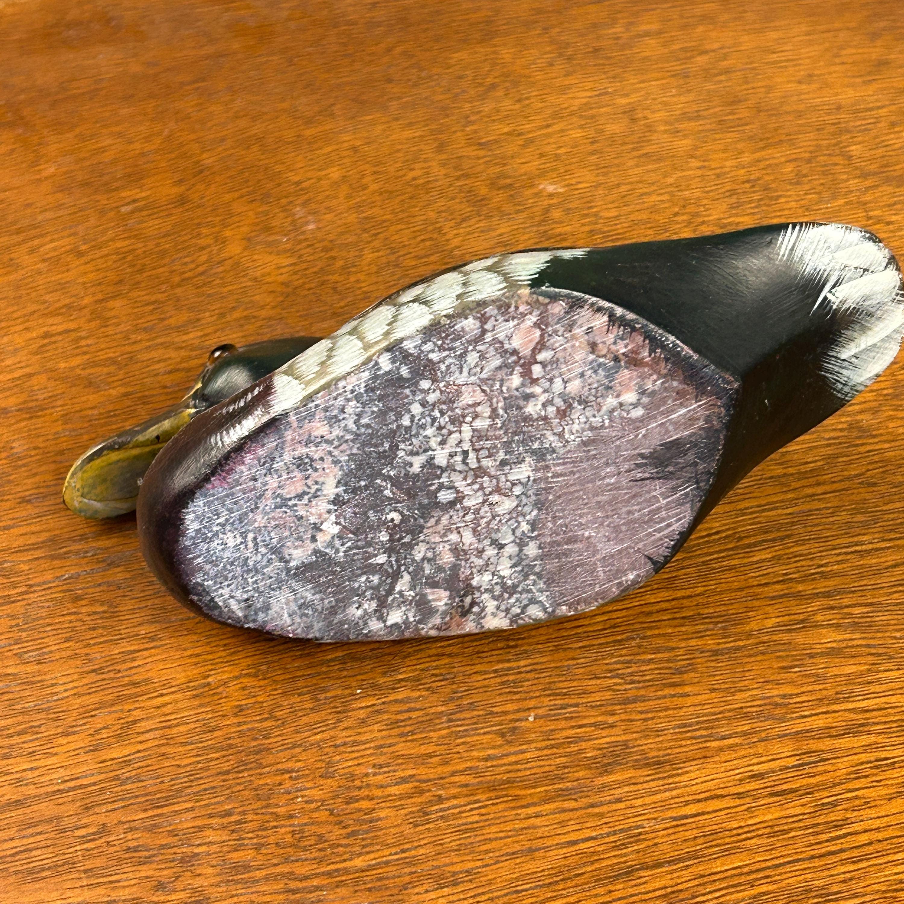 This is a hand-painted, hand-carved stone duck figurine, a charming example of traditional stone carving and folk art craftsmanship. Carefully shaped from solid soapstone, the duck features smooth contours and painted details that give it warmth and personality.