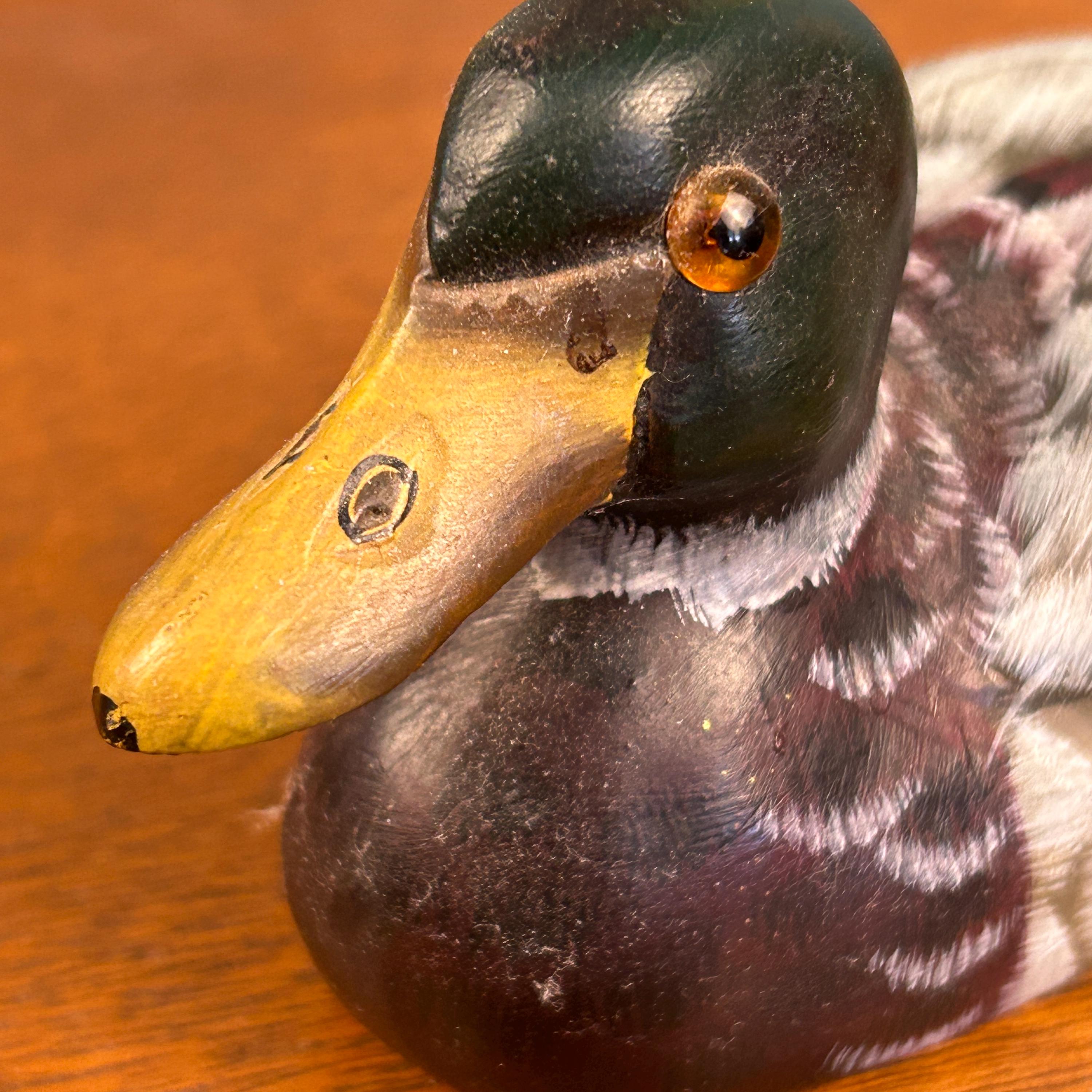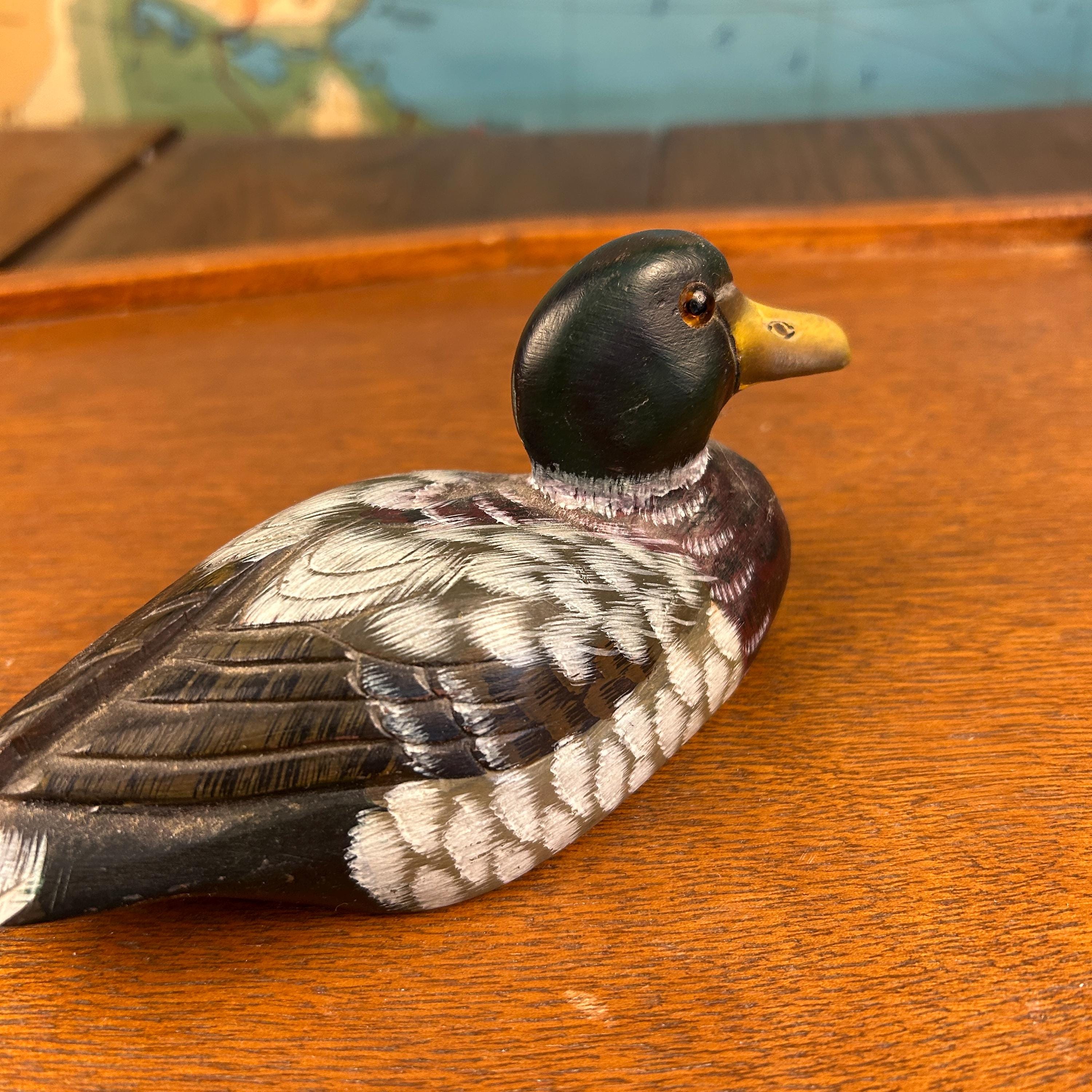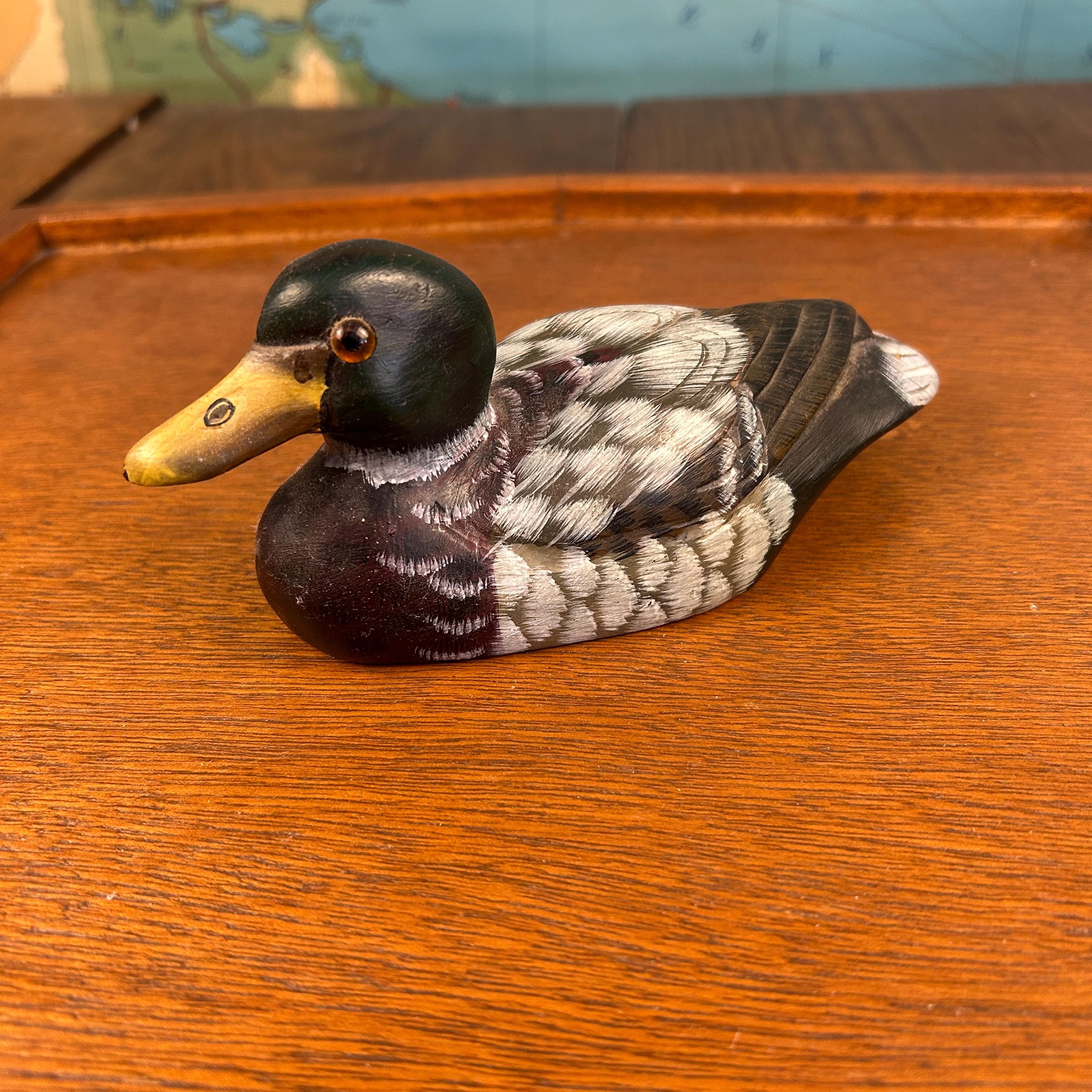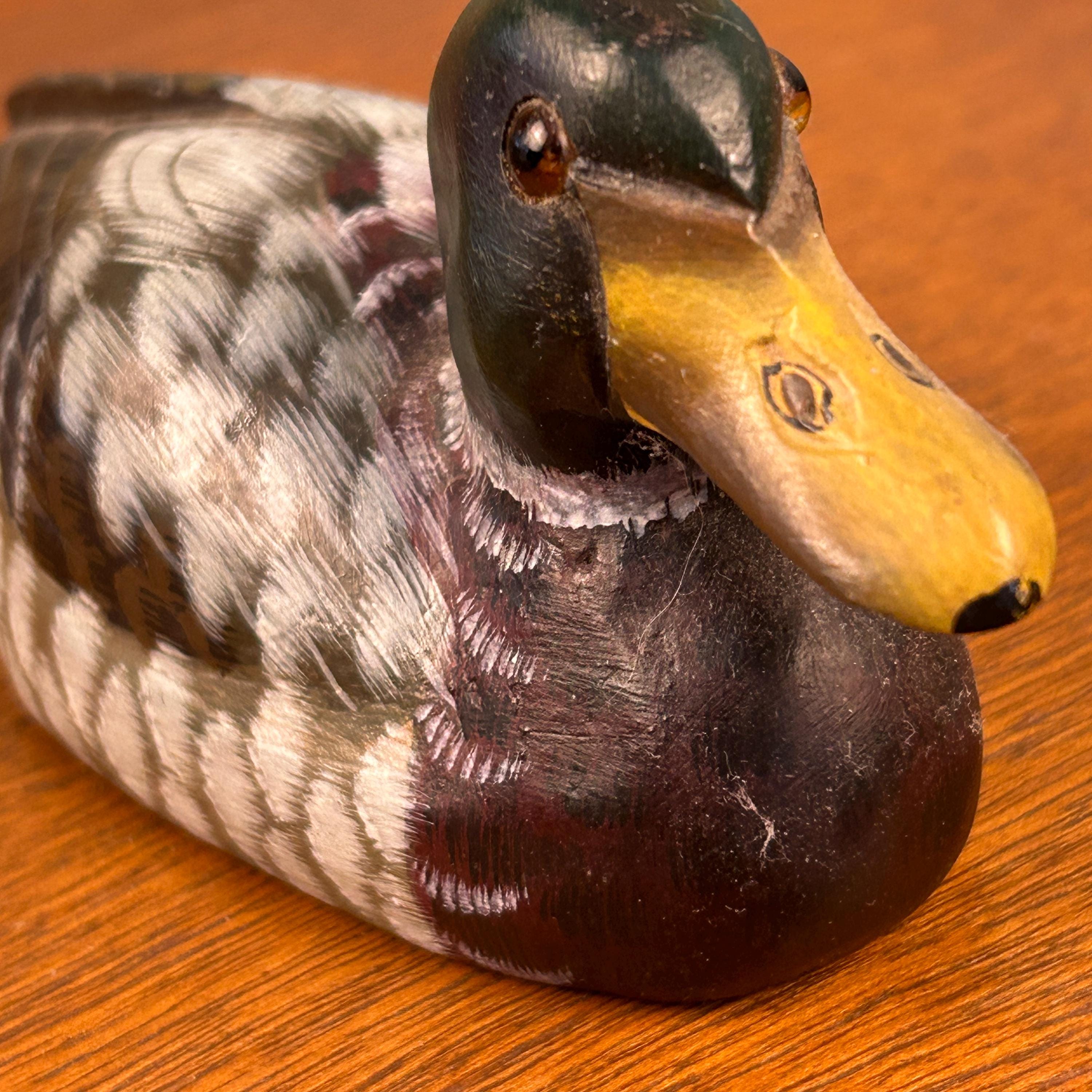 This is a hand-painted, hand-carved stone duck figurine, a charming example of traditional stone carving and folk art craftsmanship. Carefully shaped from solid soapstone, the duck features smooth contours and painted details that give it warmth and personality.