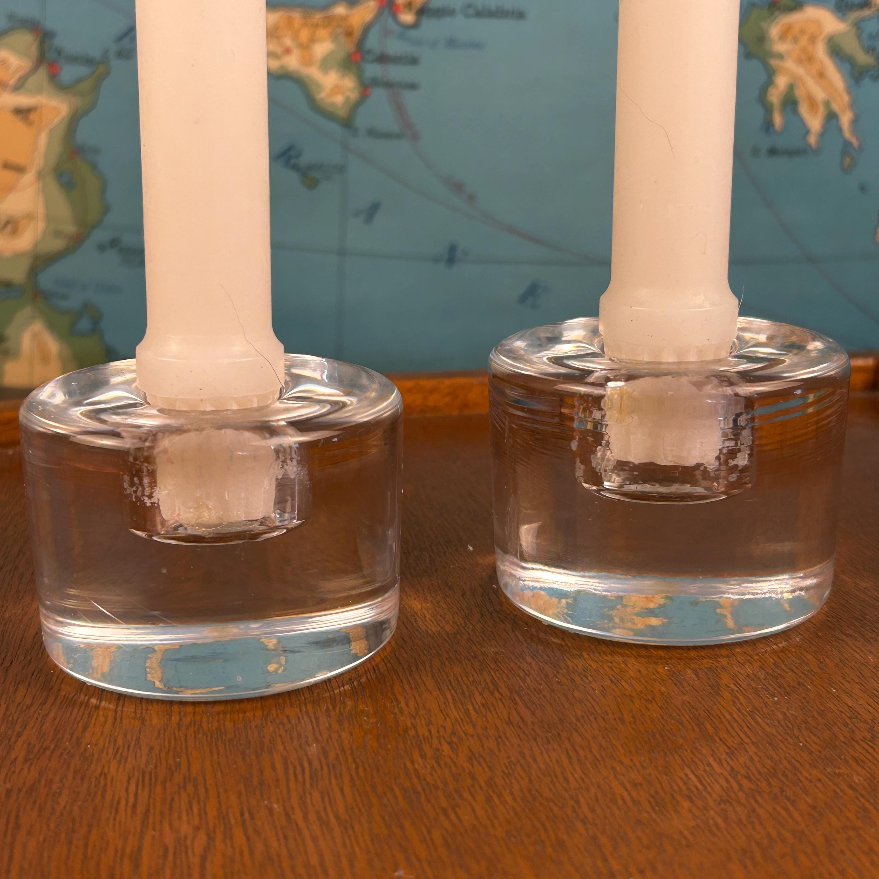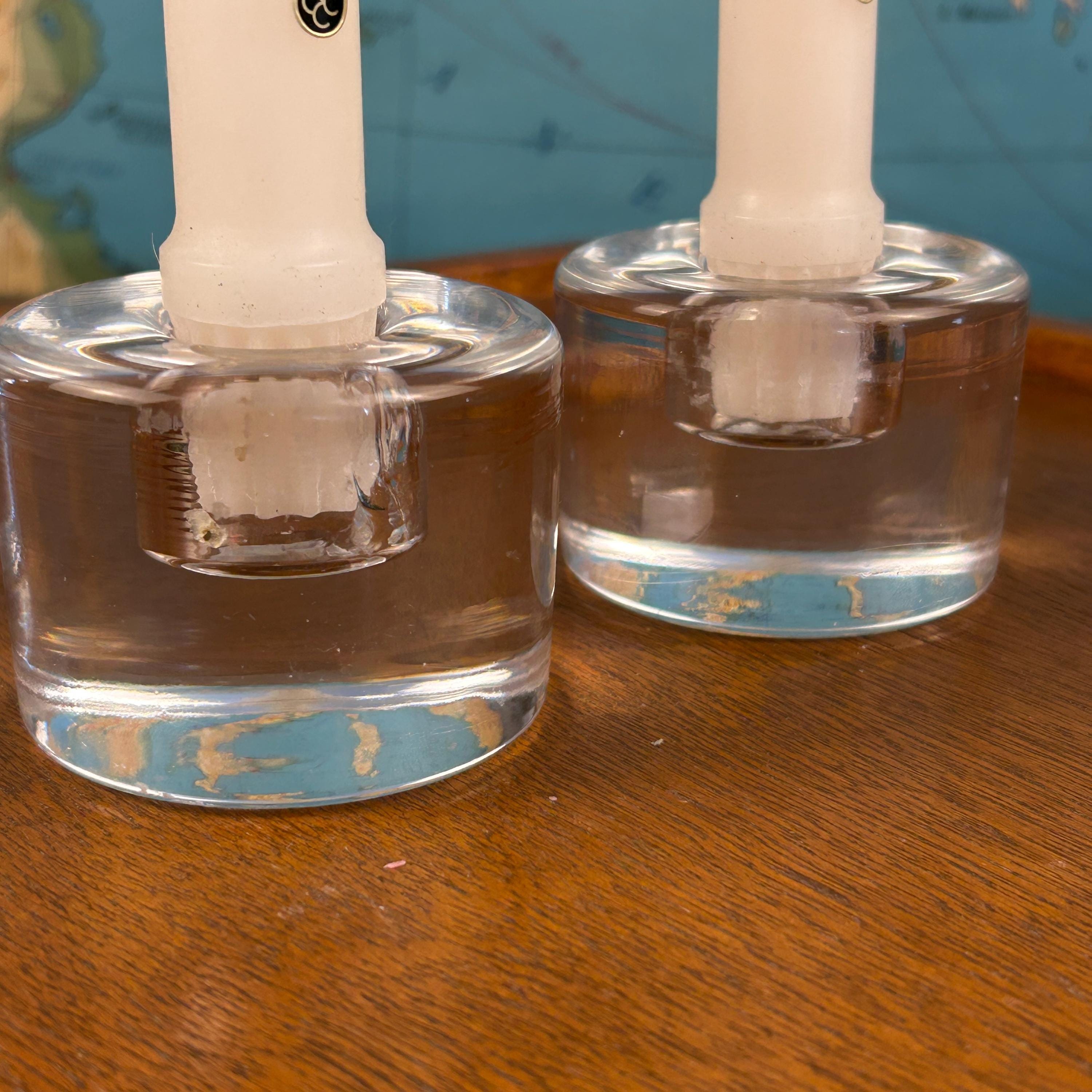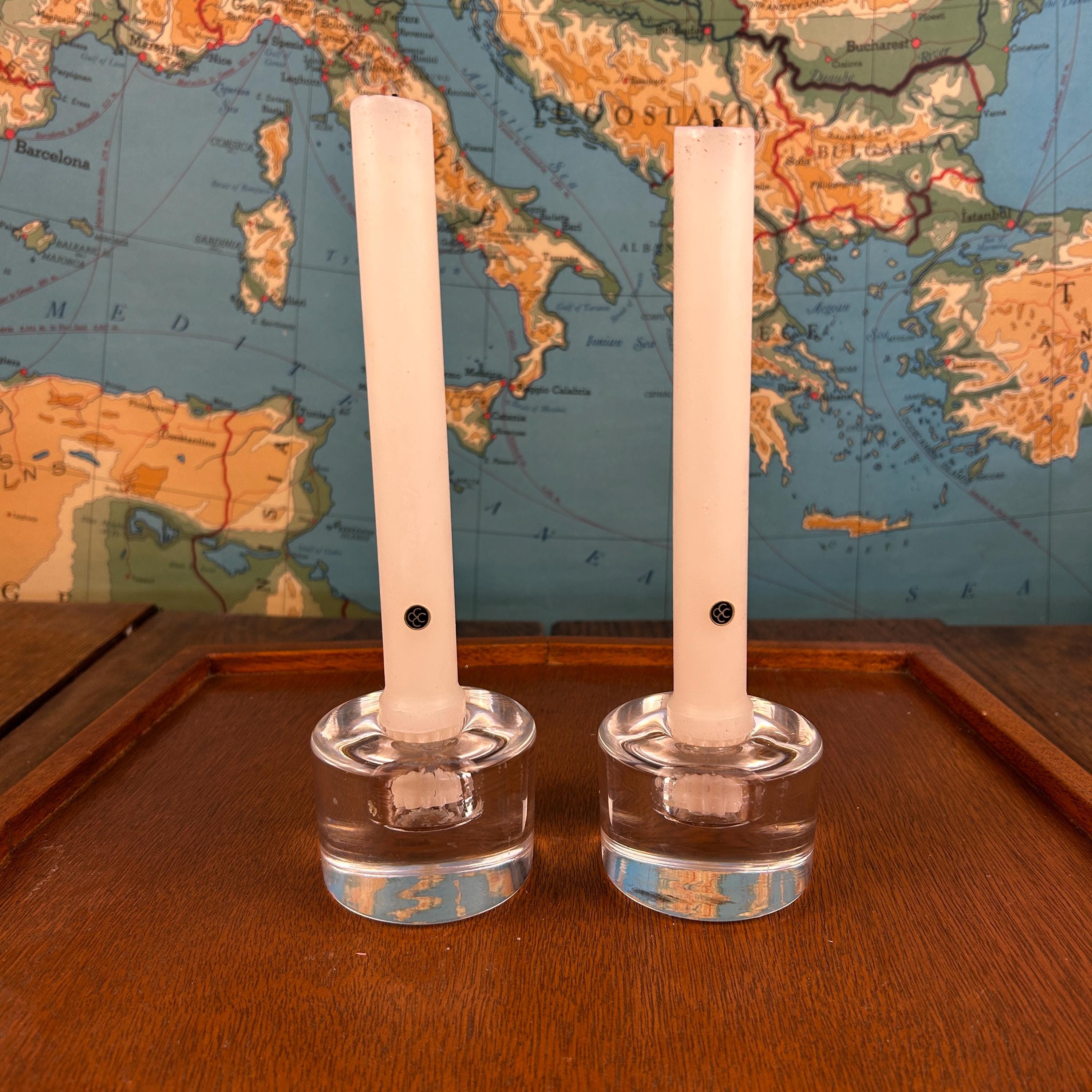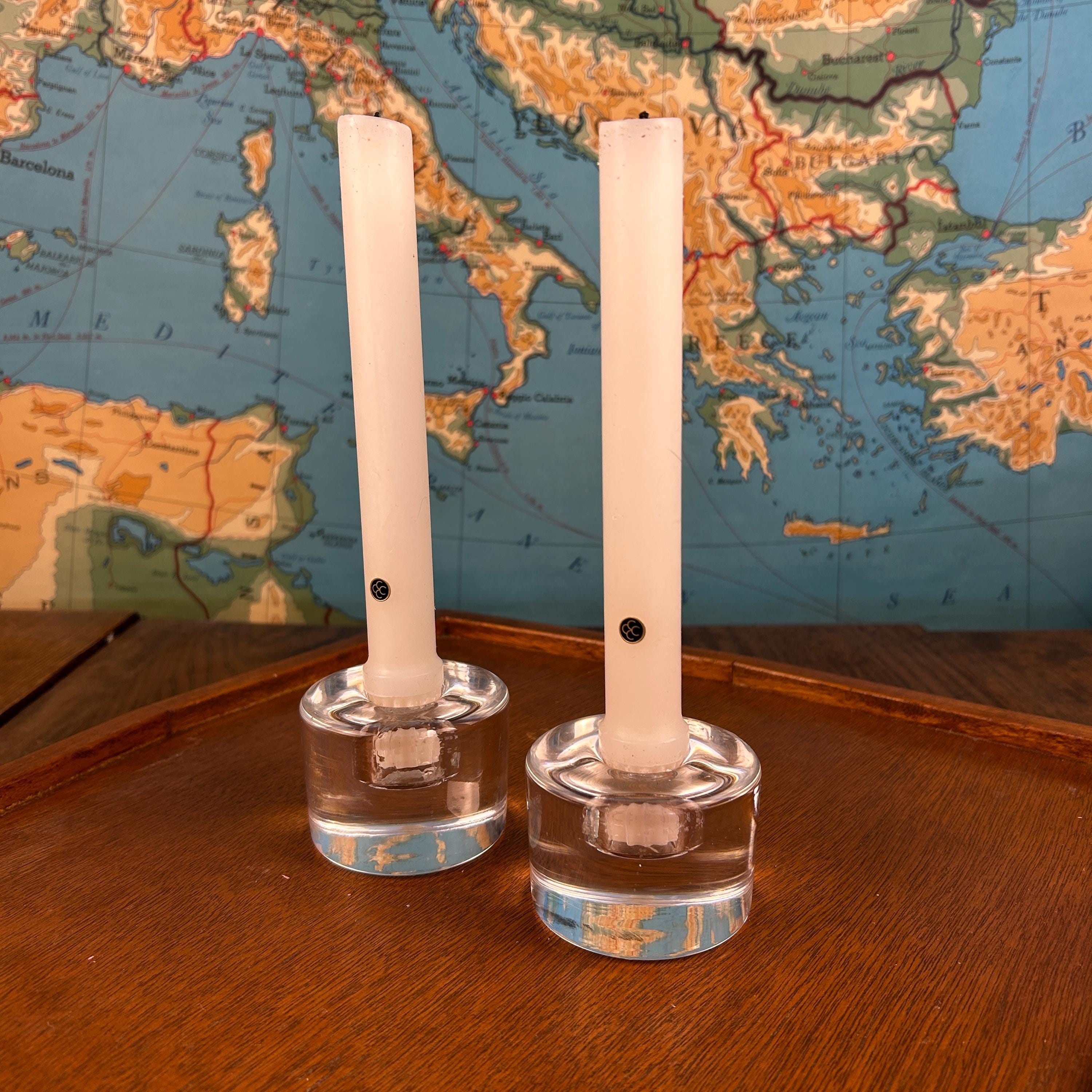 These are vintage Orrefors clear crystal cylinder candle holders, beautifully crafted in Sweden and signed Orrefors, confirming their authenticity. Known worldwide for exceptional quality and timeless Scandinavian design, Orrefors crystal pieces are prized for their clarity, weight, and minimalist elegance.