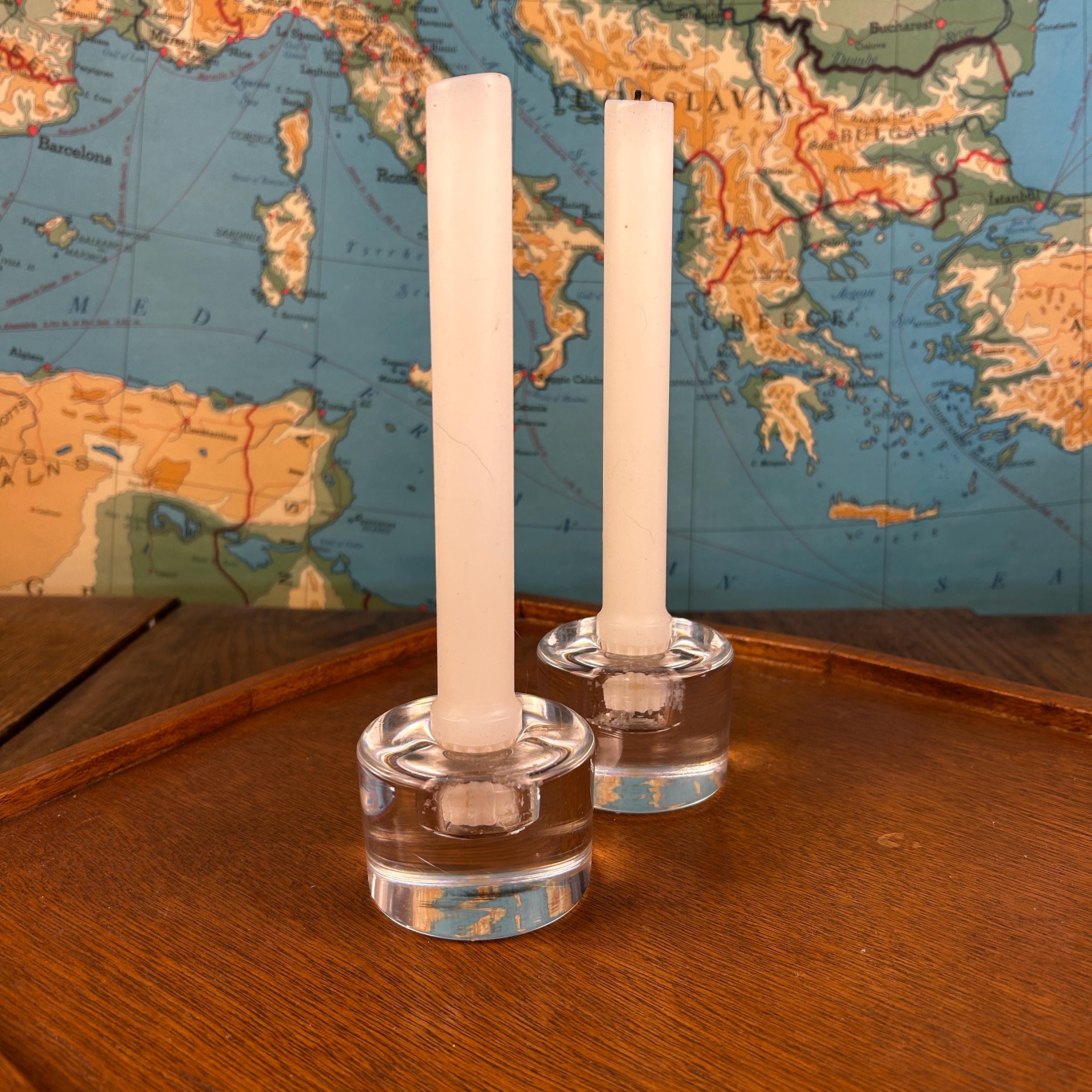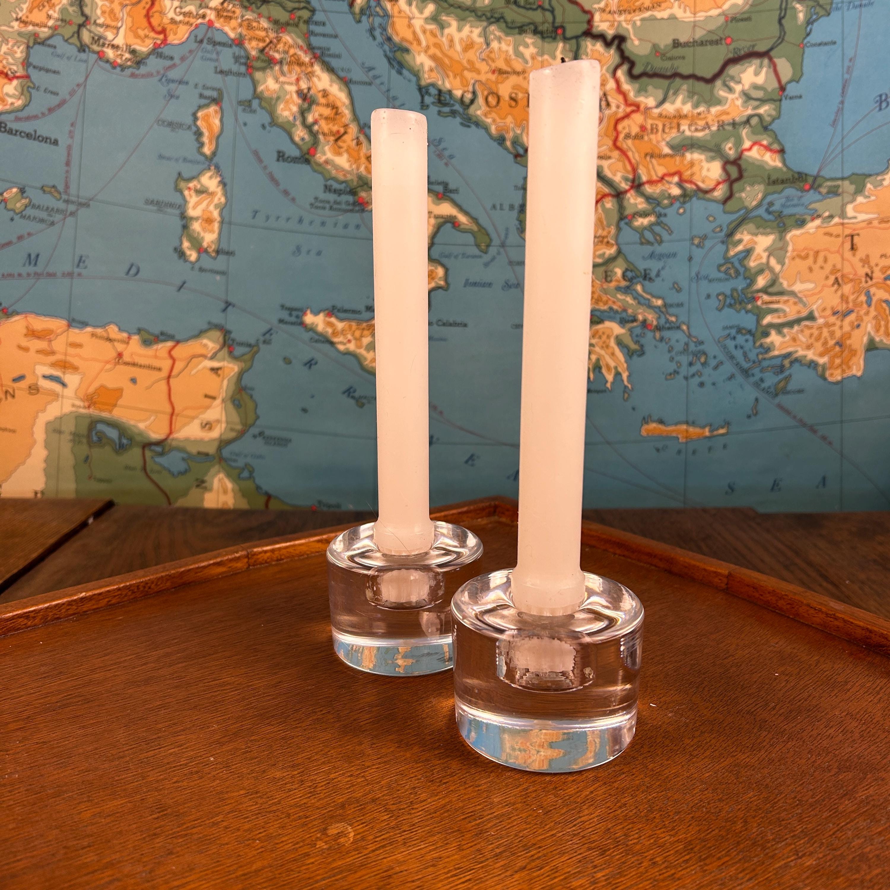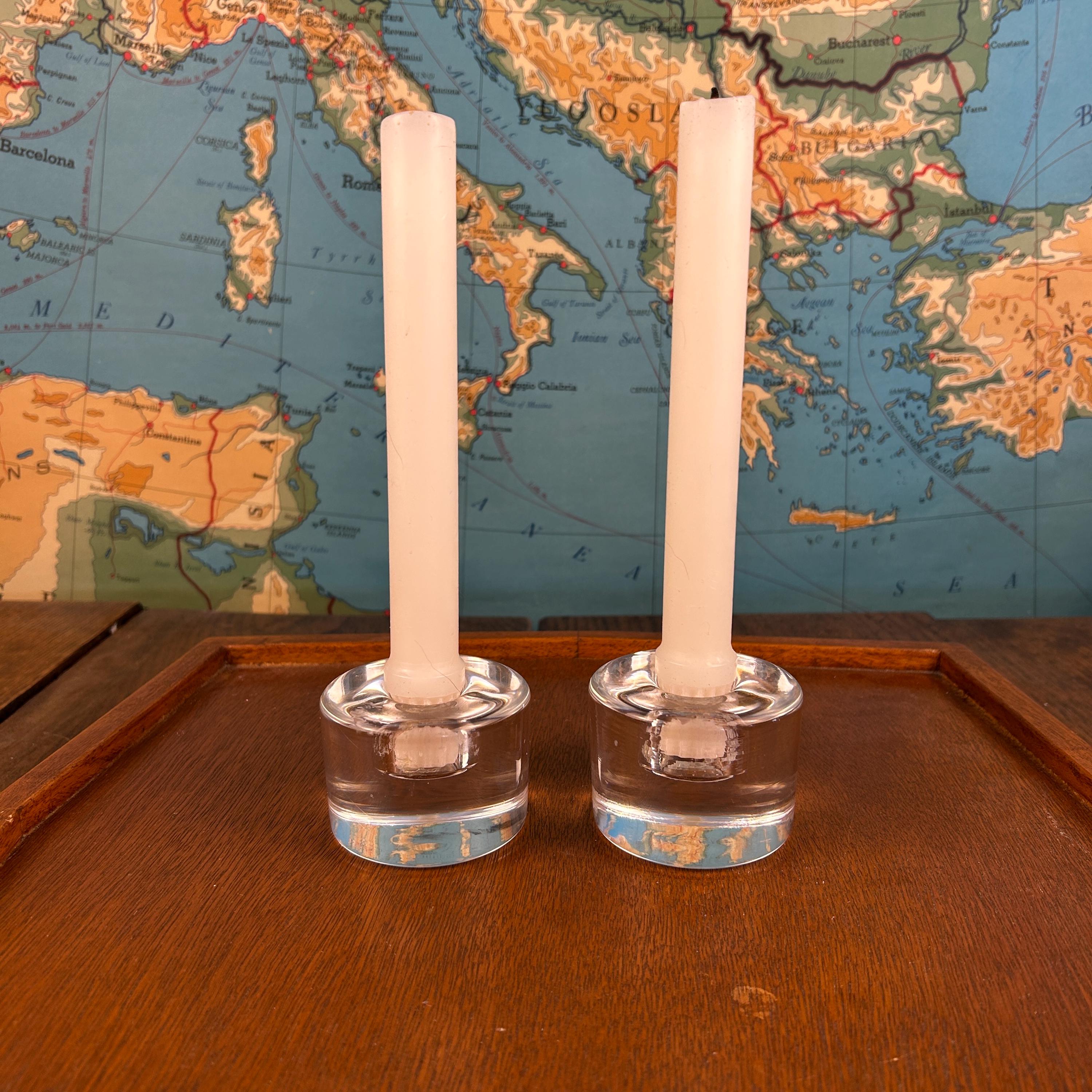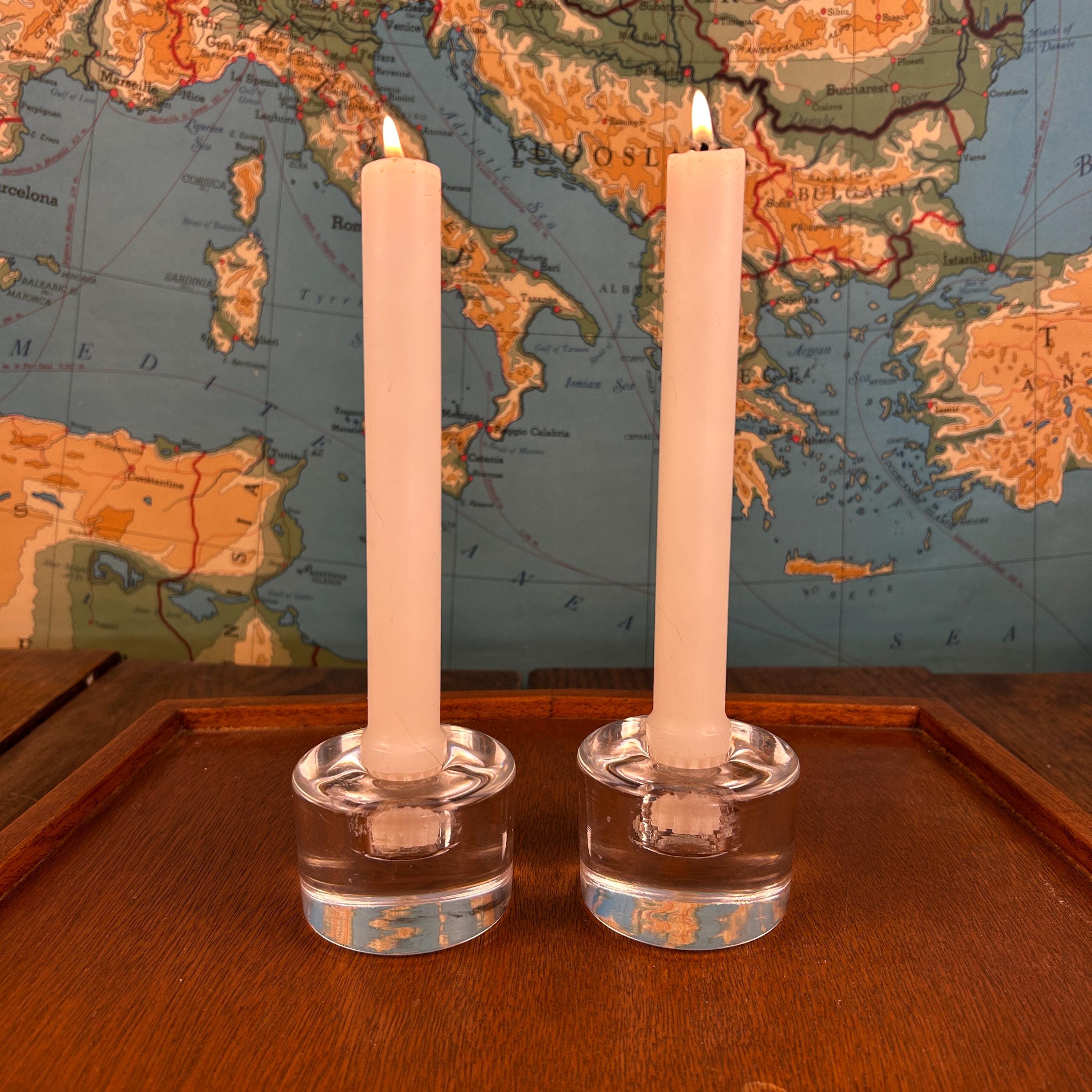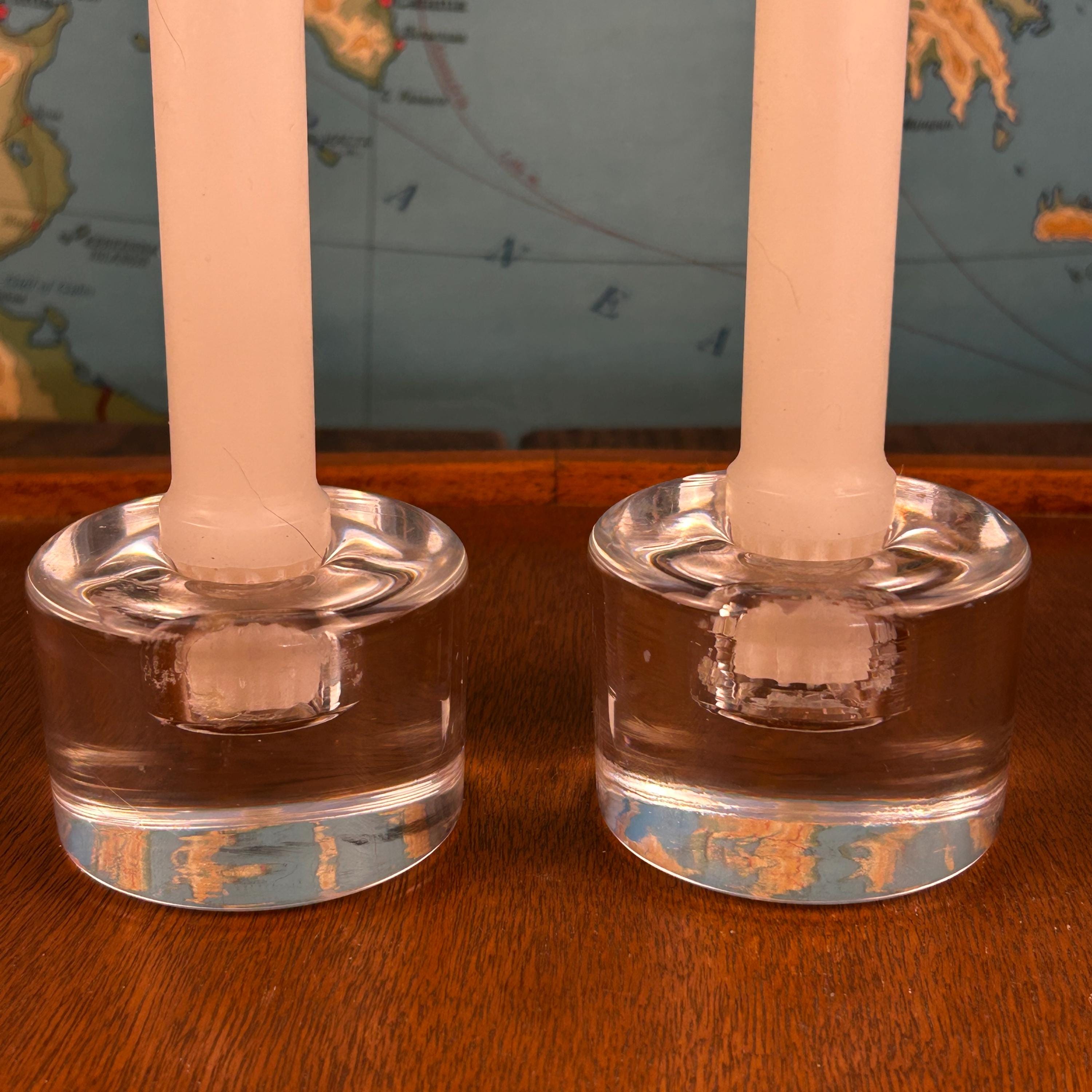 These are vintage Orrefors clear crystal cylinder candle holders, beautifully crafted in Sweden and signed Orrefors, confirming their authenticity. Known worldwide for exceptional quality and timeless Scandinavian design, Orrefors crystal pieces are prized for their clarity, weight, and minimalist elegance.