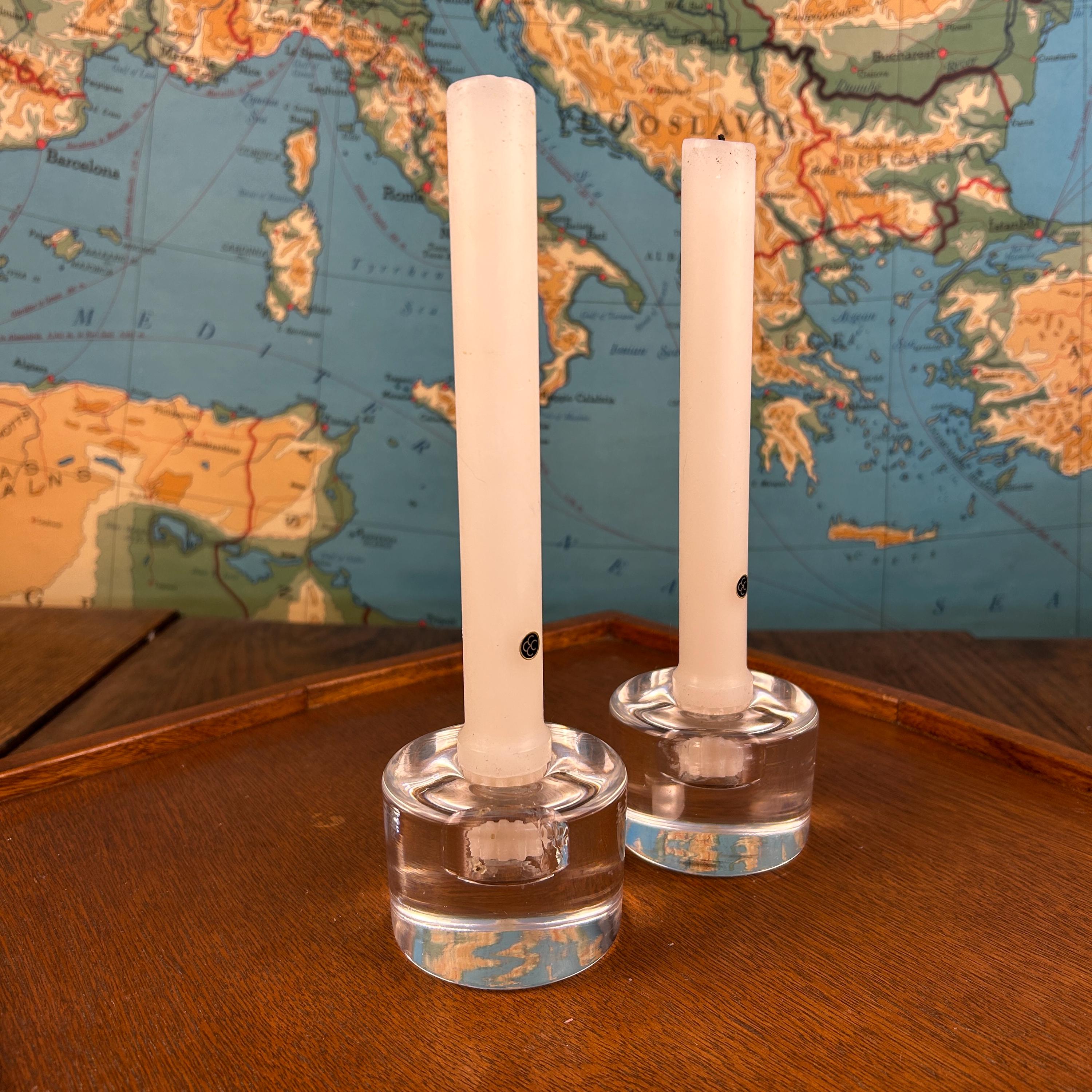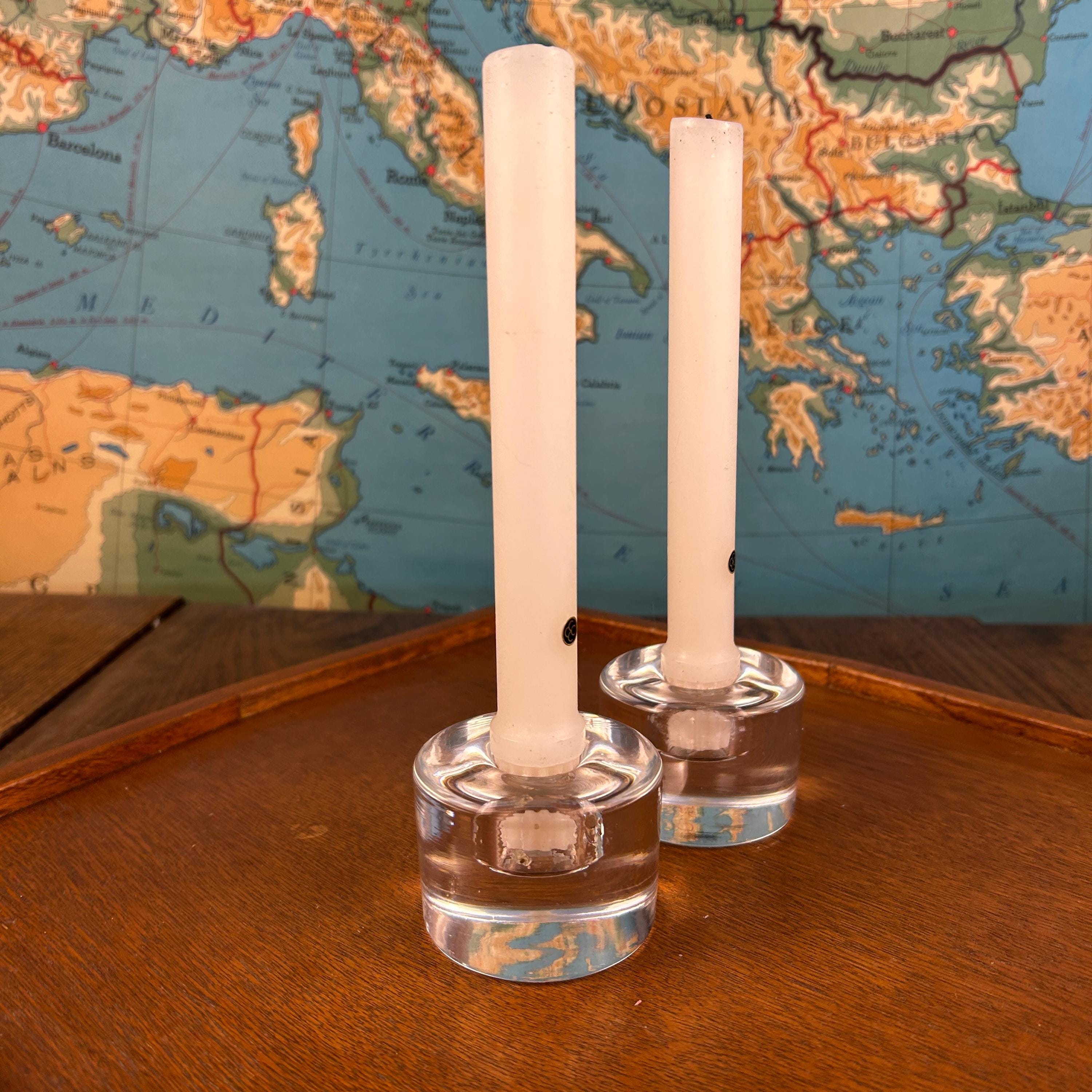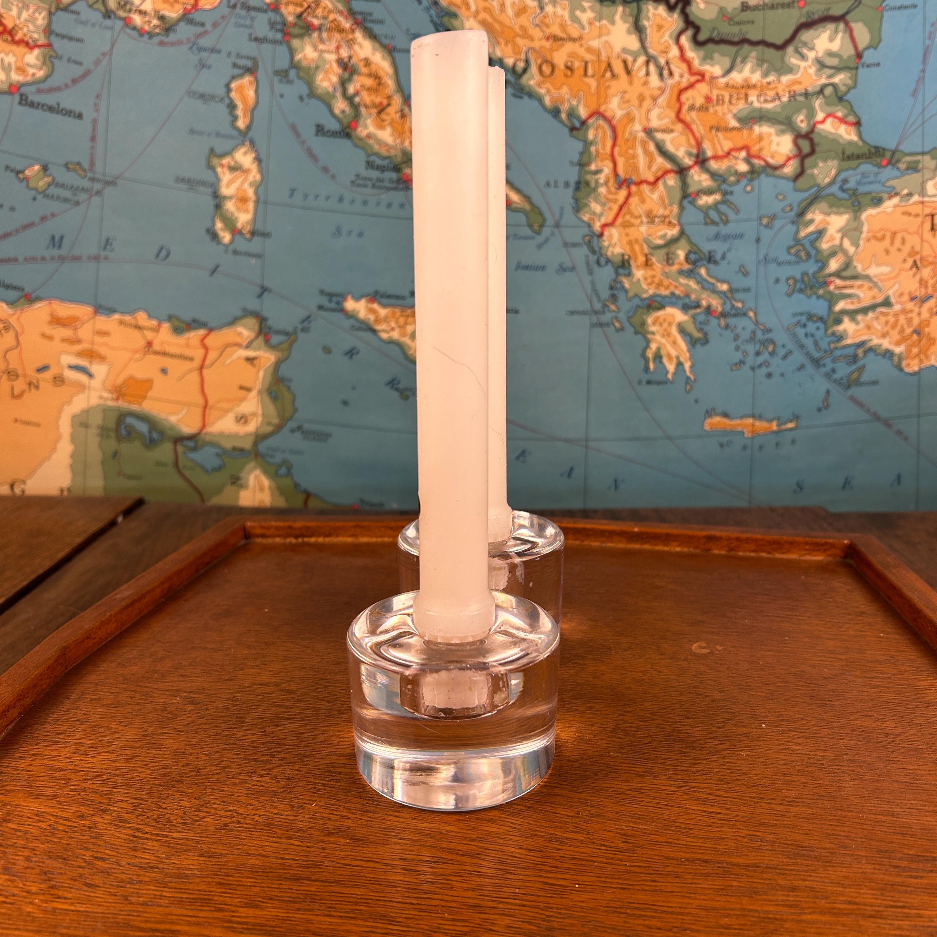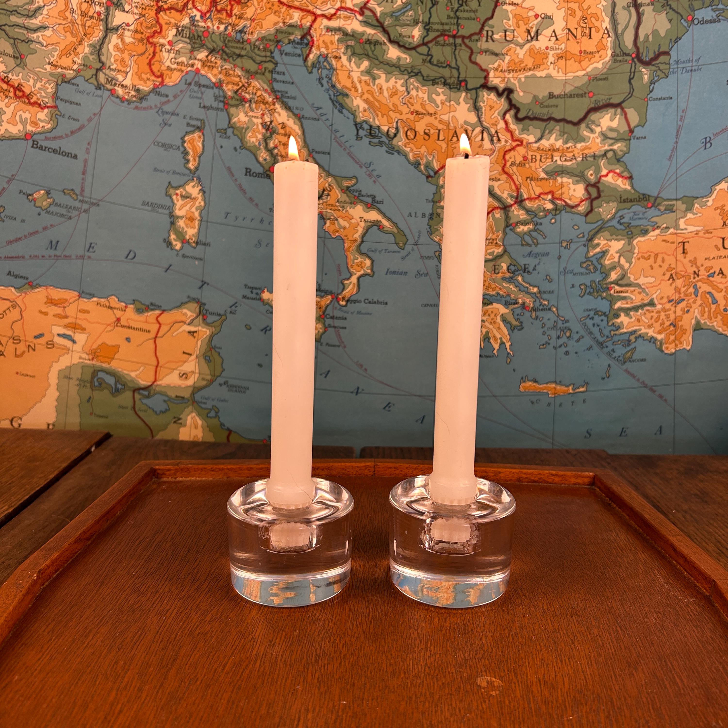 These are vintage Orrefors clear crystal cylinder candle holders, beautifully crafted in Sweden and signed Orrefors, confirming their authenticity. Known worldwide for exceptional quality and timeless Scandinavian design, Orrefors crystal pieces are prized for their clarity, weight, and minimalist elegance.