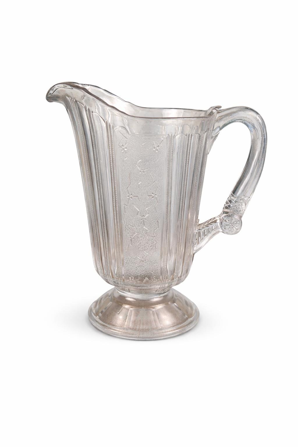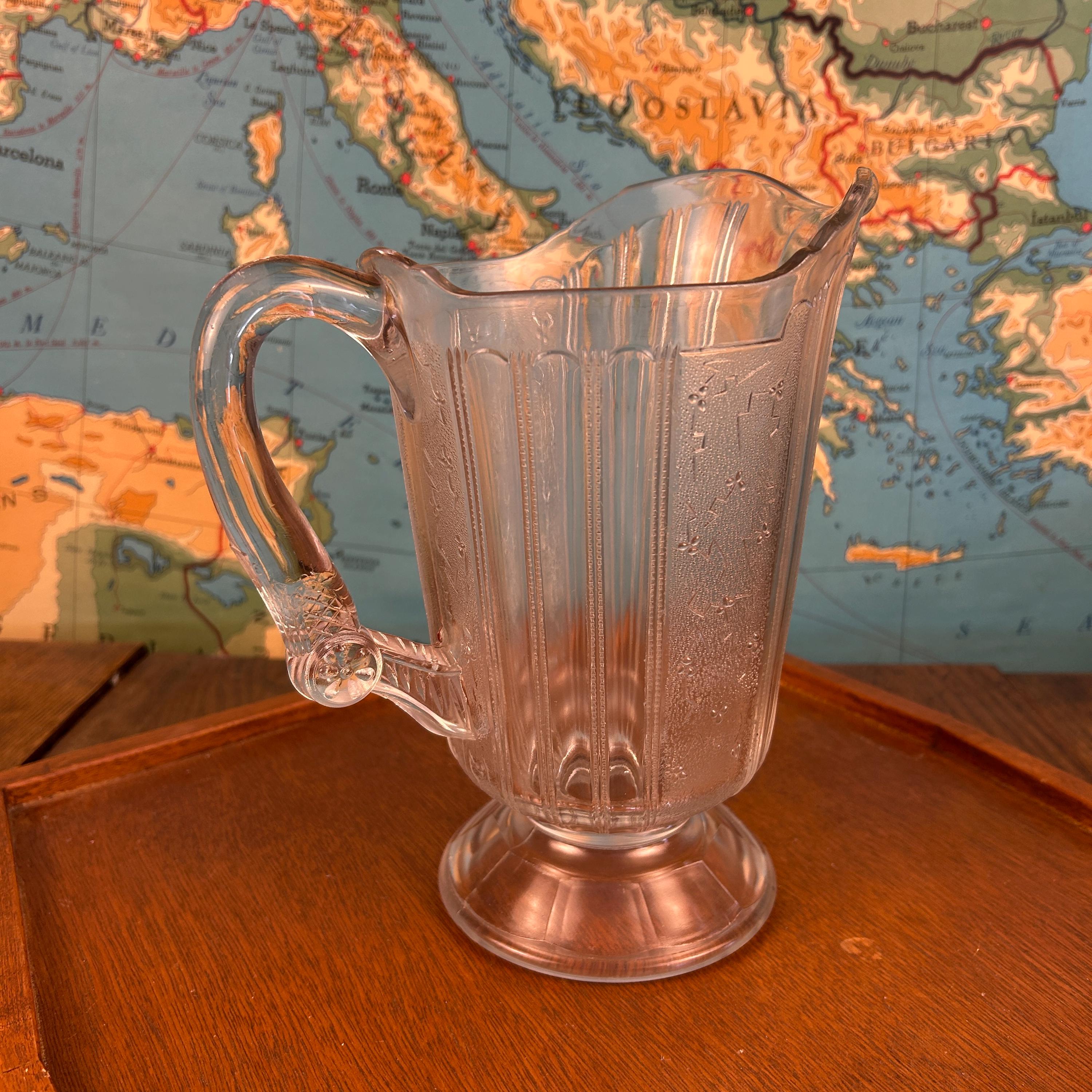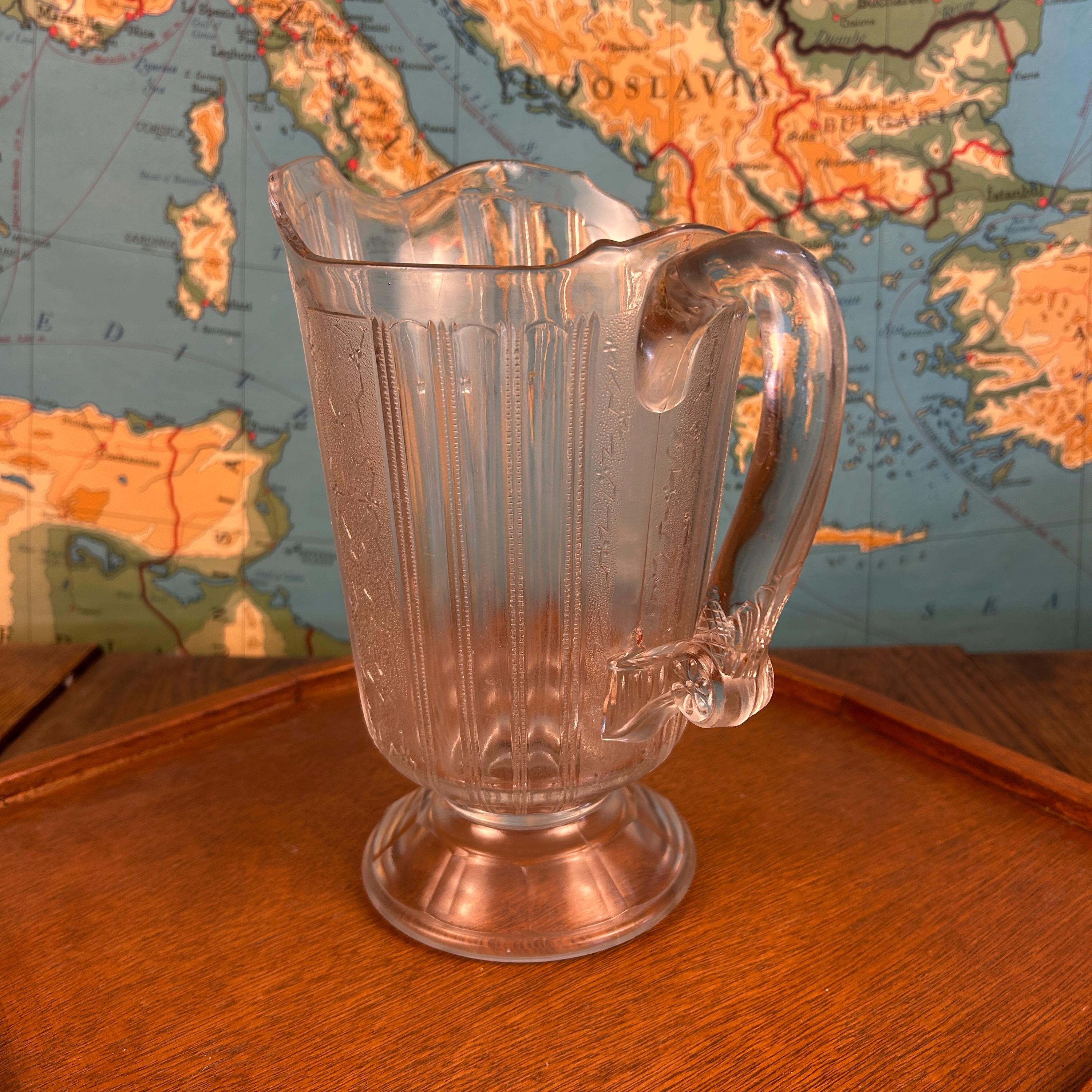 Originally intended for table use, this pitcher is now best appreciated as a collectible display piece, representing the craftsmanship and decorative style of Victorian-era American glassmaking.