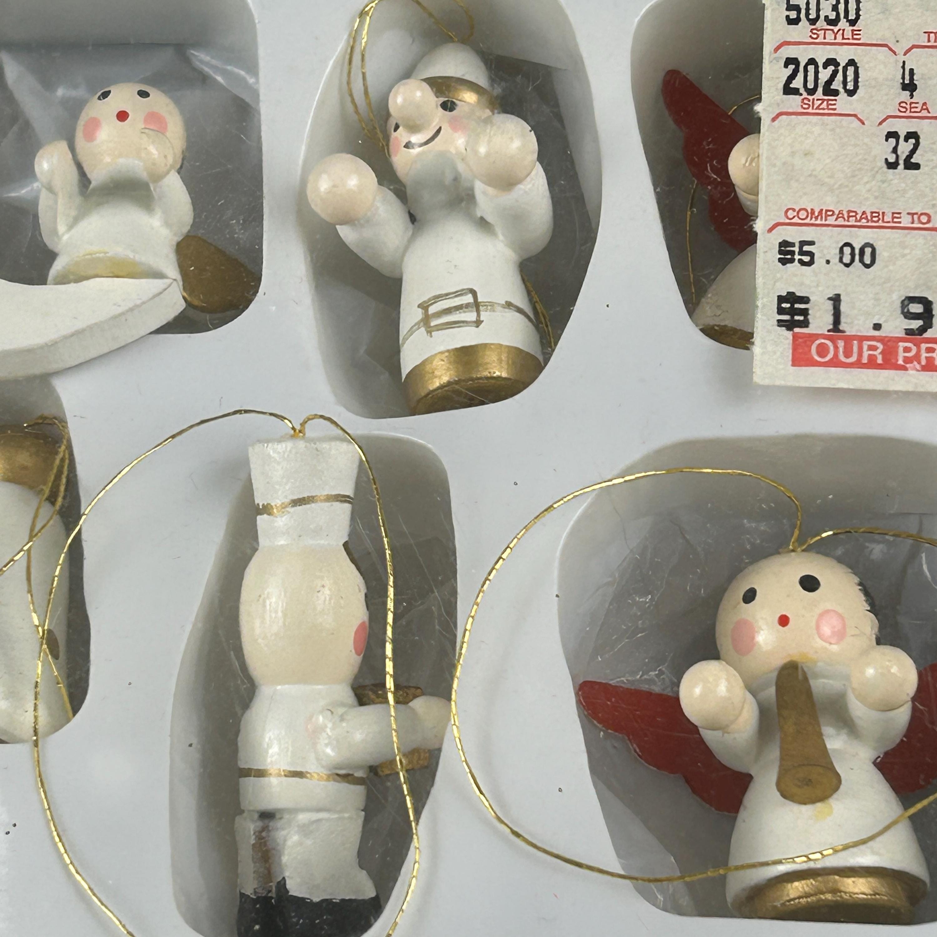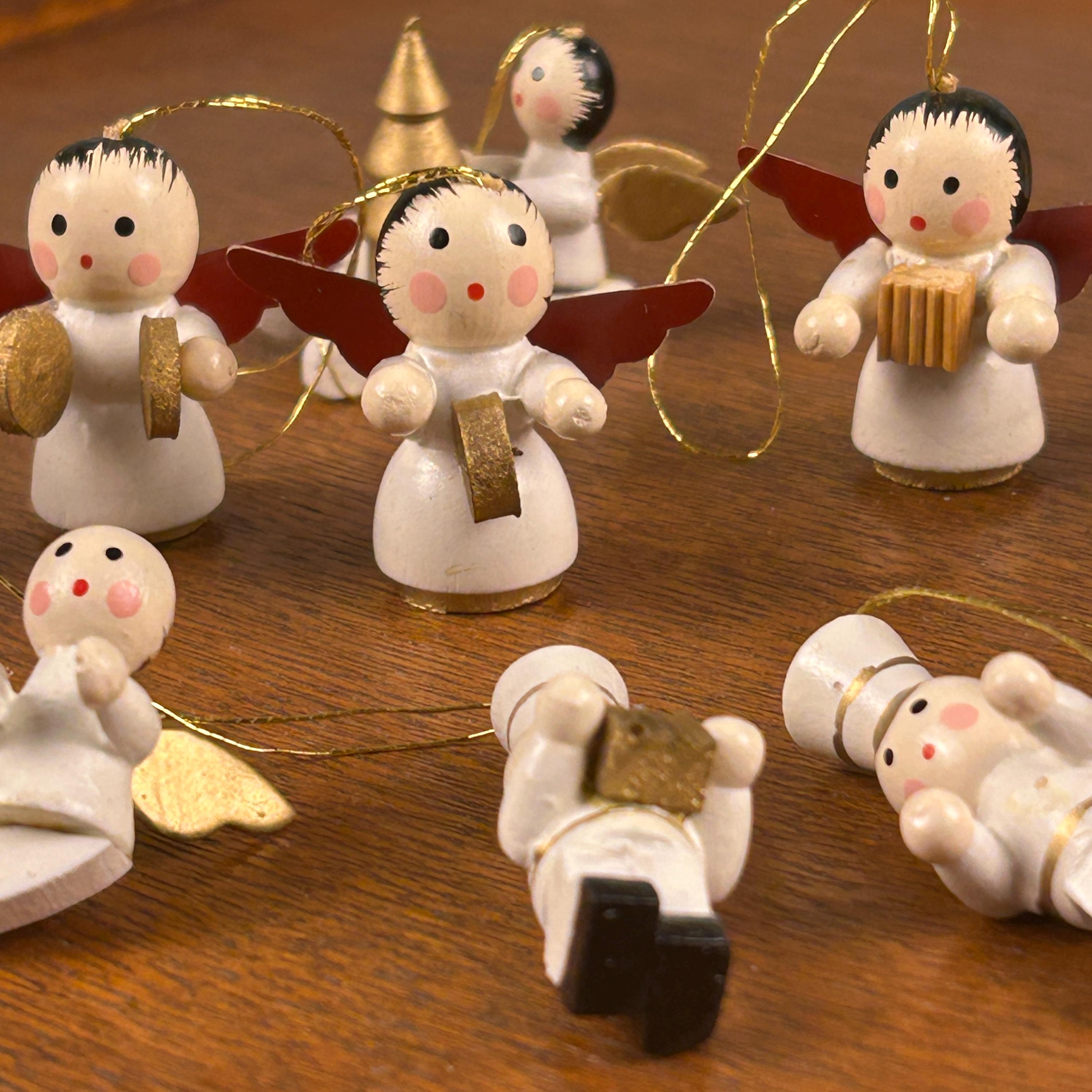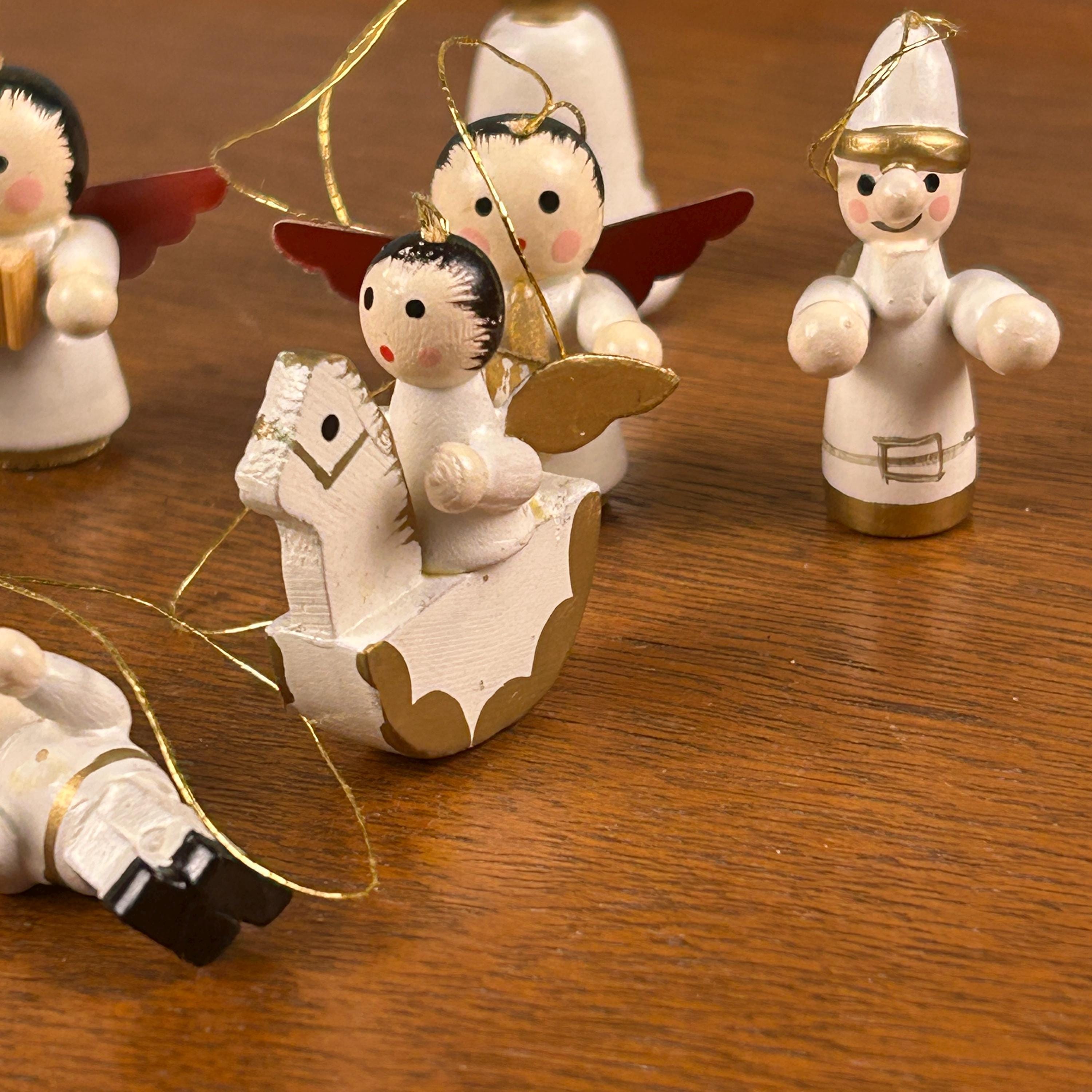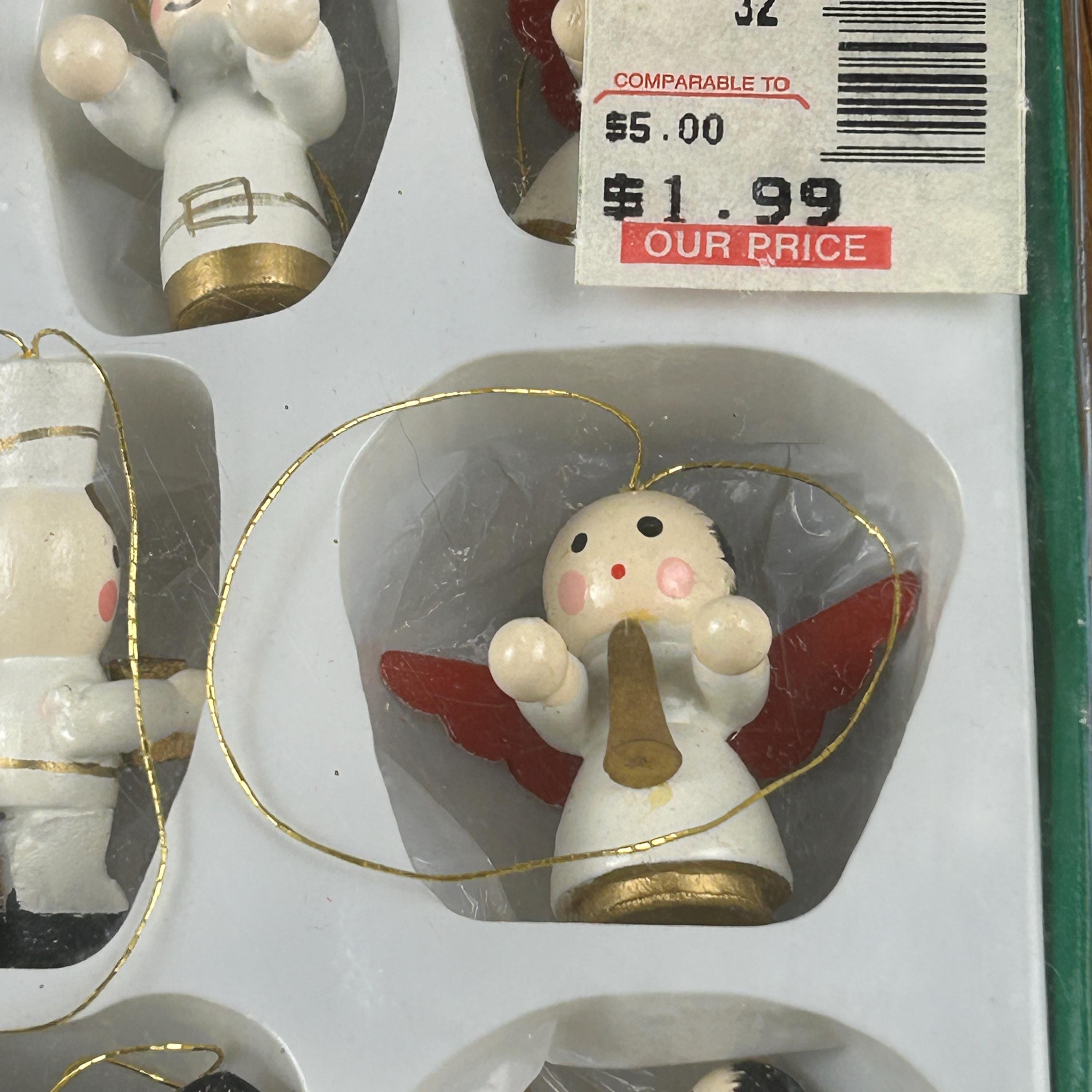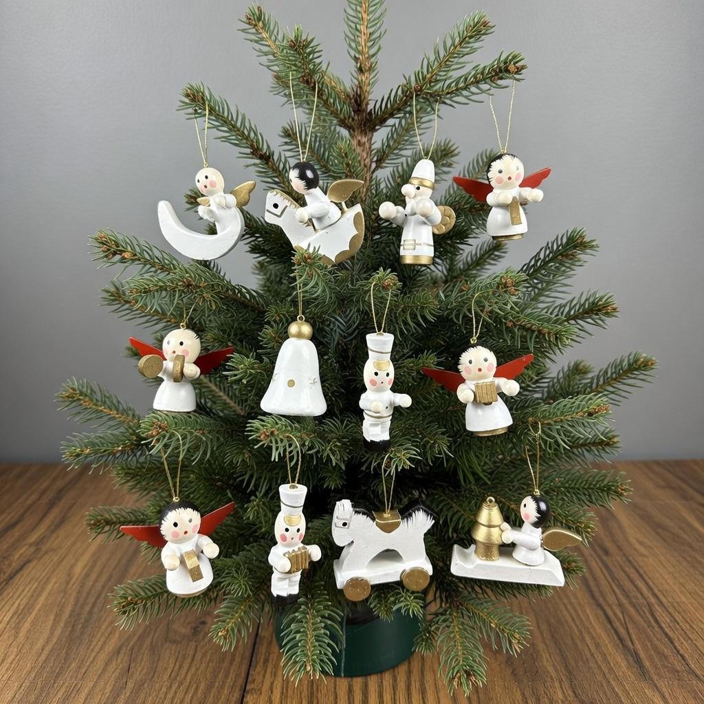 This is a beautiful set of 12 hand-painted wooden Christmas tree ornaments from Brubaker, featuring a charming Guardian Angel theme. Designed in Germany, these ornaments reflect traditional European Christmas style with delicate painting and timeless symbolism.
