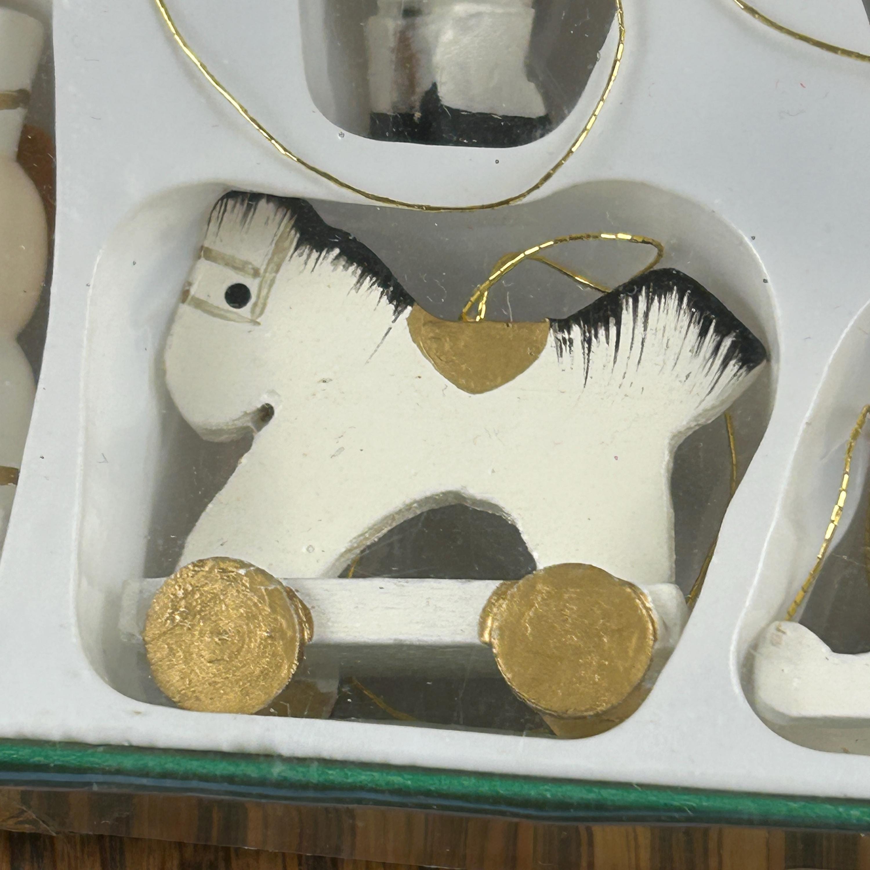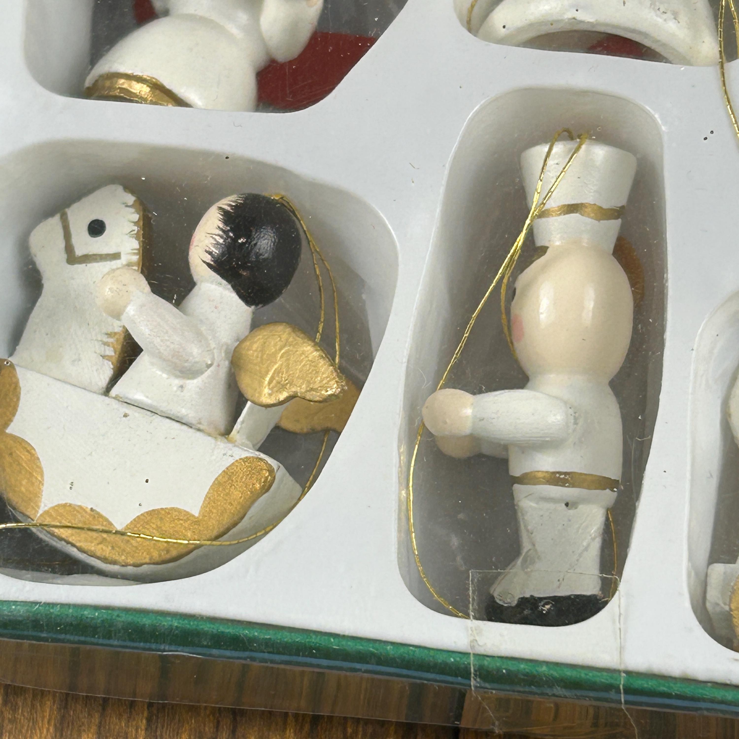 Excellent condition with light, if any, signs of handling. Ornaments come in original box with price sticker still attached.Paint is bright and well preserved. Please review all photos carefully, as they are part of the description.