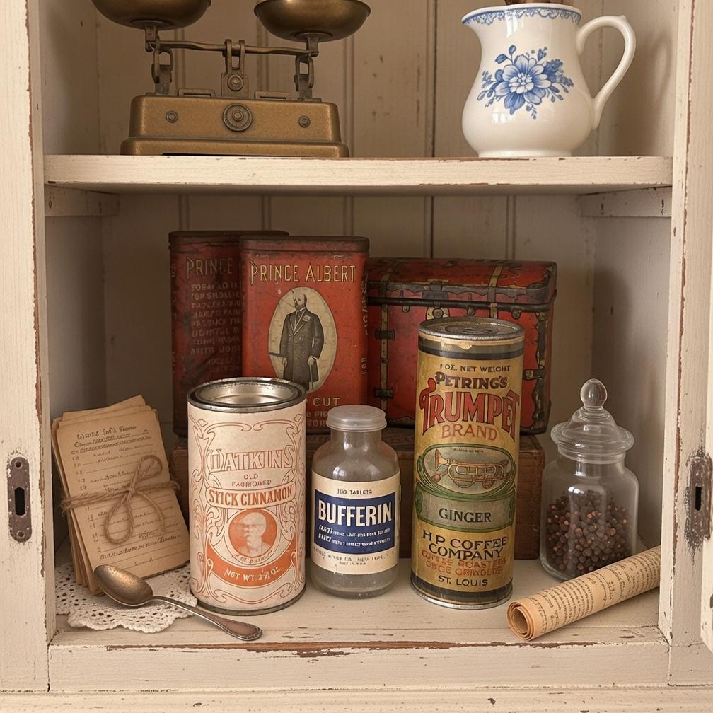 These tins are ideal for farmhouse kitchens, vintage shelves, country stores, photography props, theater sets, or retail displays. Their worn graphics, patina, and typography add instant authenticity and old-world charm.
