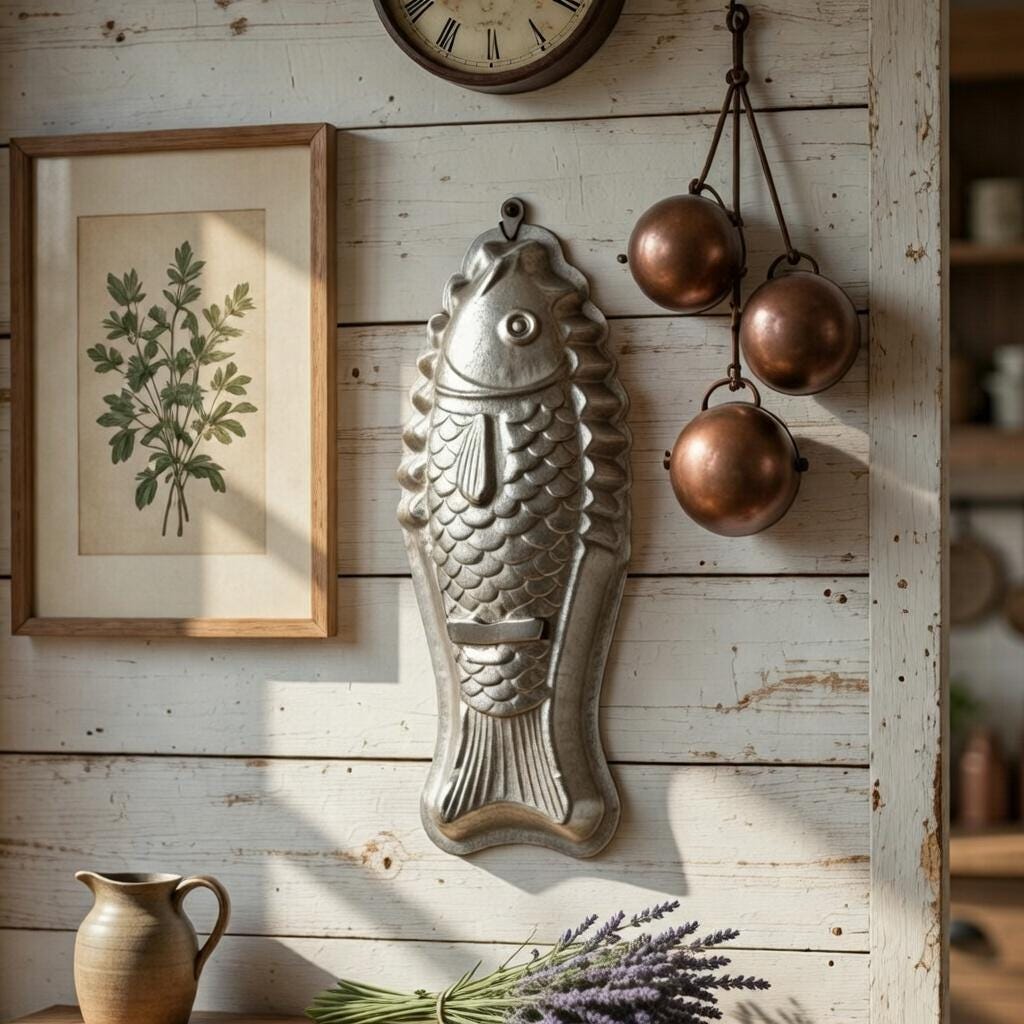 Fish molds like this were popular from the 1930s through the 1950s, prized for both their practicality and decorative presentation. Today, they’re just as loved for their rustic charm and versatility—perfect for hanging on a kitchen wall, styling on open shelving, or using as a unique serving or baking piece.