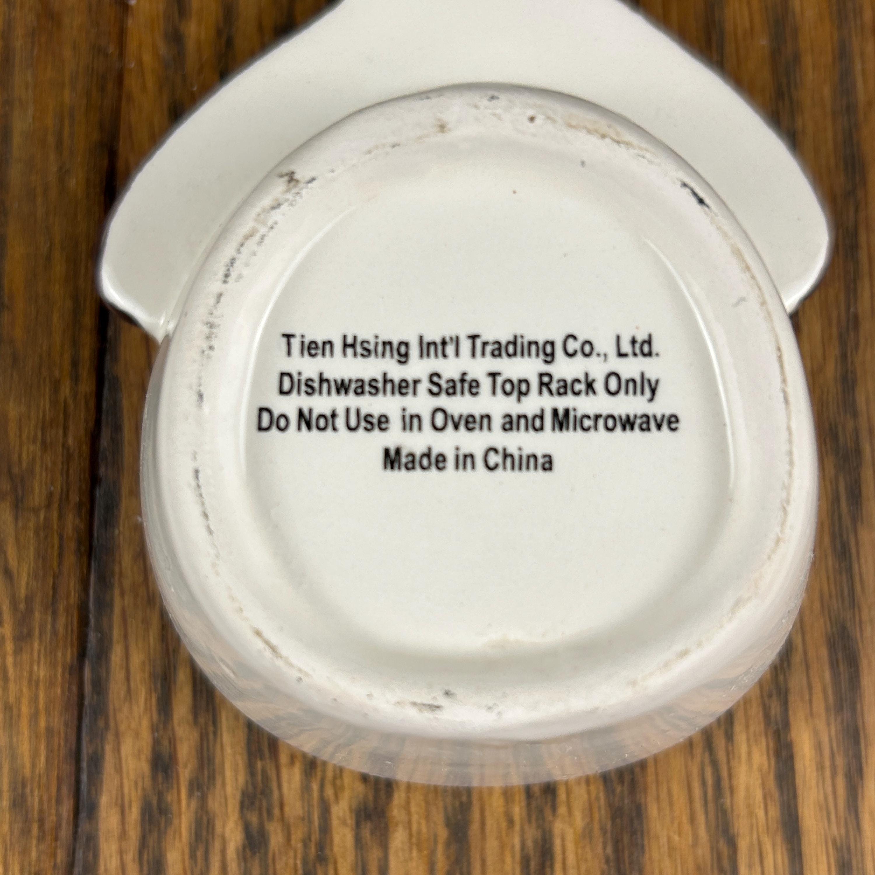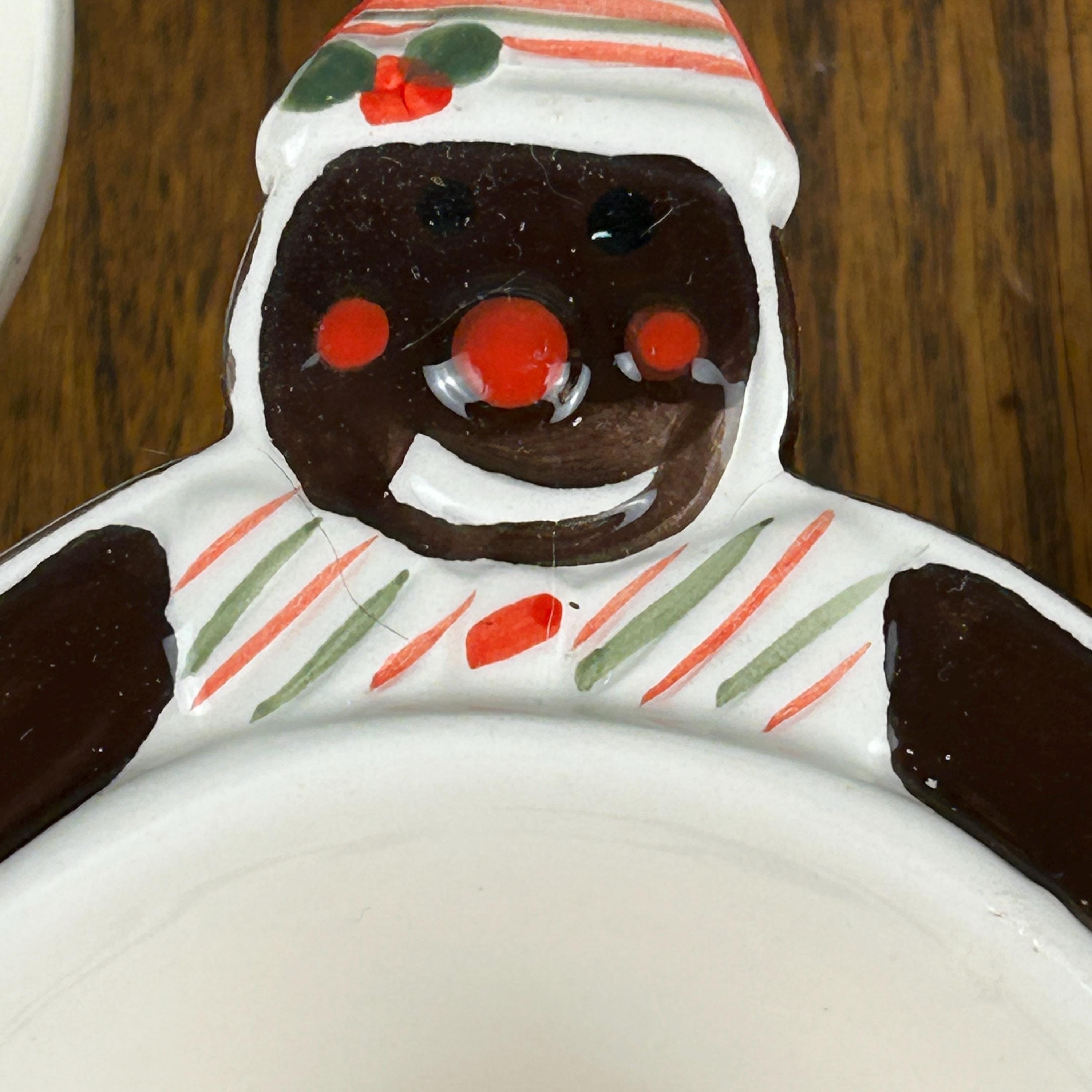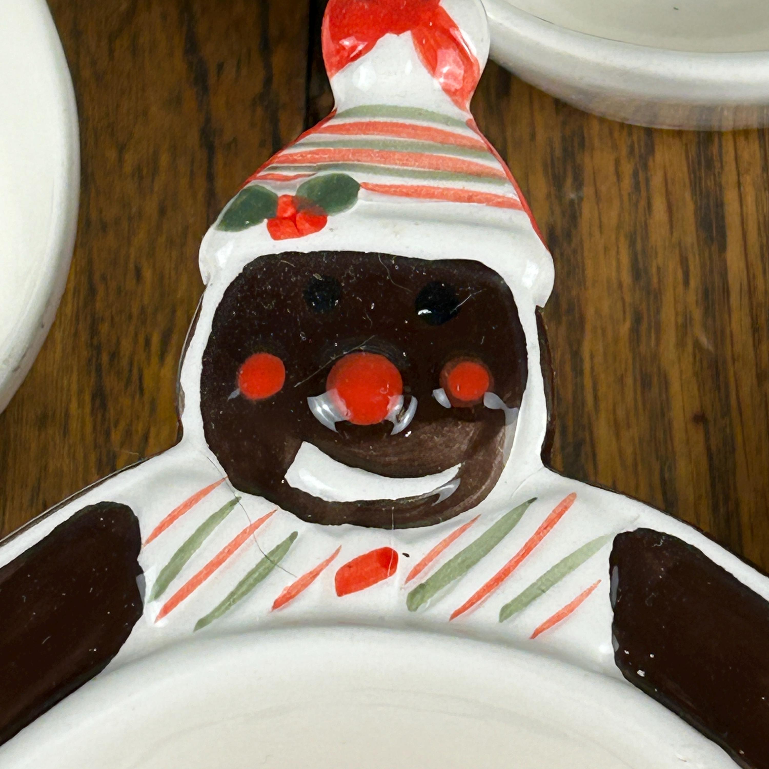 This is a set of 4 ceramic Gingerbread Man measuring cups made by Tien Hsing Int'l Trading Co.. Each cup features an adorable hand-painted gingerbread man wearing a festive holiday hat, bringing instant Christmas cheer to your kitchen.