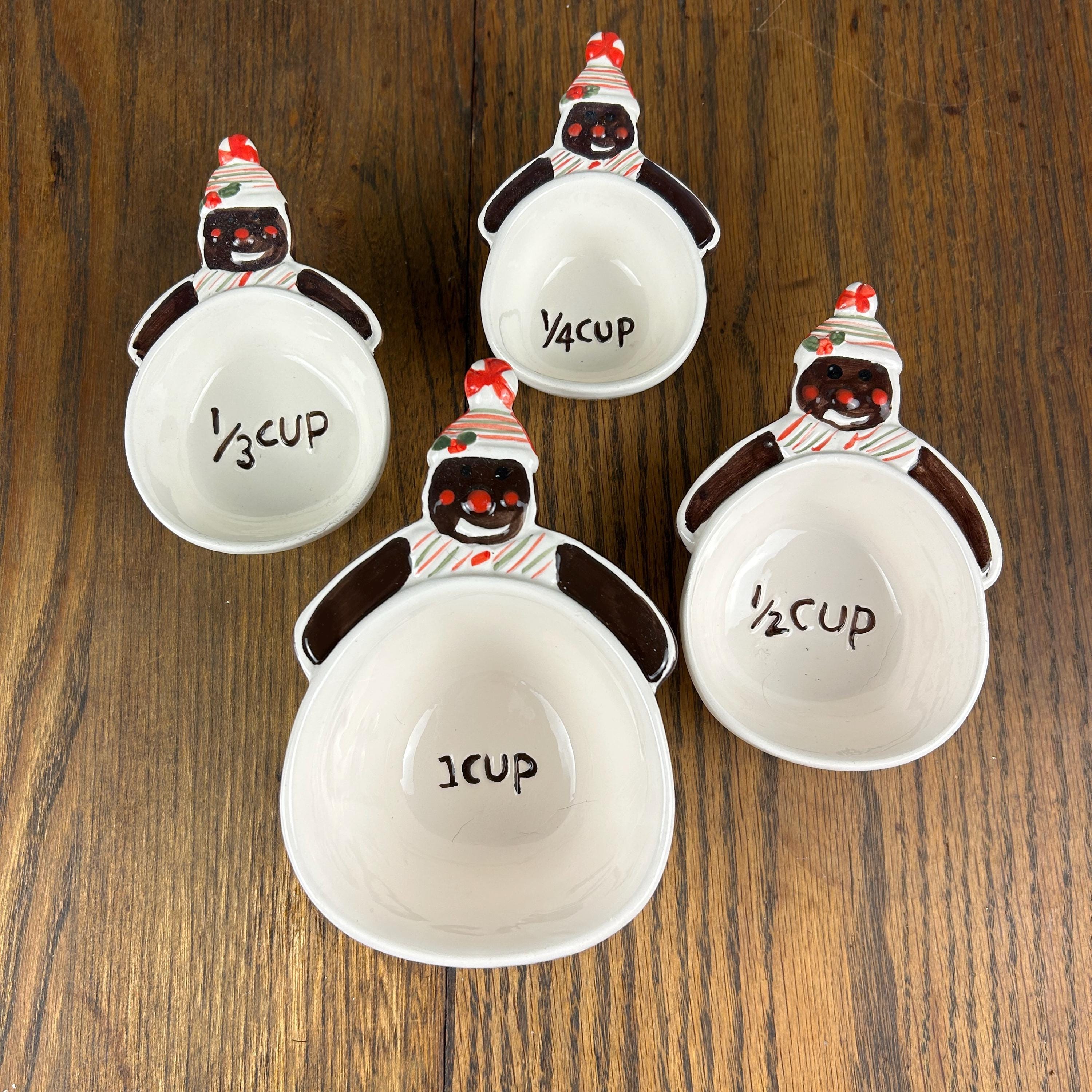 The set includes the most-used baking sizes—1 cup, 1/2 cup, 1/3 cup, and 1/4 cup—making them both functional for baking and charming enough to display on open shelves or countertops during the holidays. Perfect for seasonal baking, cookie exchanges, or adding a whimsical touch to your holiday décor.