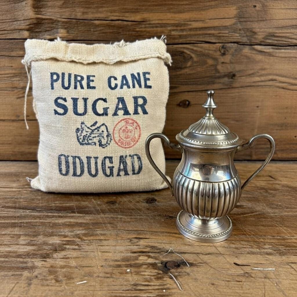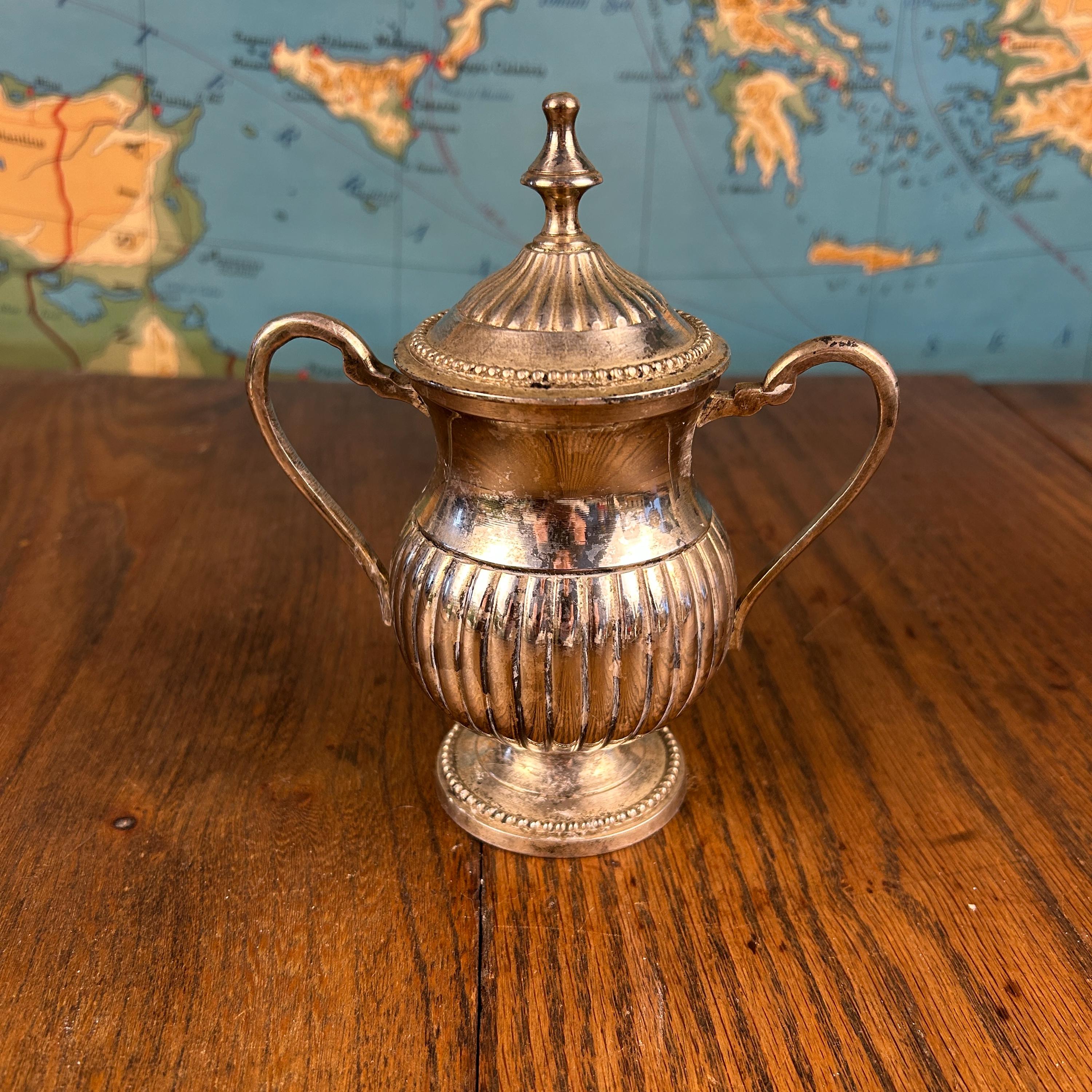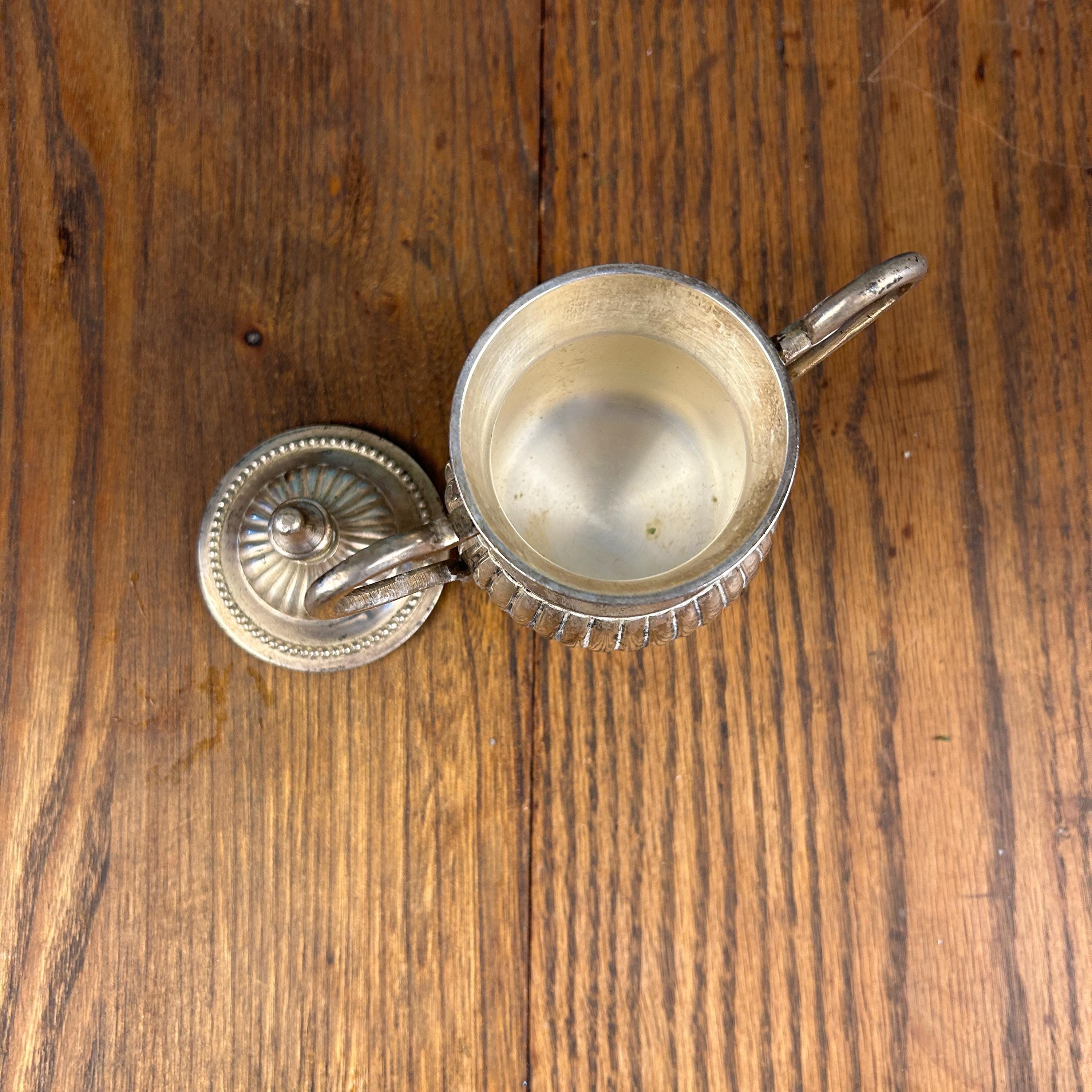 Quadruple silver plate indicates a thicker plating process, valued for its durability and rich shine. This bowl works beautifully as a sugar bowl, but it can also be styled as a small candy dish, trinket holder, or accent piece in a china cabinet or on a sideboard.