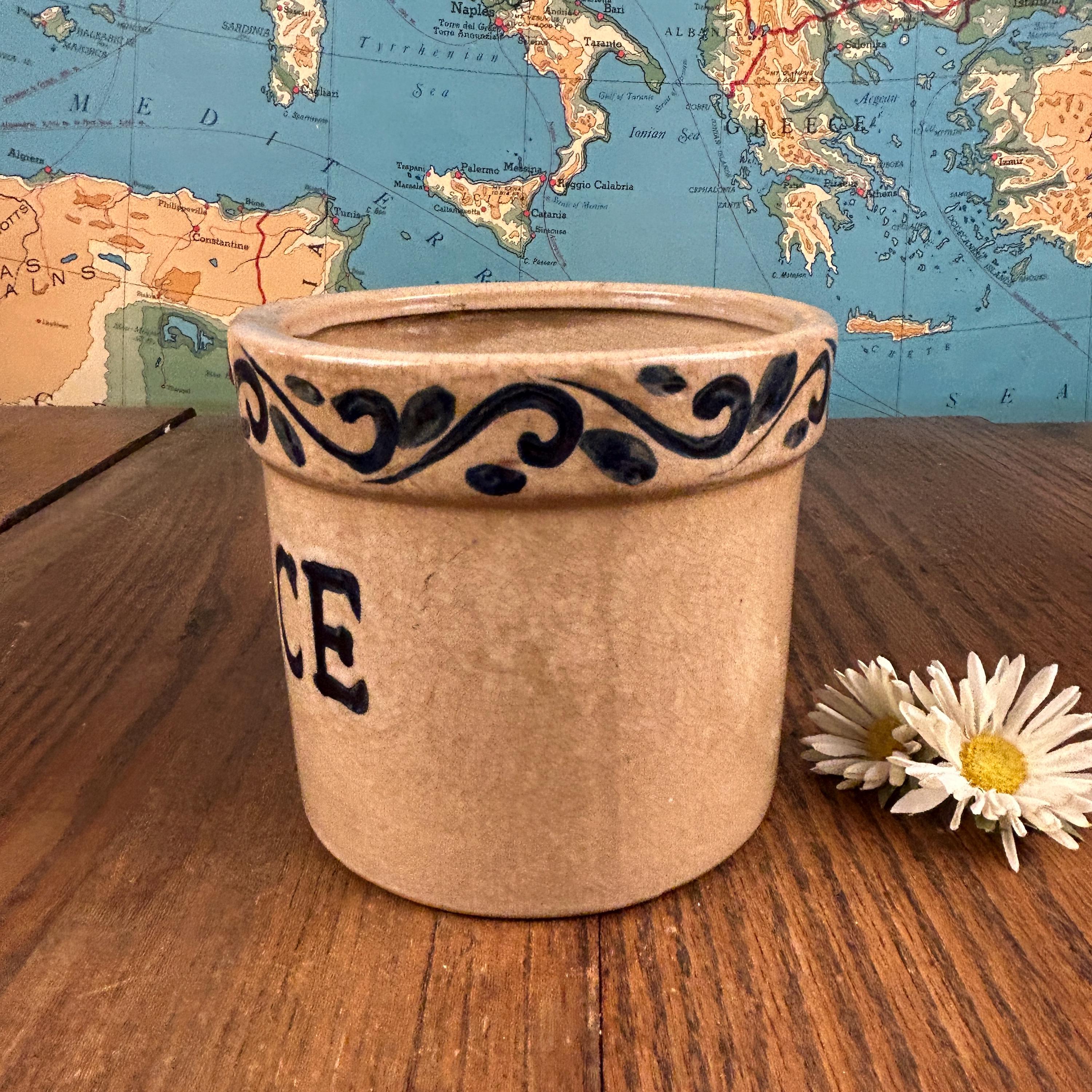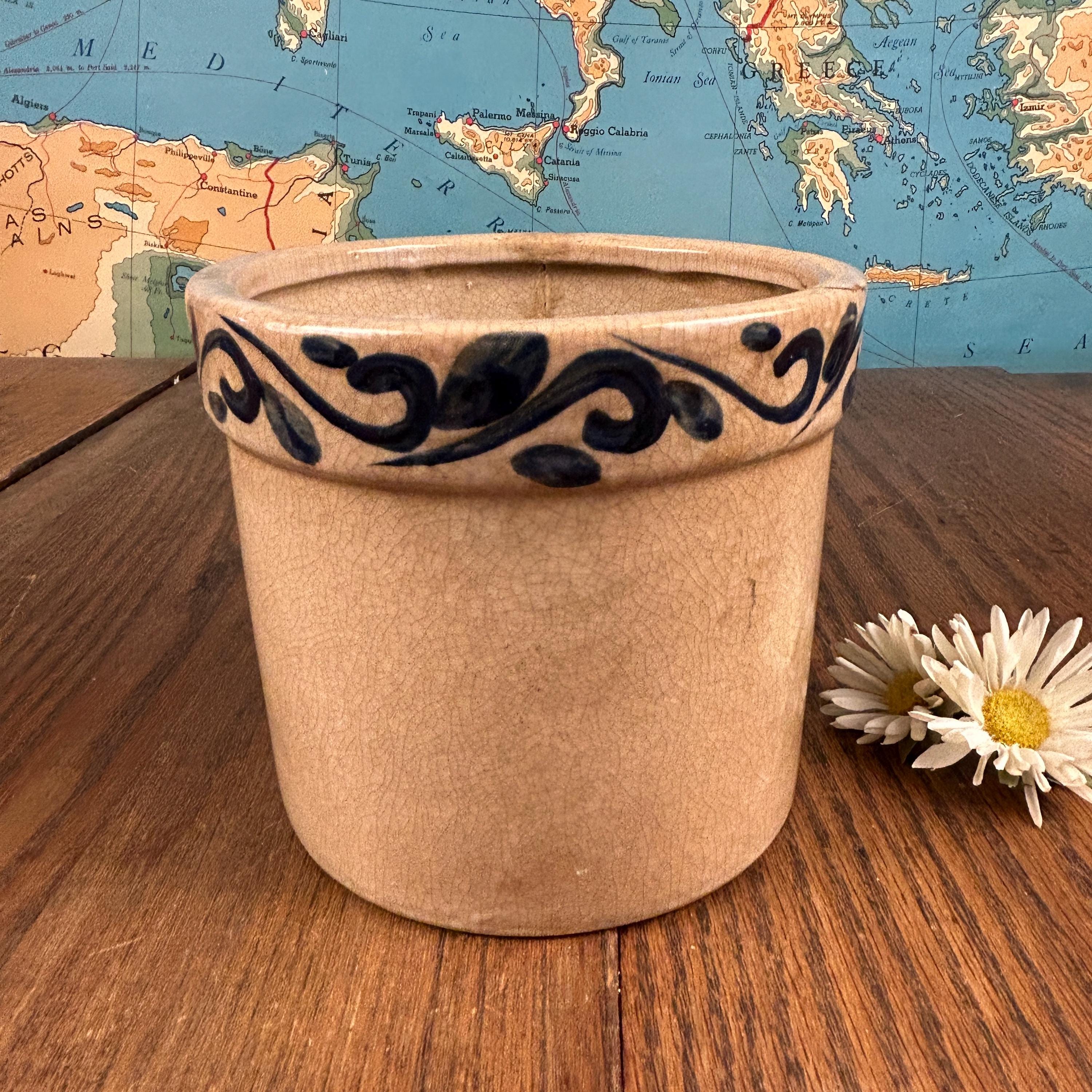 Perfect as a decorative crock, utensil holder, small planter, or shelf accent, this piece brings a quiet, collected presence to farmhouse, cottage, or vintage-inspired spaces.
