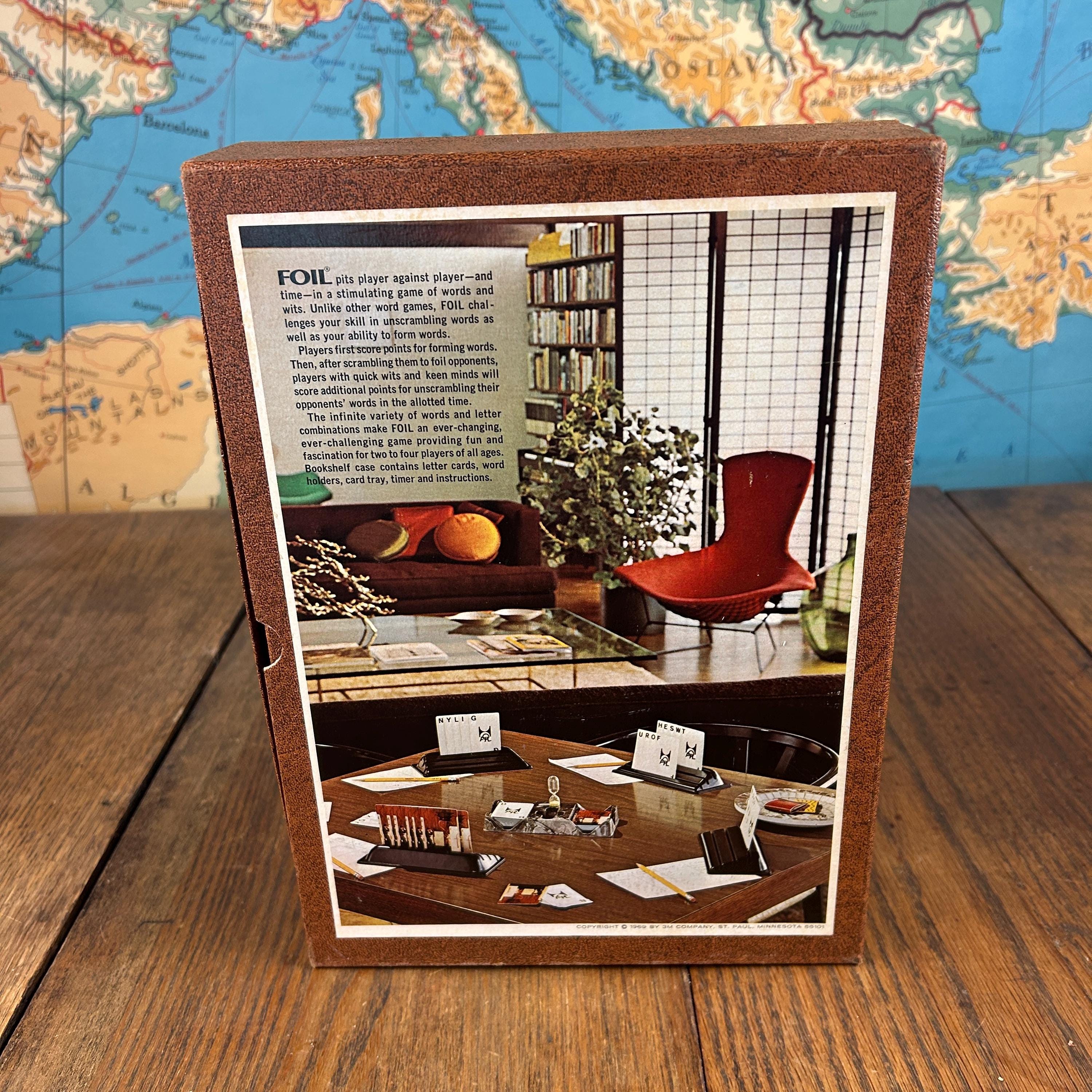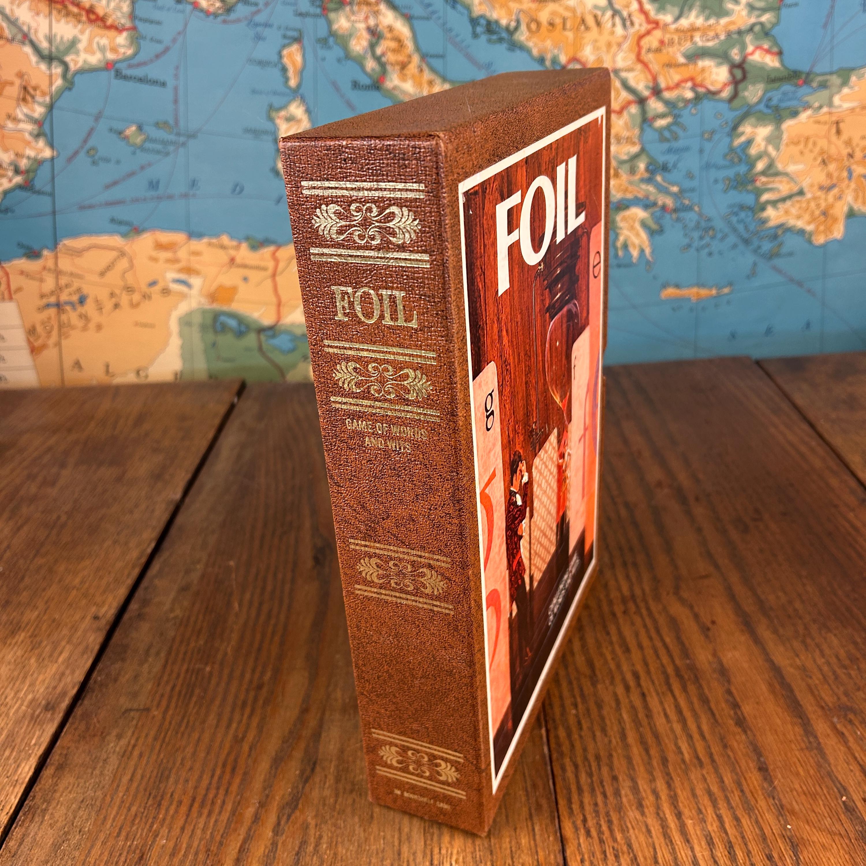 Like all 3M Bookshelf Games, Foil is packaged in a distinctive book-style box, designed to blend seamlessly with books on a shelf when not in use. The exterior features stylized retro artwork, making it as appealing for display as it is for gameplay.