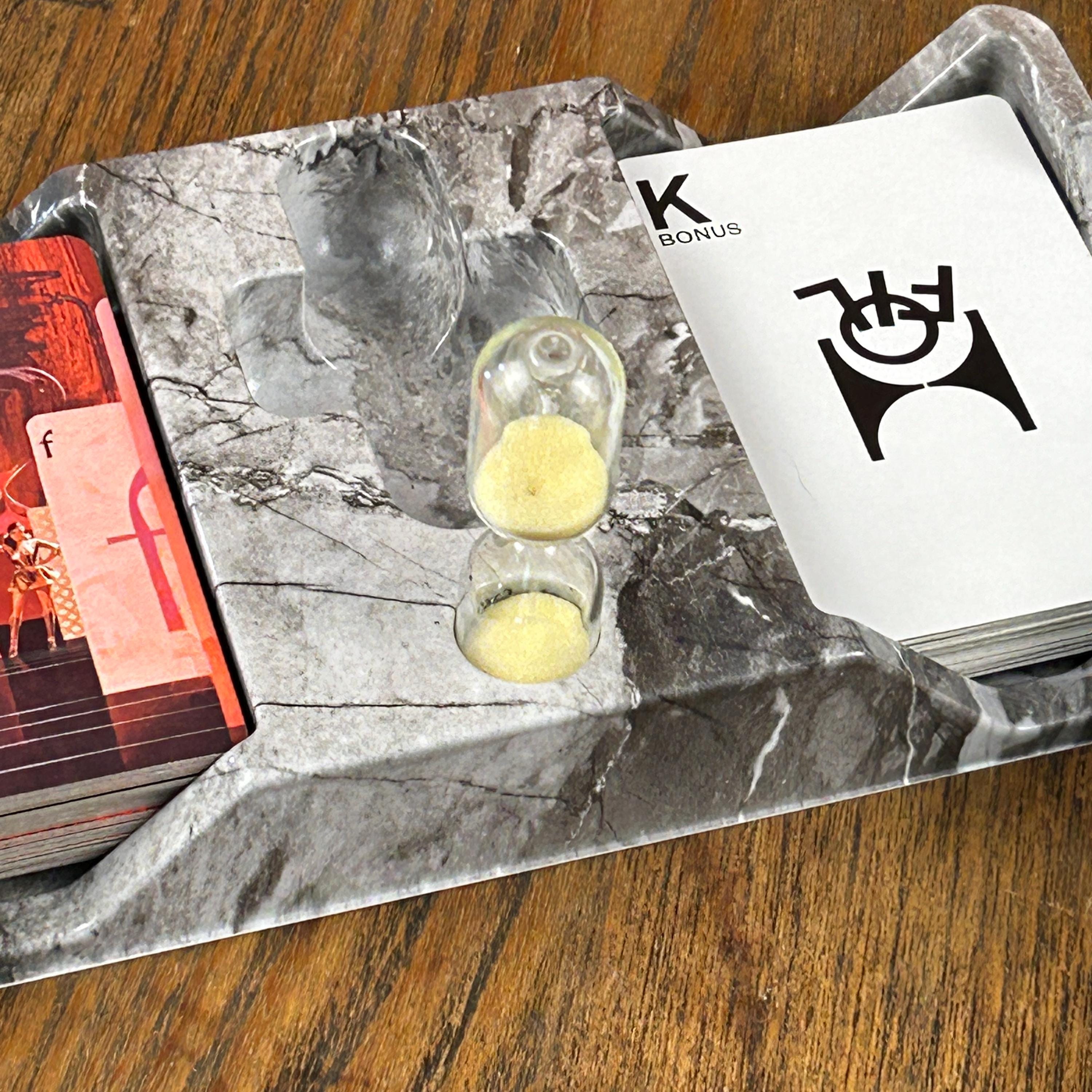 Includes letter cards, a timer, and game instructions. Complete set with instructions. Please review photos to confirm included components.