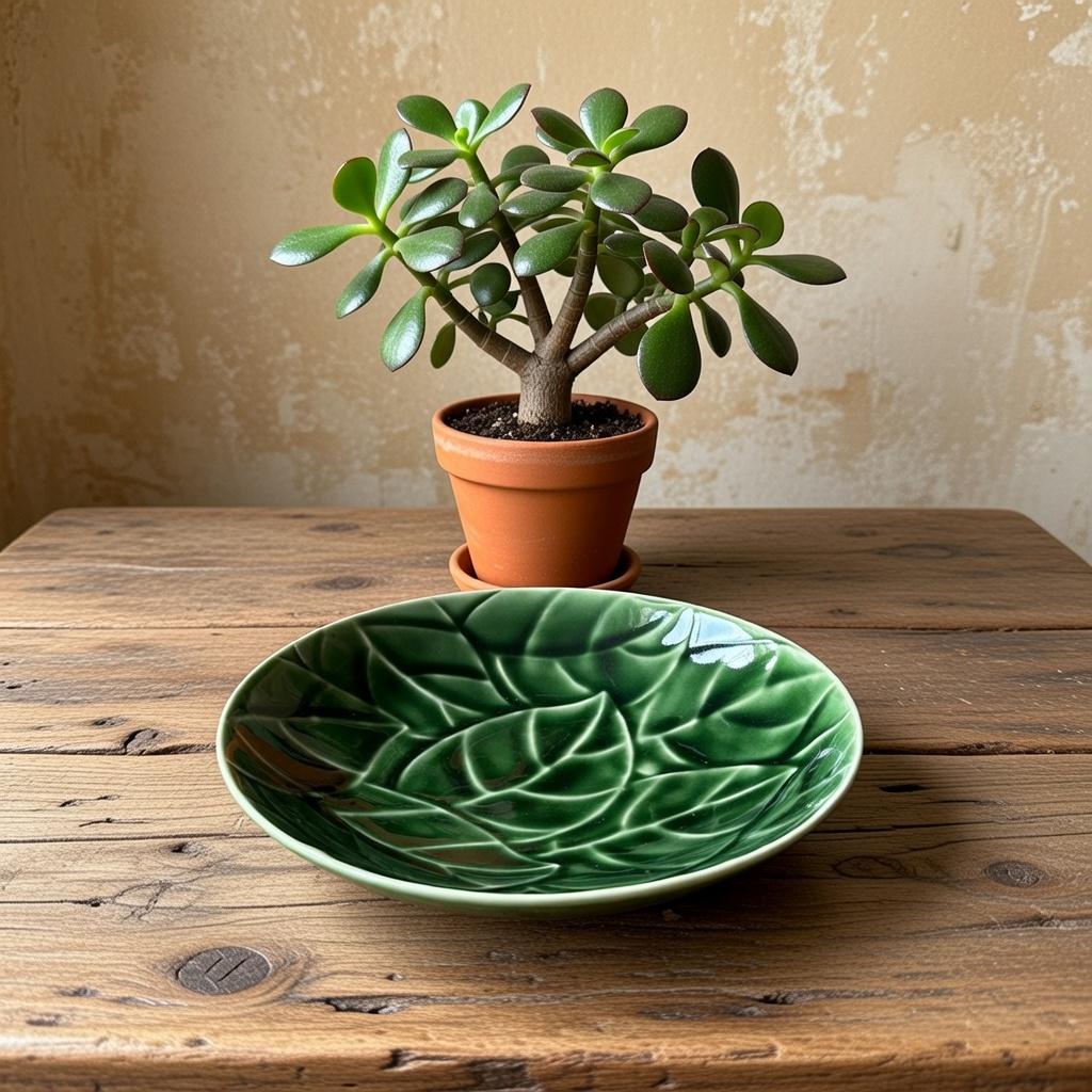 Color: Green with embossed leaf motif