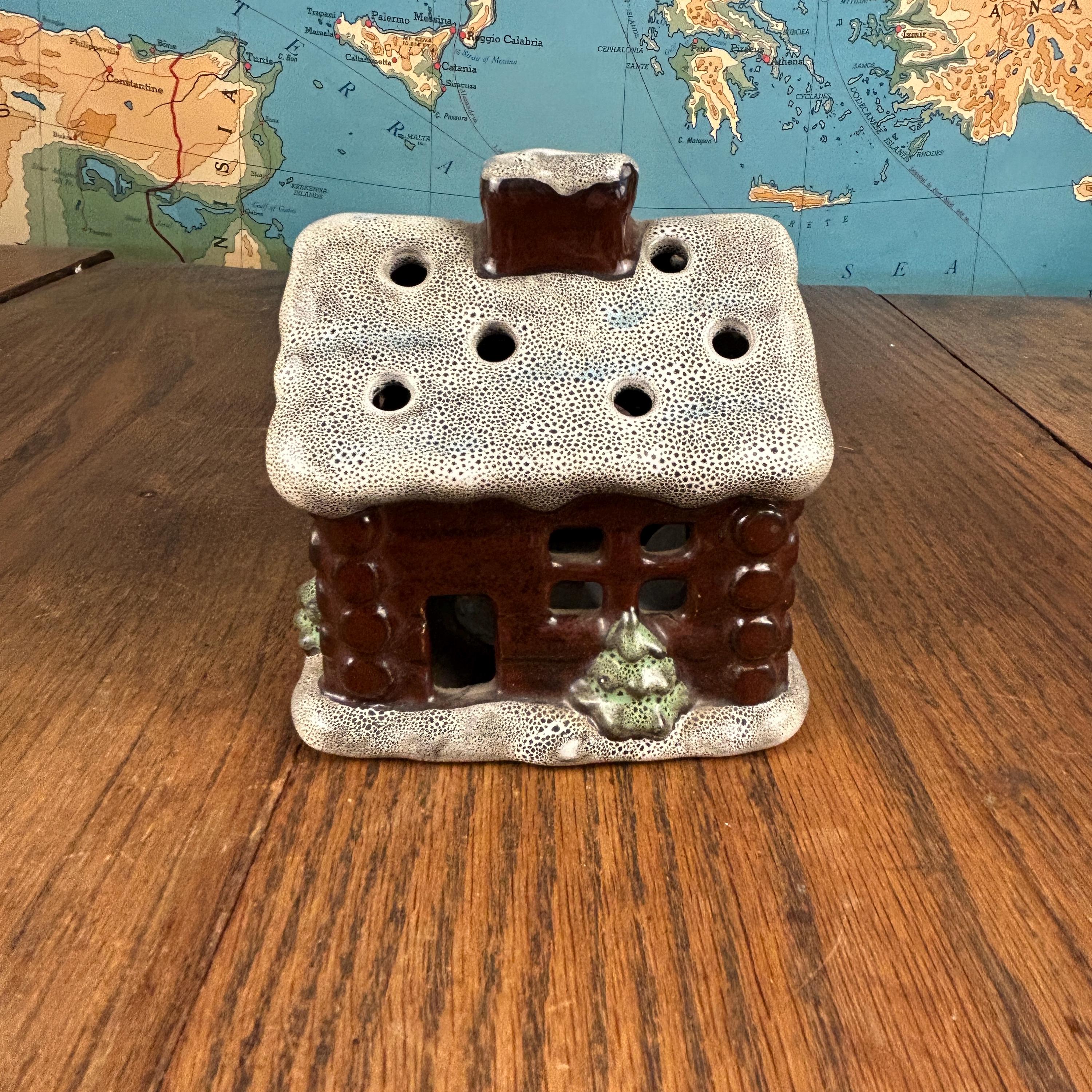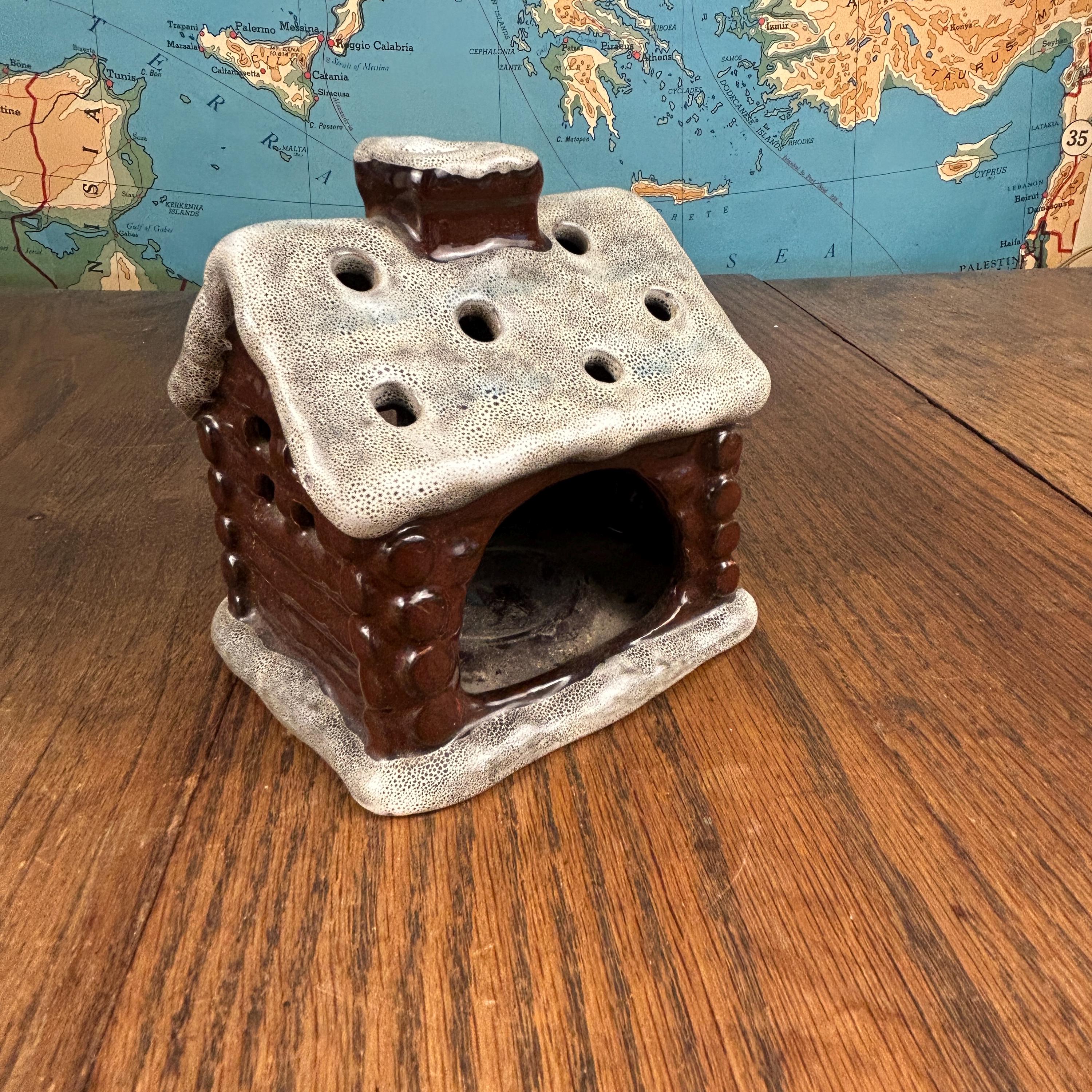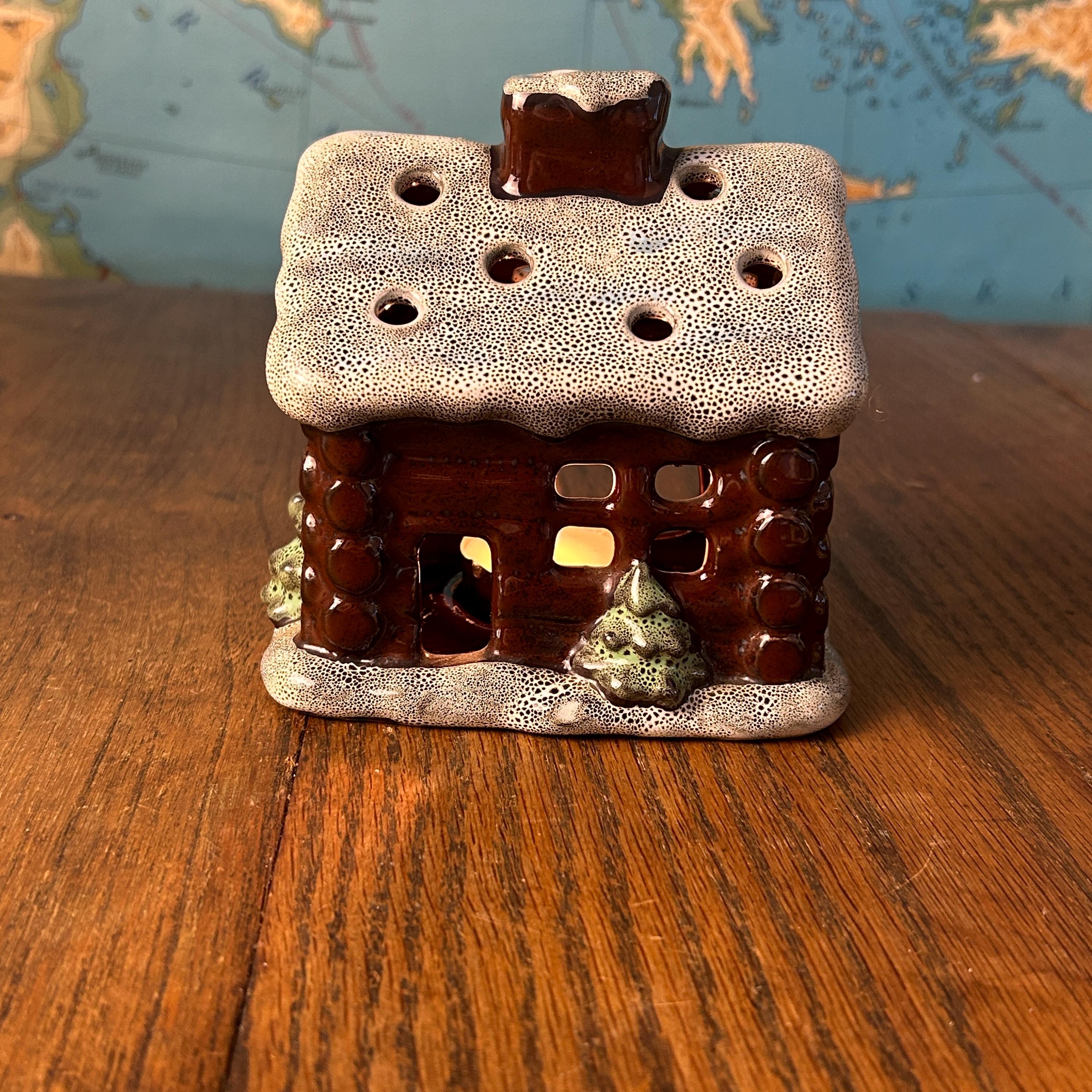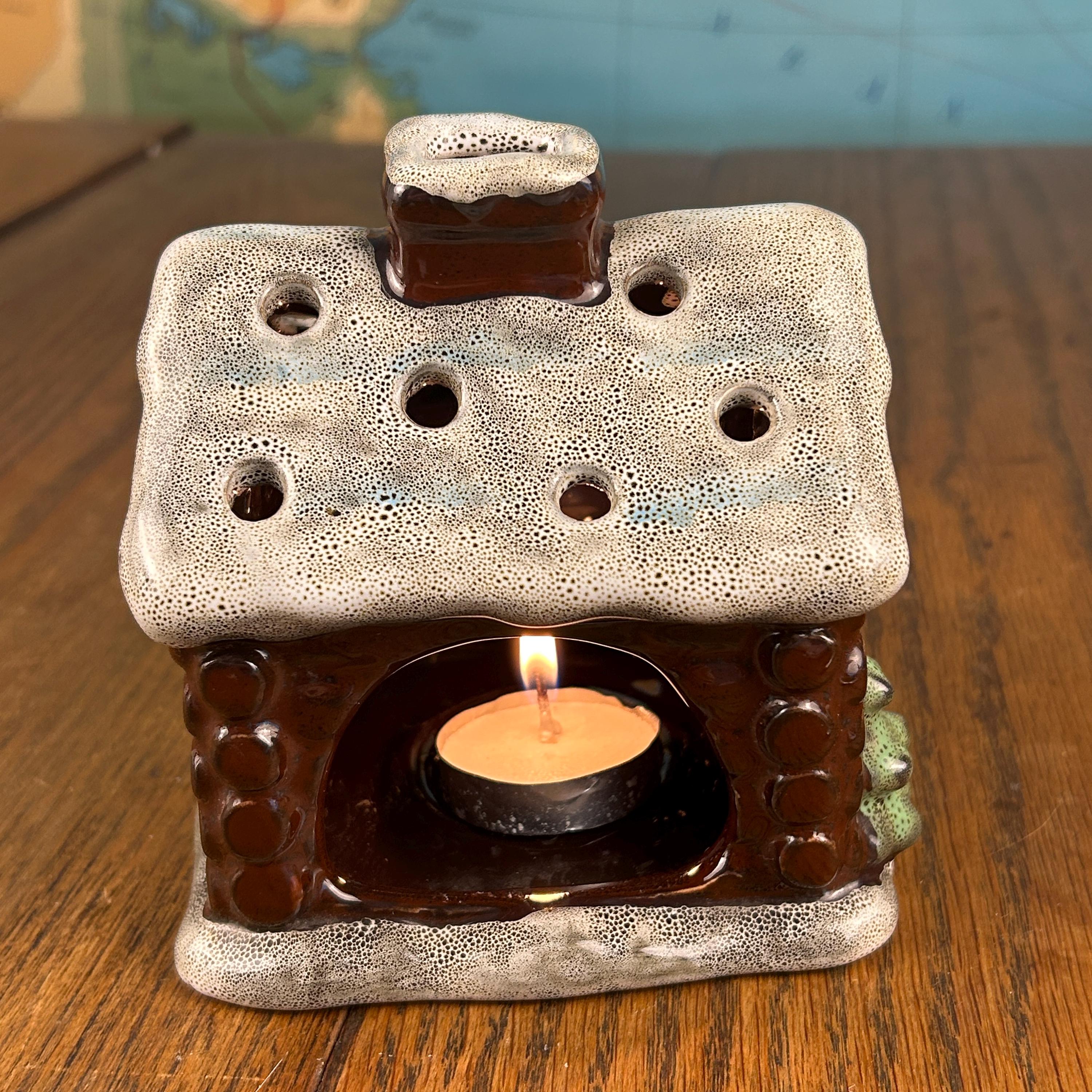 When a candle is placed inside, soft light shines through the windows and roof openings, making it perfect for holiday displays, winter decor, or cabin-style homes. It also works wonderfully as a fragrance oil burner when paired with a tealight. Place an incense cone inside and the chimney will smoke.