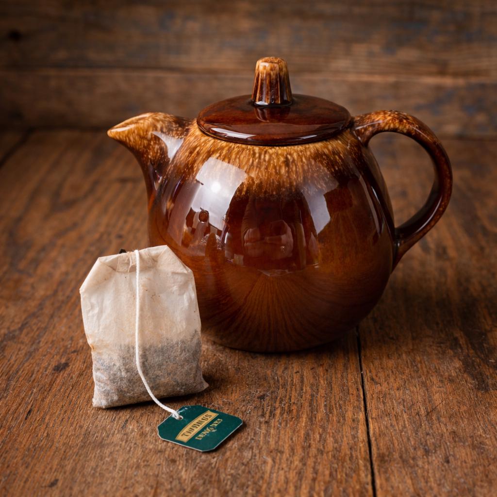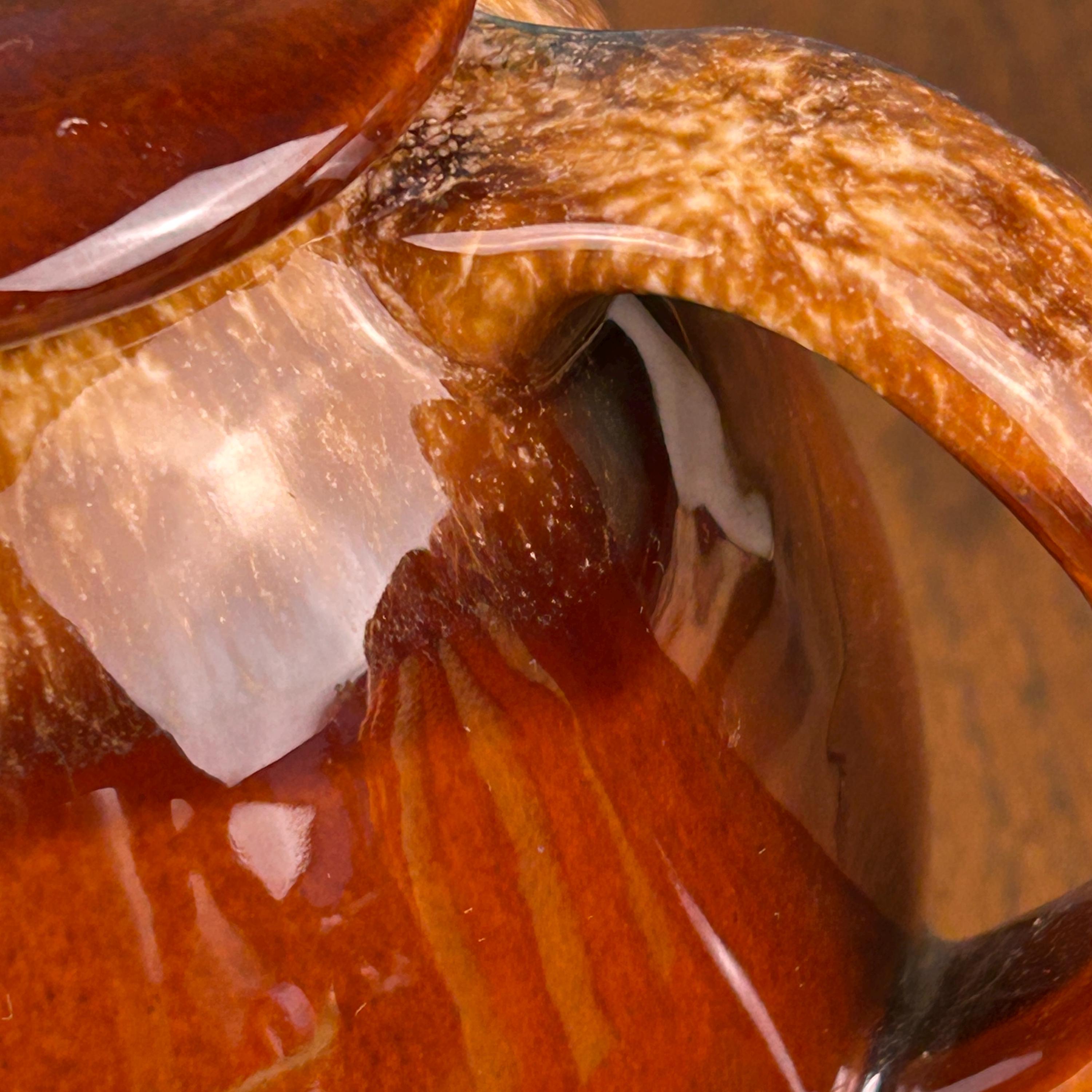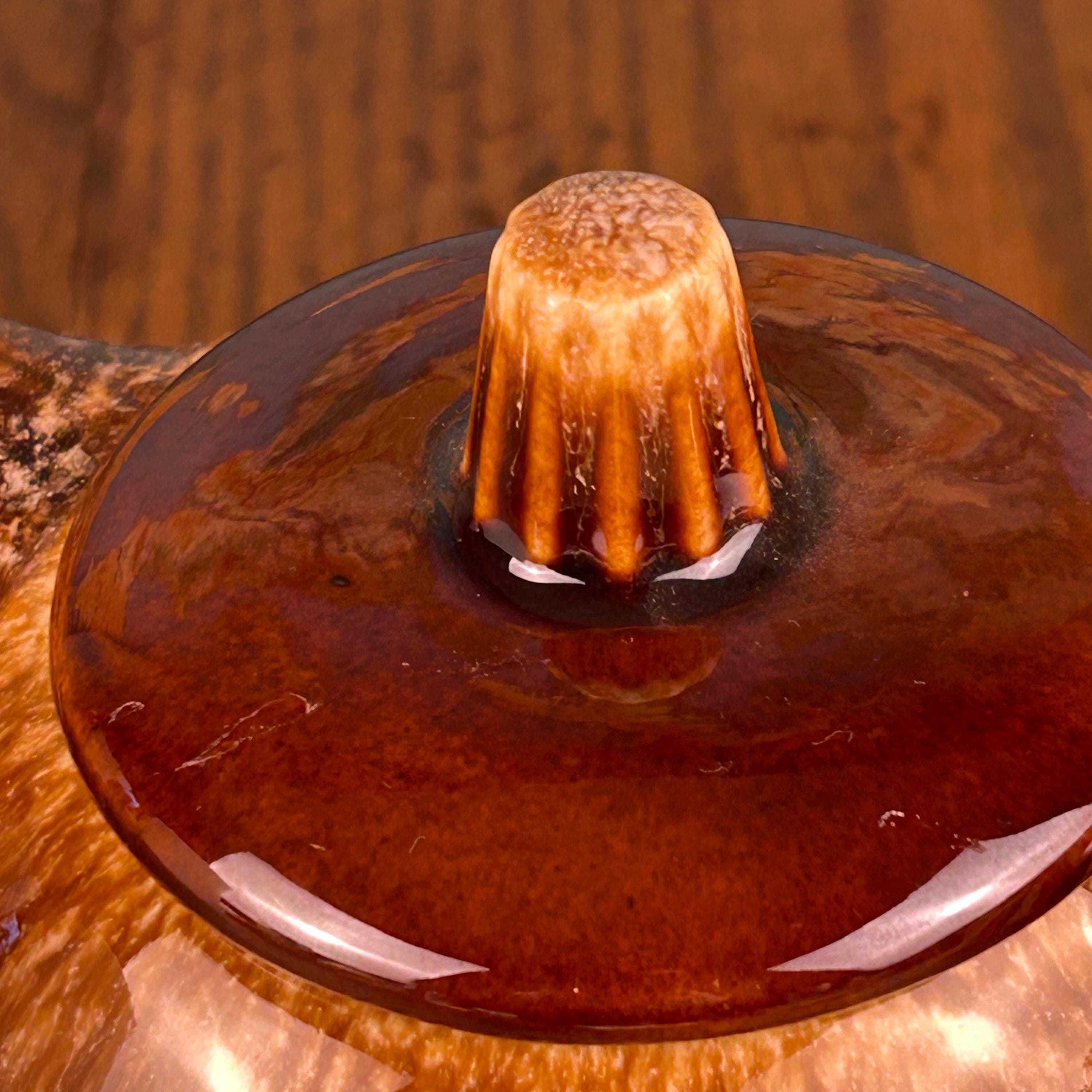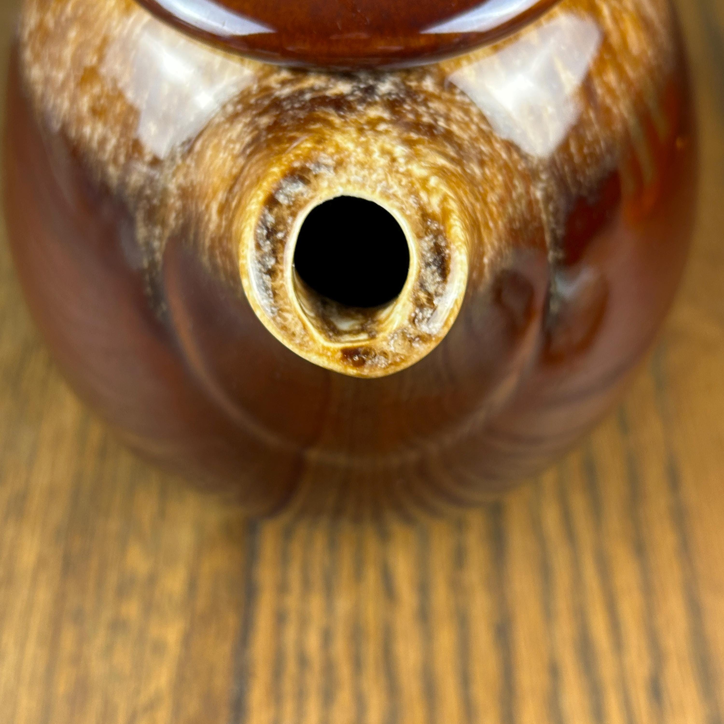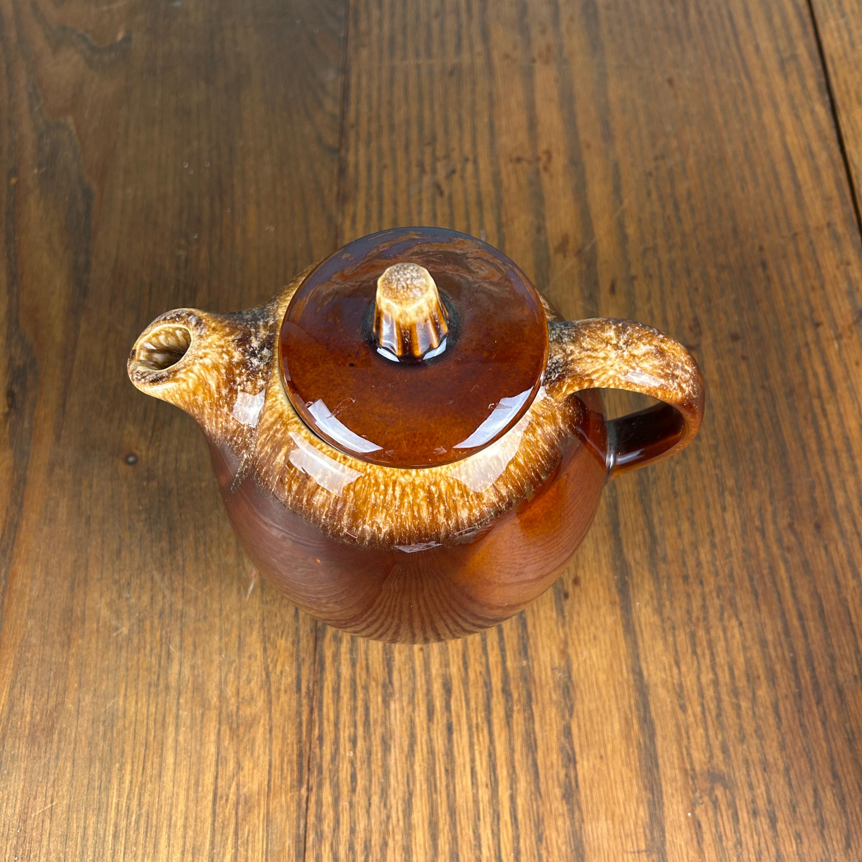 Made by Hull Pottery, a well-known American pottery company, the teapot is crafted from sturdy oven-proof ceramic and comes with its original fitted lid. The rich chocolate brown glaze paired with the soft cream drip detailing gives it a warm retro look that fits perfectly in farmhouse, mid-century, or vintage-inspired kitchens.