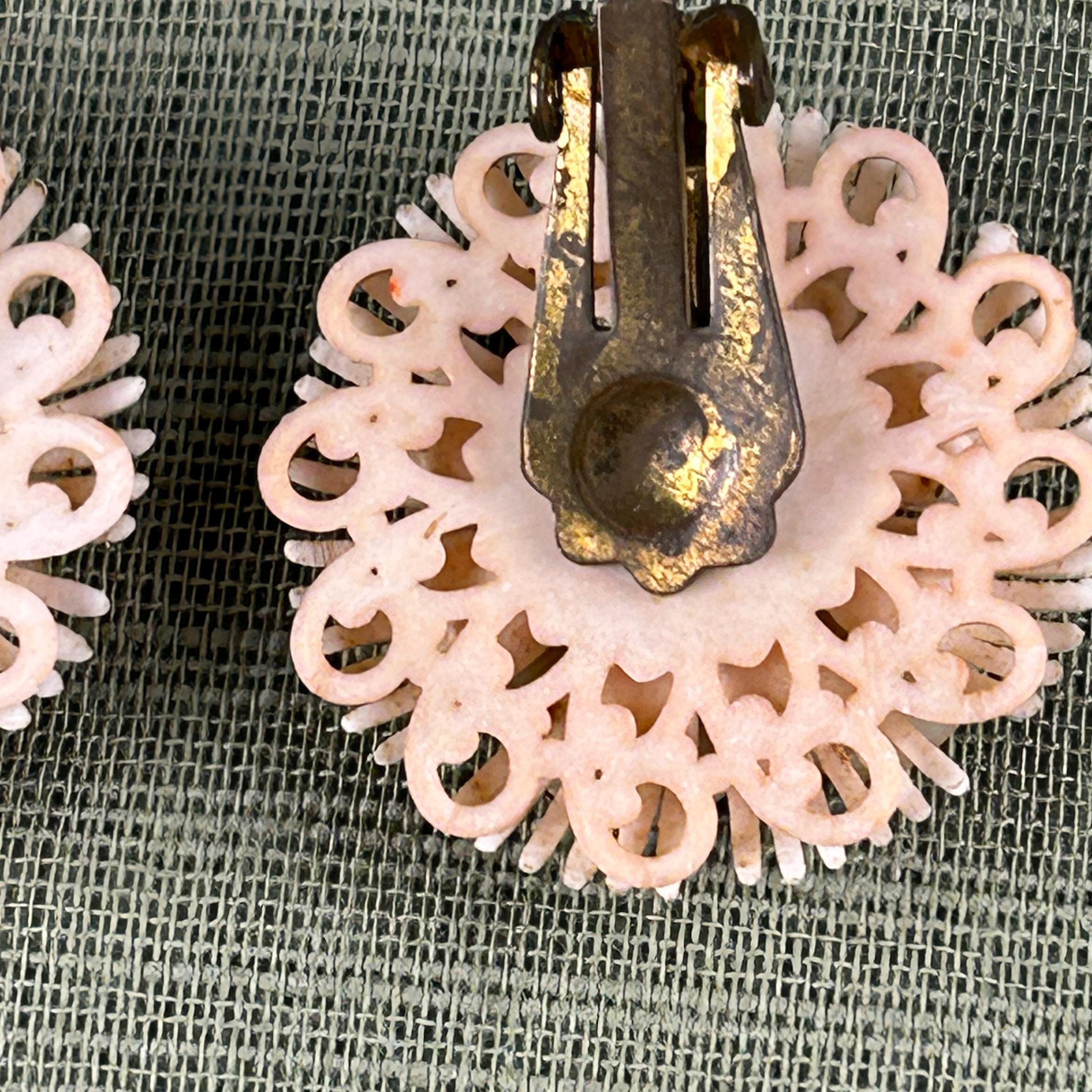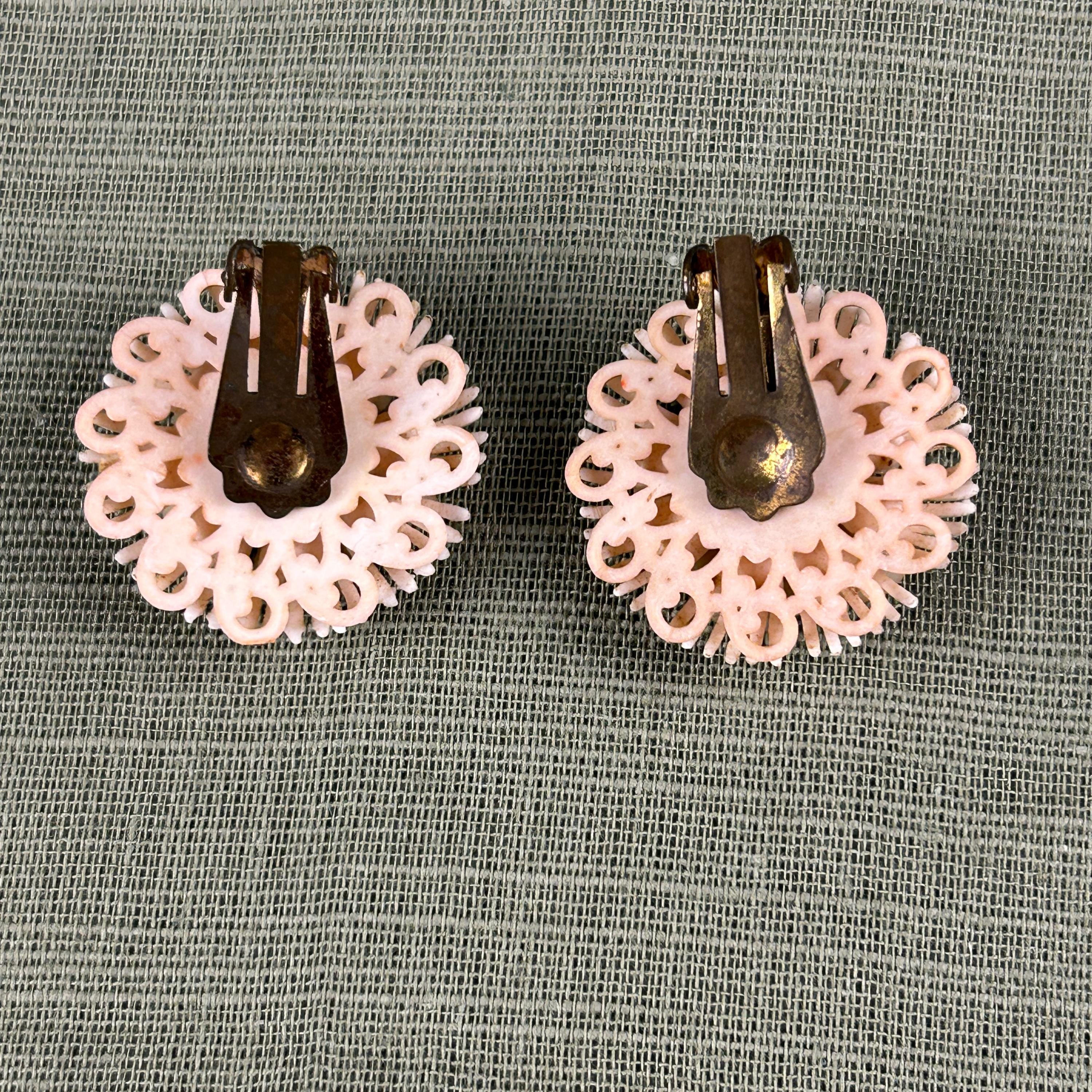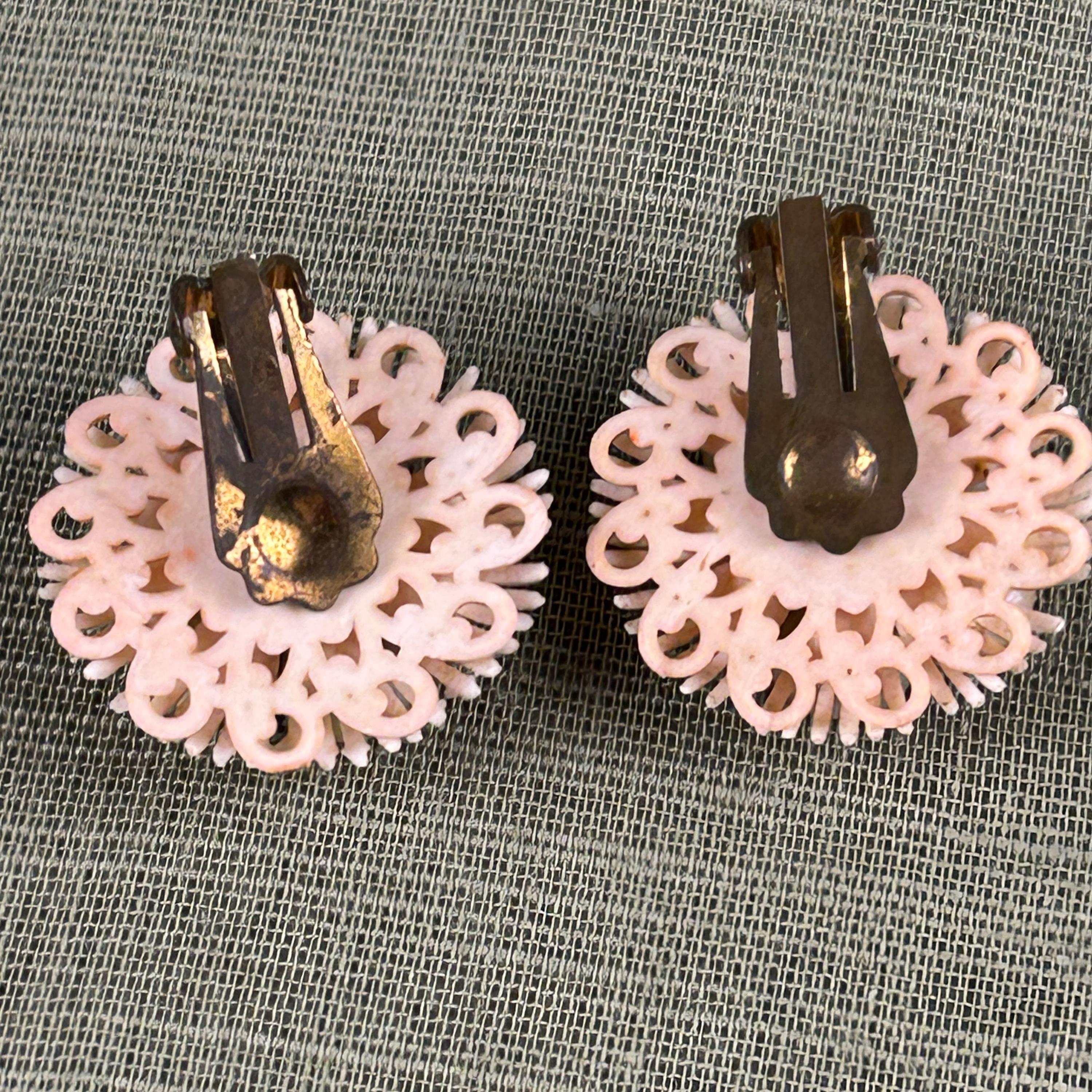 Popular during the 1950s, floral clip-on earrings were a staple of costume jewelry and added a feminine touch to dresses, suits, and evening wear. The comfortable clip-on backs make them easy to wear for anyone without pierced ears.
