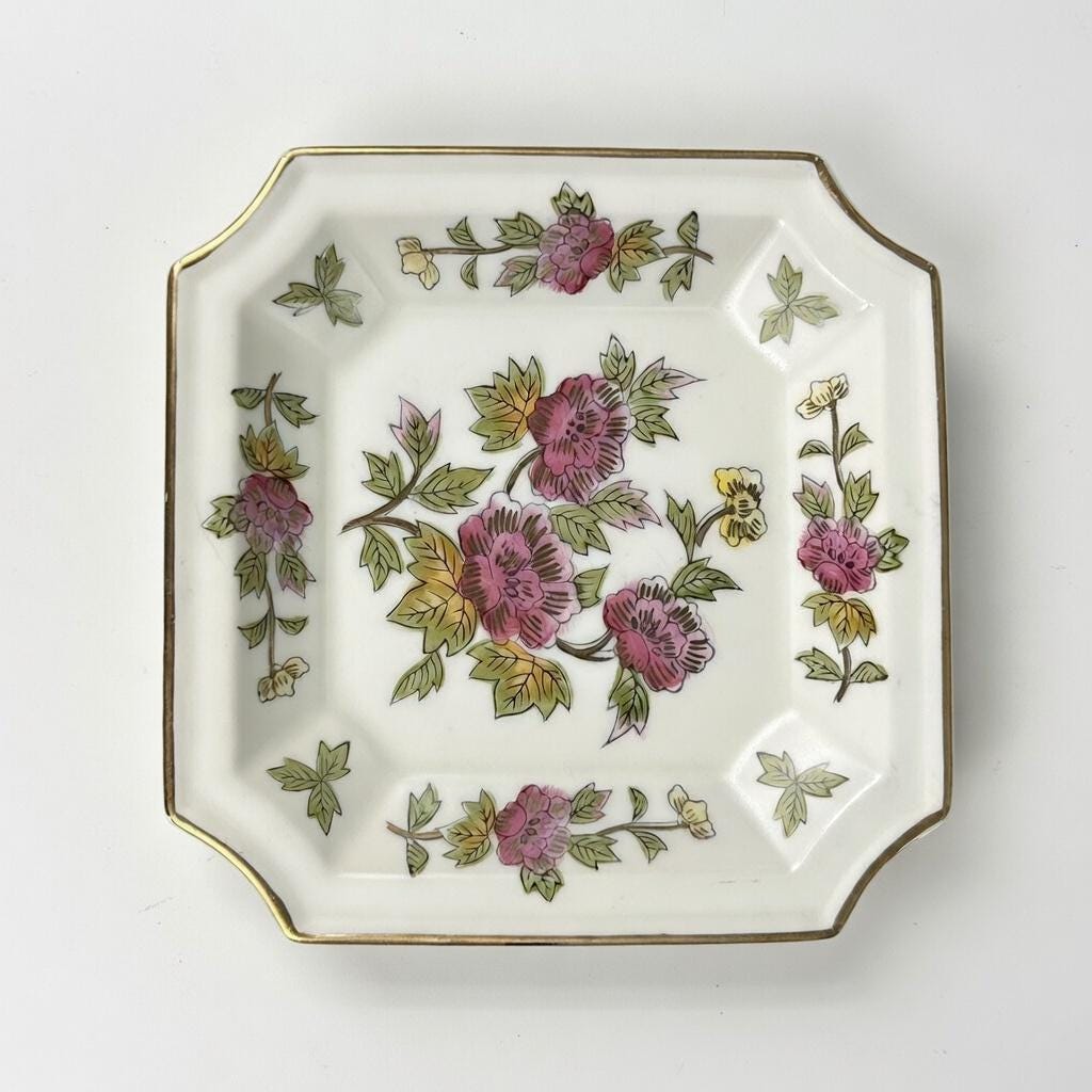 Its small square shape makes it perfect as a trinket dish, jewelry holder, small serving plate, or decorative display piece.