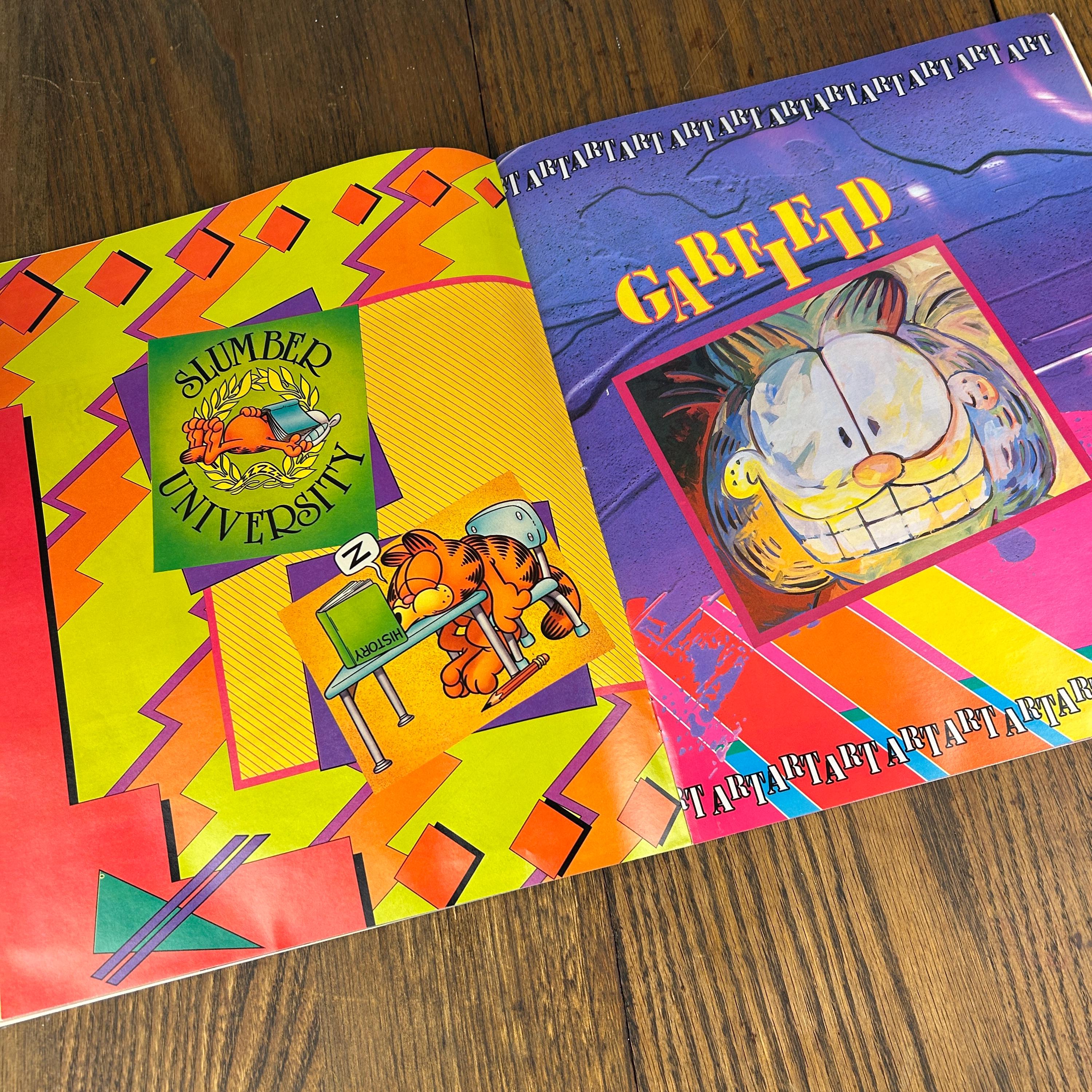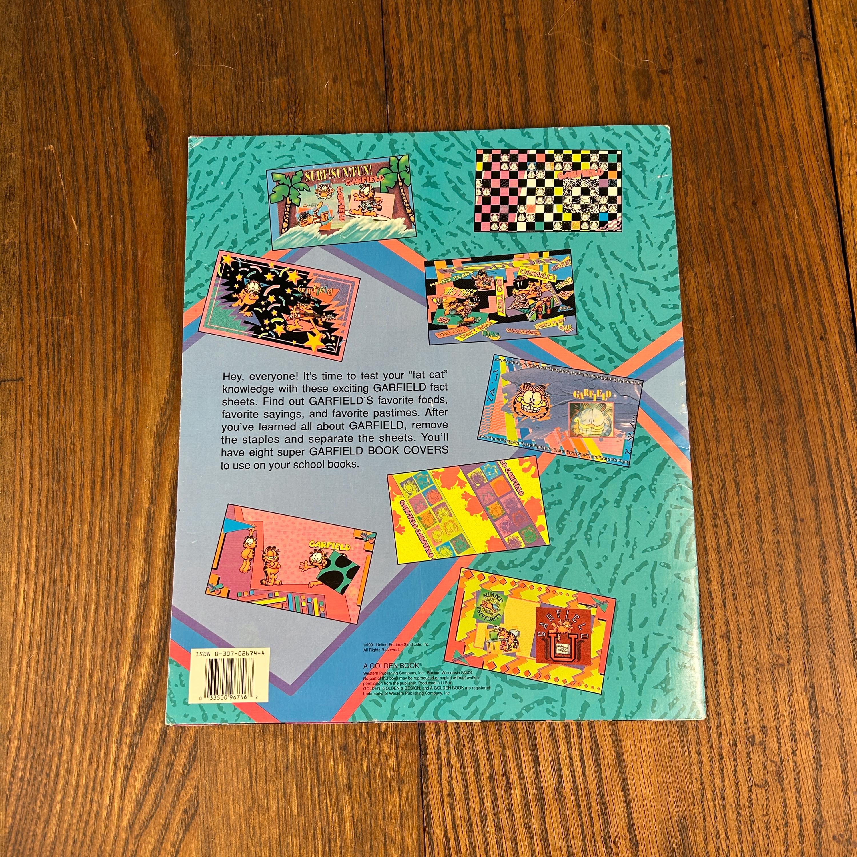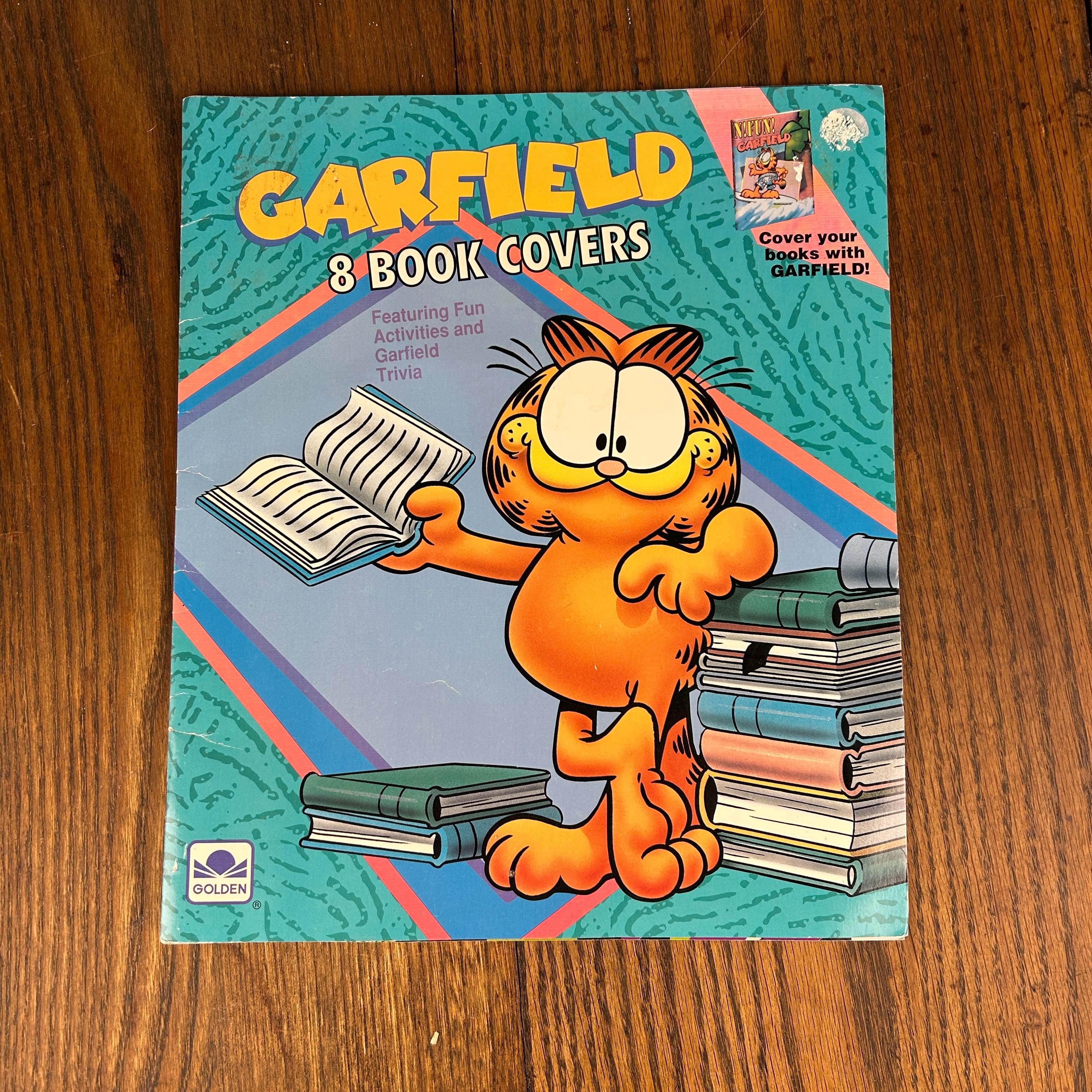 This fun vintage Garfield “8 Book Covers” set was published by Golden Books and likely dates to around 1991. Featuring the beloved comic strip cat Garfield, this collectible set captures the bright, playful style of 1990s school supplies and cartoon memorabilia.