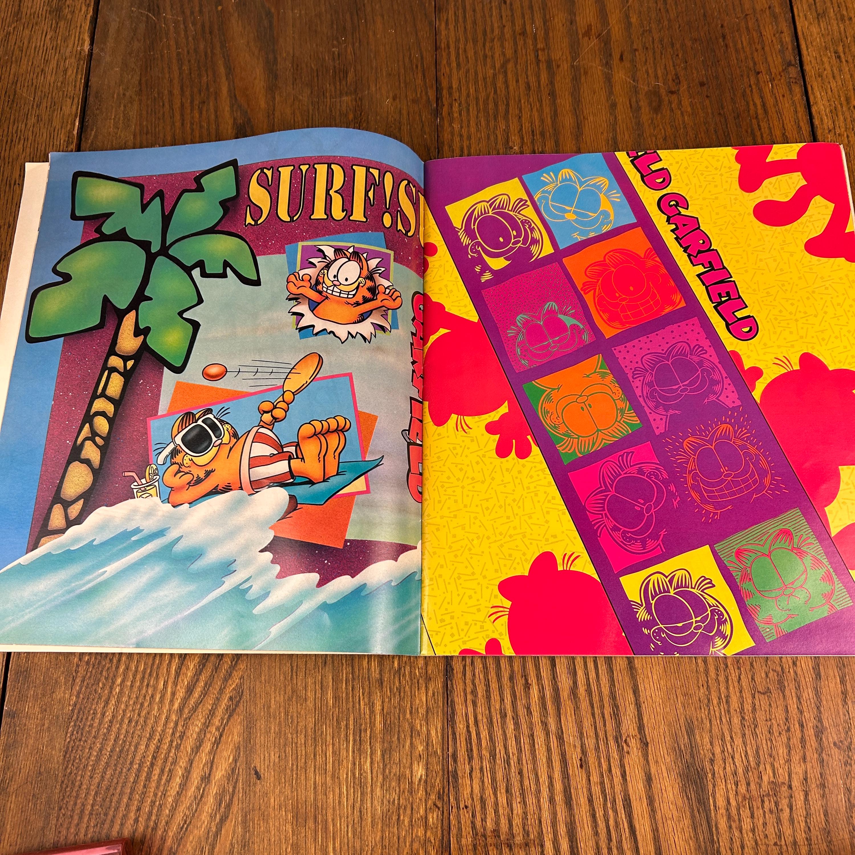 The set includes all 8 book covers, each decorated with Garfield graphics and featuring activities and Garfield trivia for extra fun. These were originally designed to protect school textbooks, but today they make a wonderful nostalgic collectible for fans of Garfield and vintage 90s items.