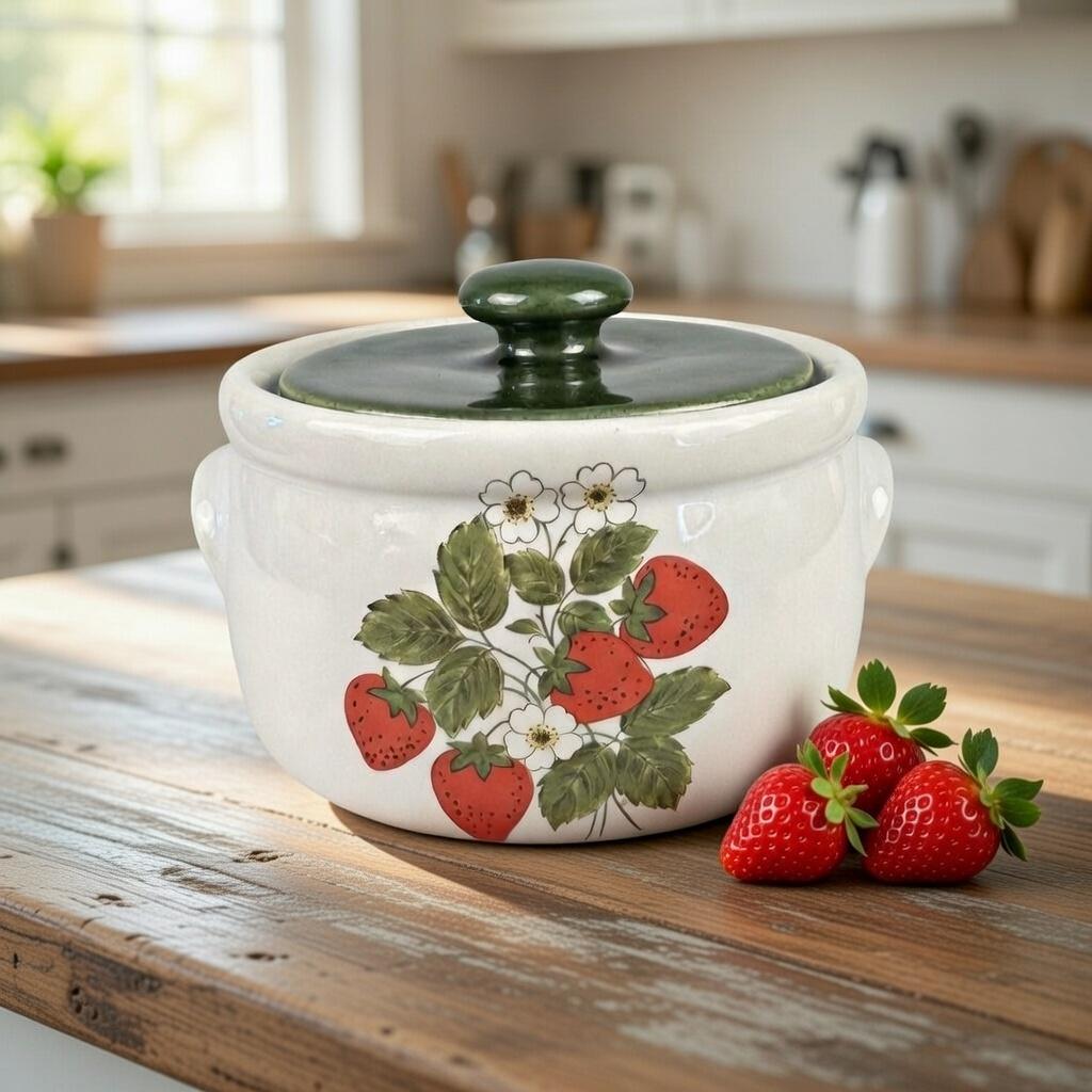 A wonderful collectible for McCoy pottery enthusiasts, strawberry-themed kitchen décor, or vintage farmhouse kitchen displays.