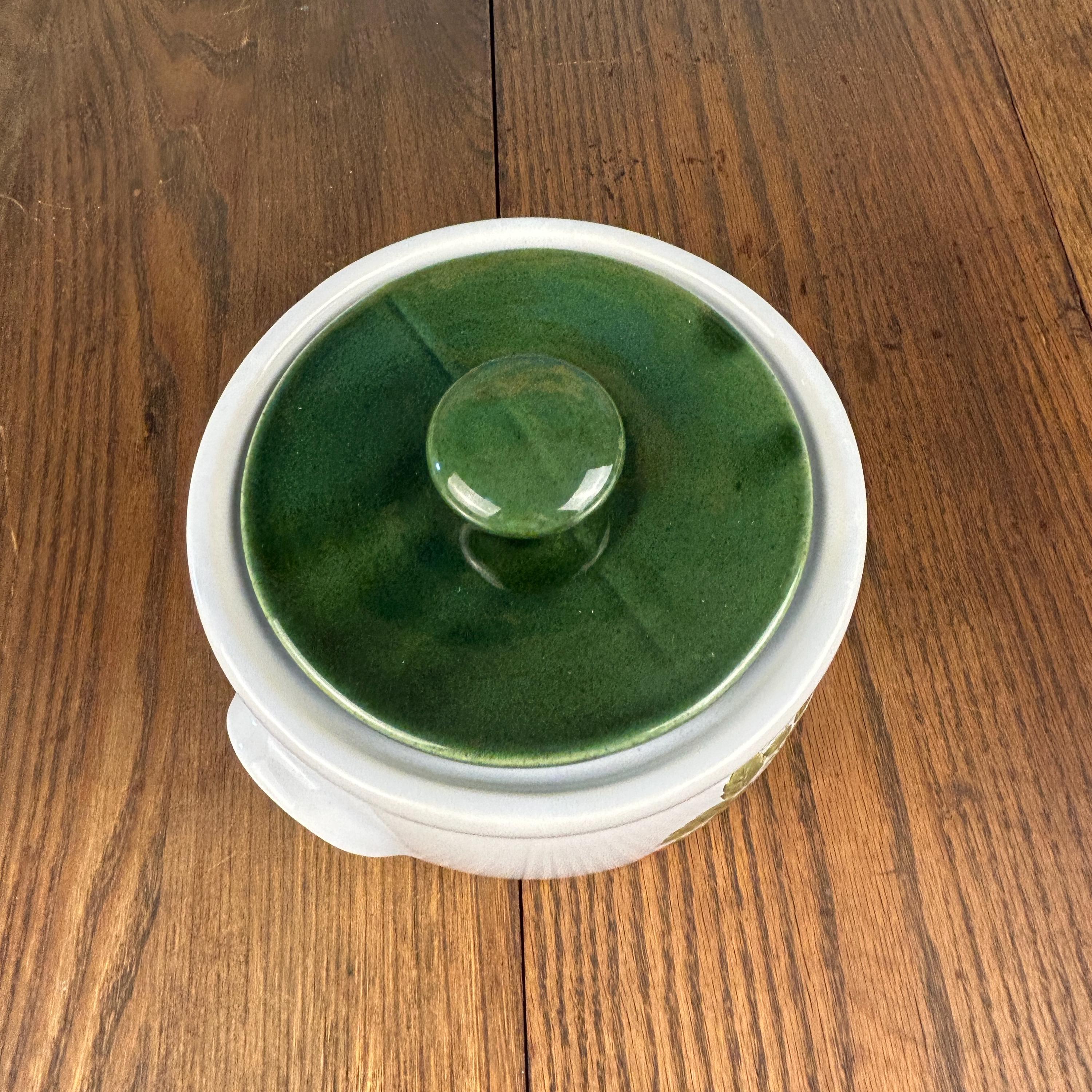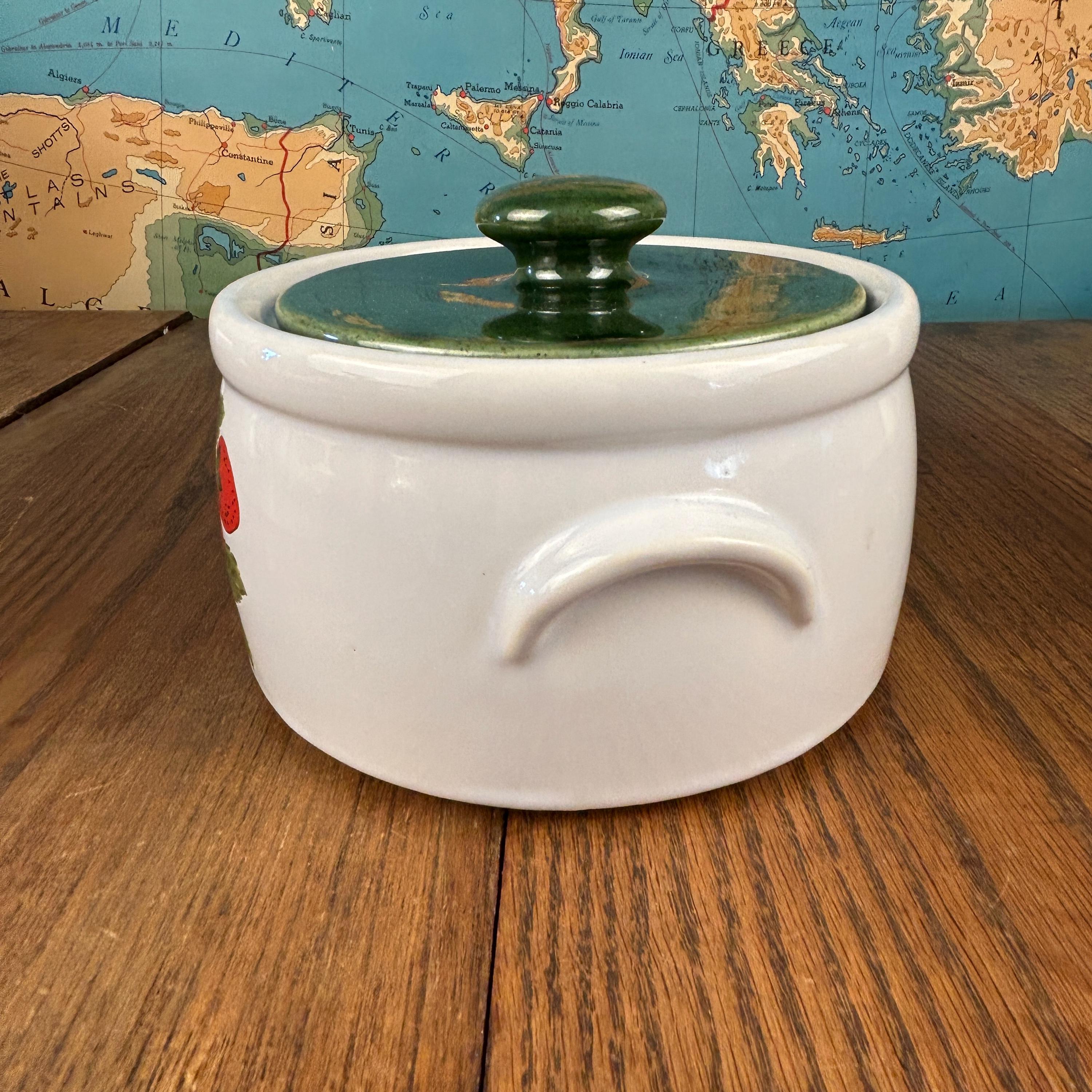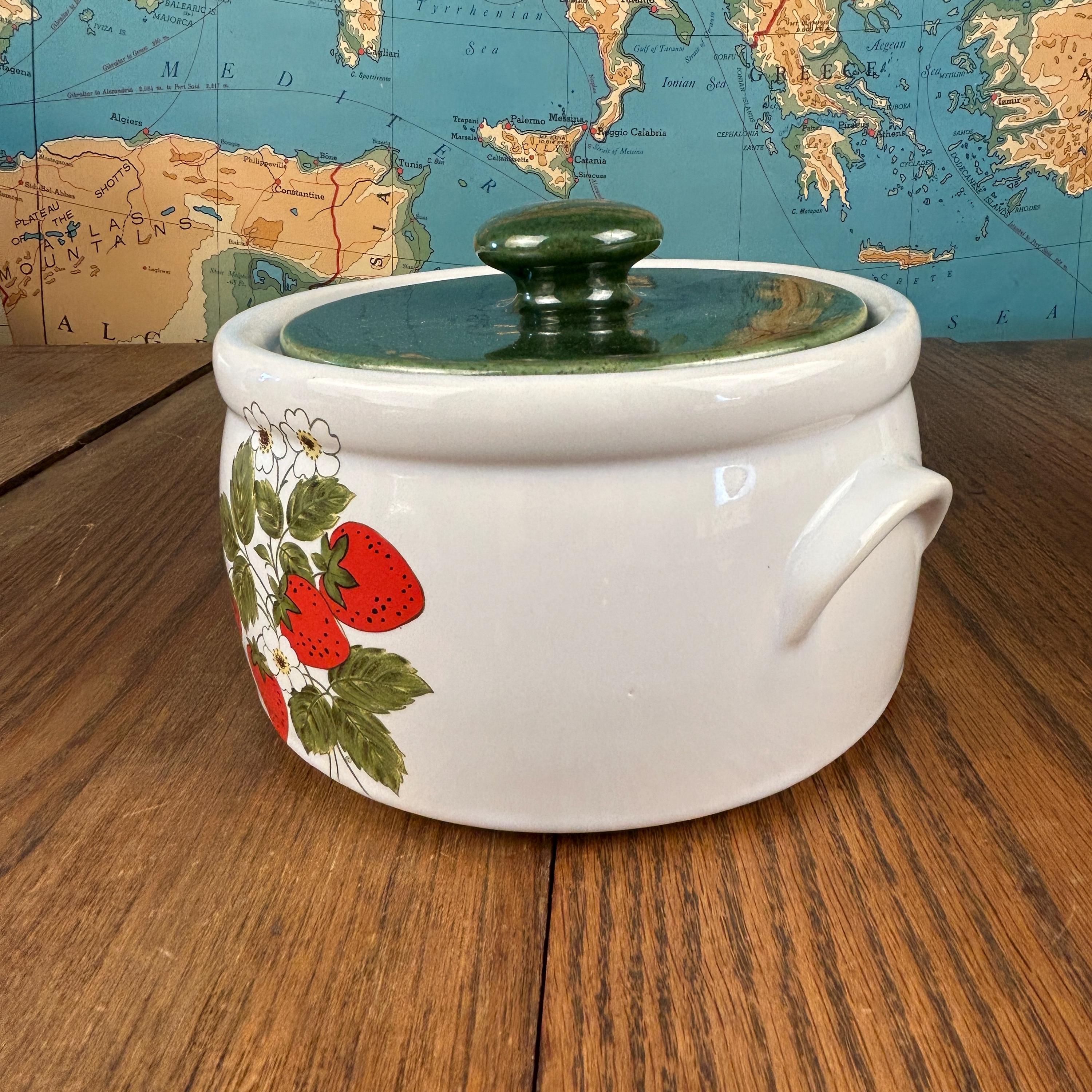 Designed as a 2-quart casserole or bean pot, this piece combines practicality with classic vintage kitchen charm. The cheerful strawberry motif makes it perfect for farmhouse kitchens, cottage décor, or collectors of McCoy pottery.