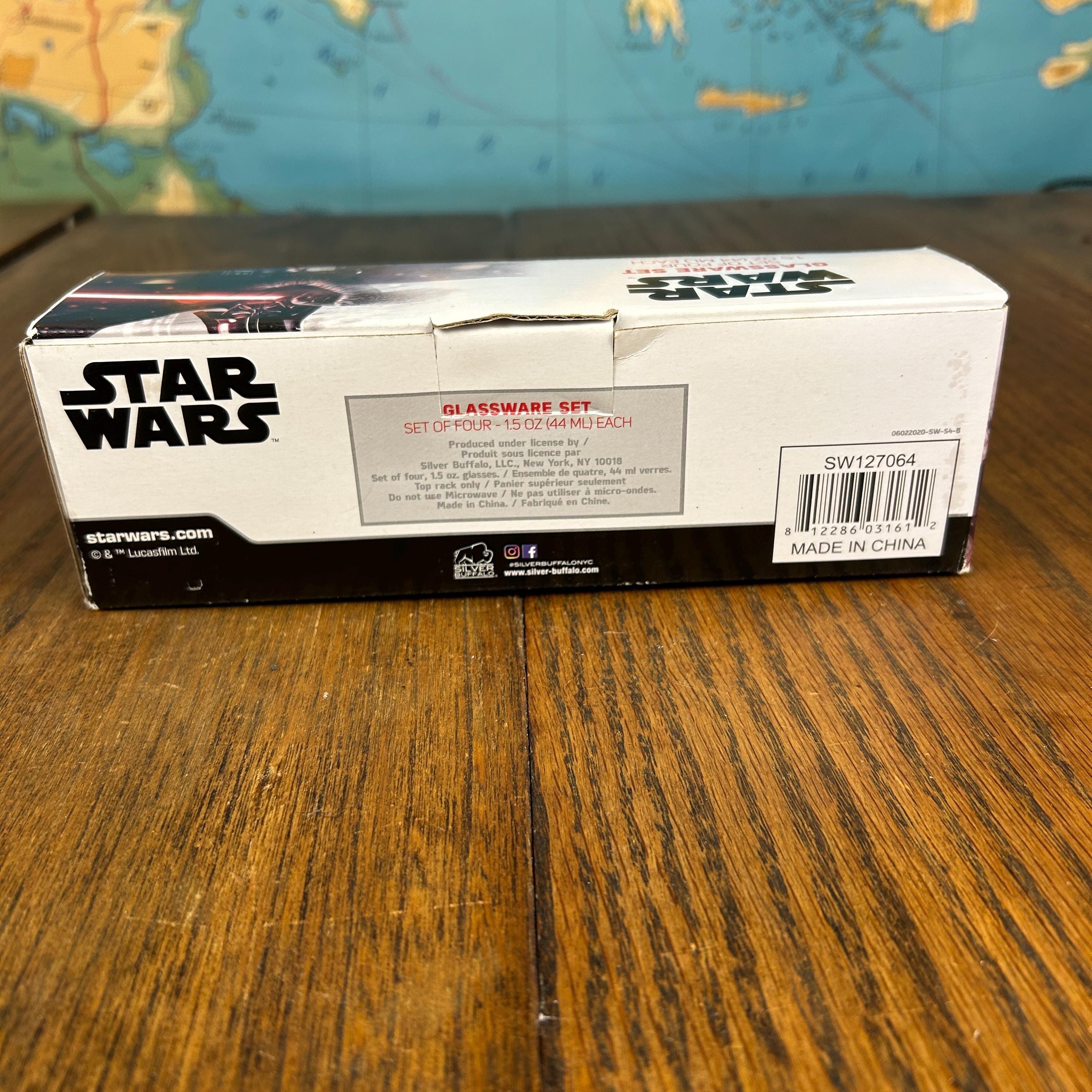 The compact size and vintage-style artwork make these glasses ideal for display, entertaining, or adding to a Star Wars memorabilia collection. They also make a great gift for Star Wars fans, collectors, or retro pop culture enthusiasts.