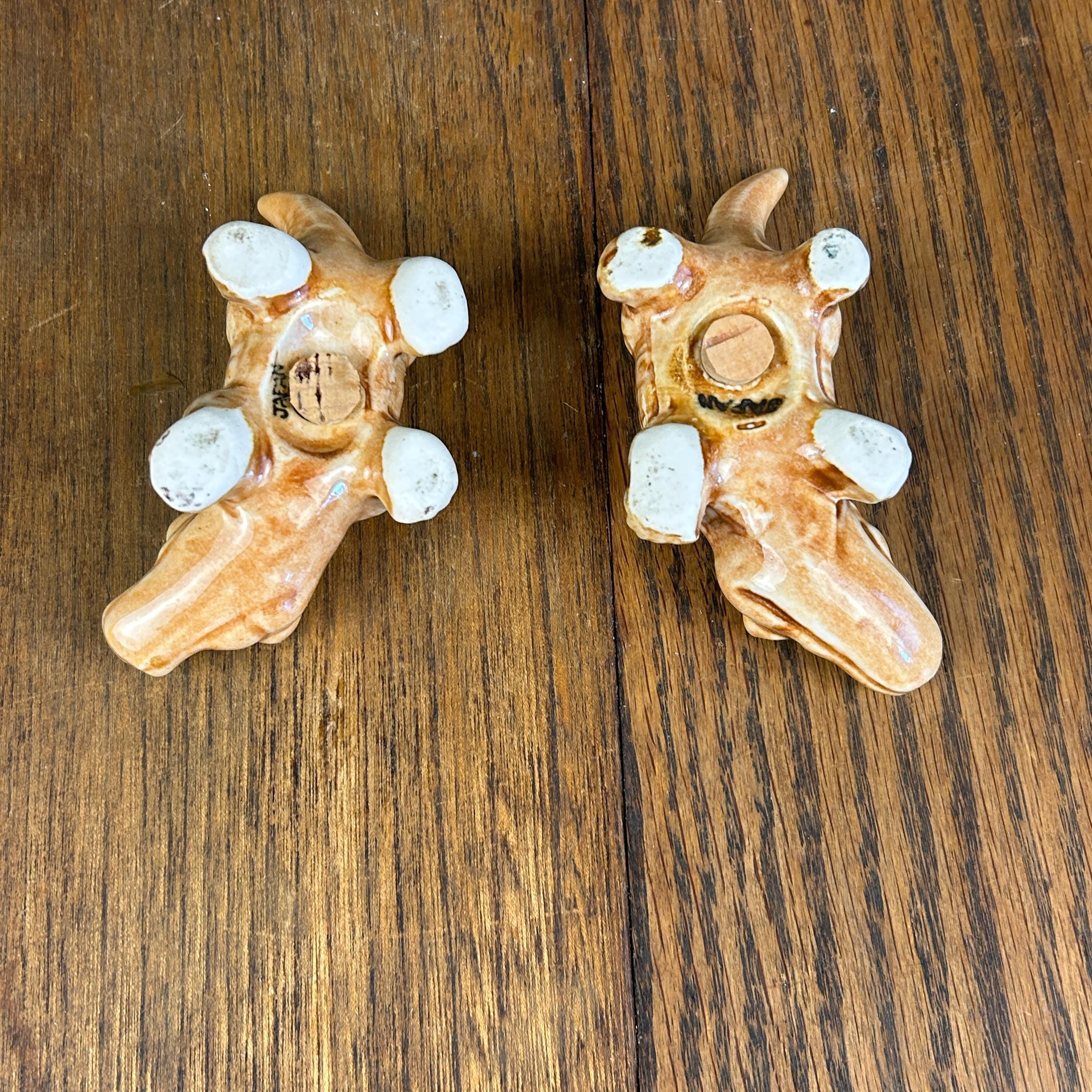The shakers retain their original cork stoppers, making them both collectible and functional if desired. Their small size also makes them perfect for display in a retro kitchen, curio cabinet, or kitschy décor collection.