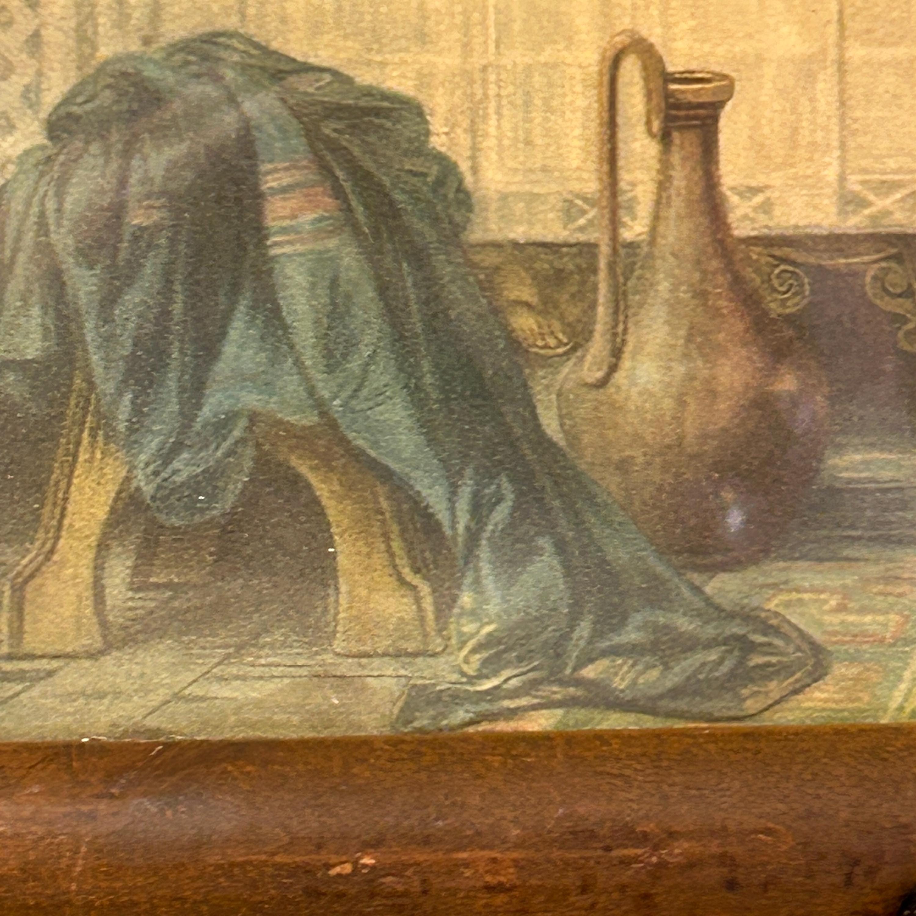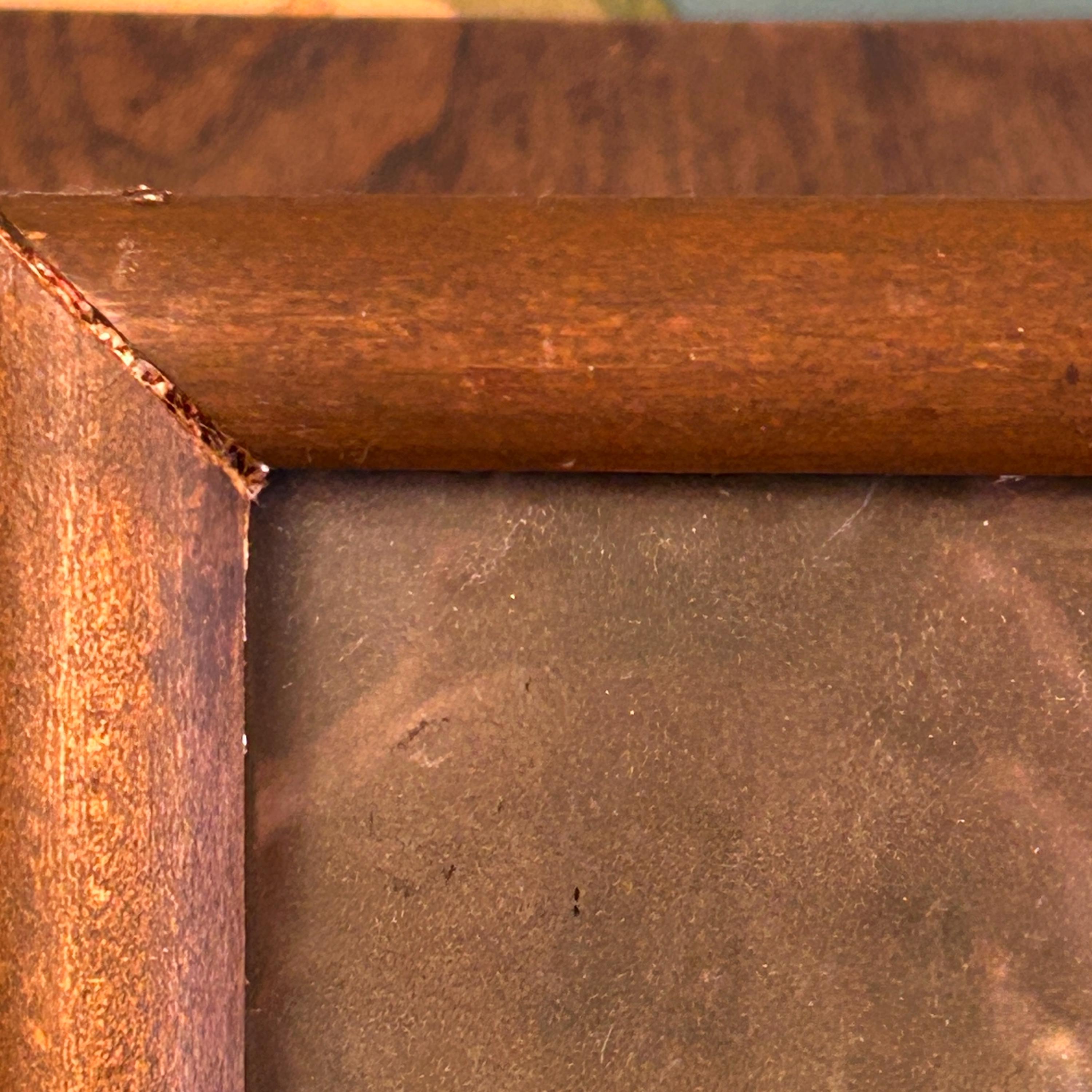 Very good antique condition. The lithograph shows no stains or cracks. The wooden frame is also in good shape, and the print is secured in the frame with old nails, consistent with its age. Please review photos as they are part of the description.