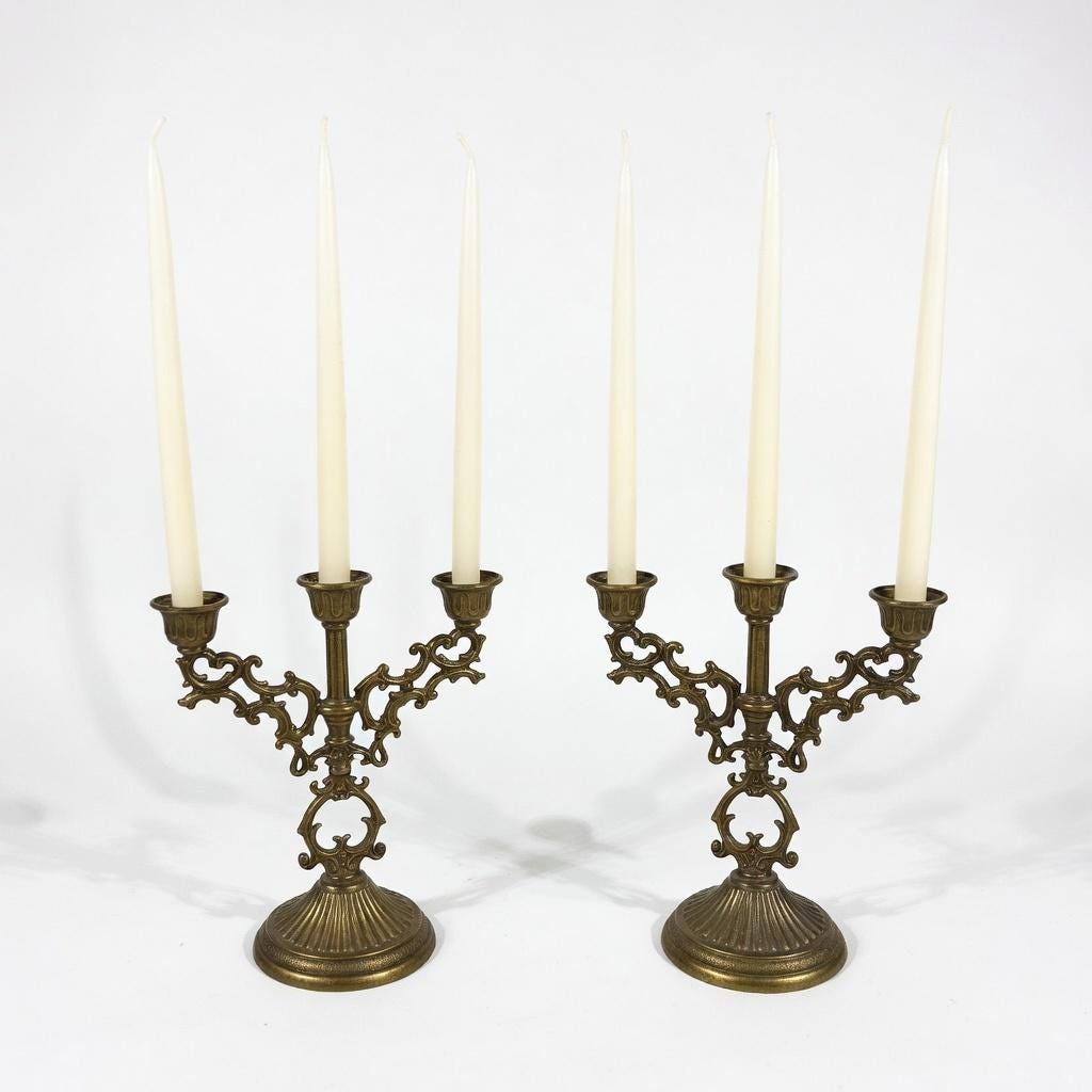 • Design: Ornate with three candle arms per piece