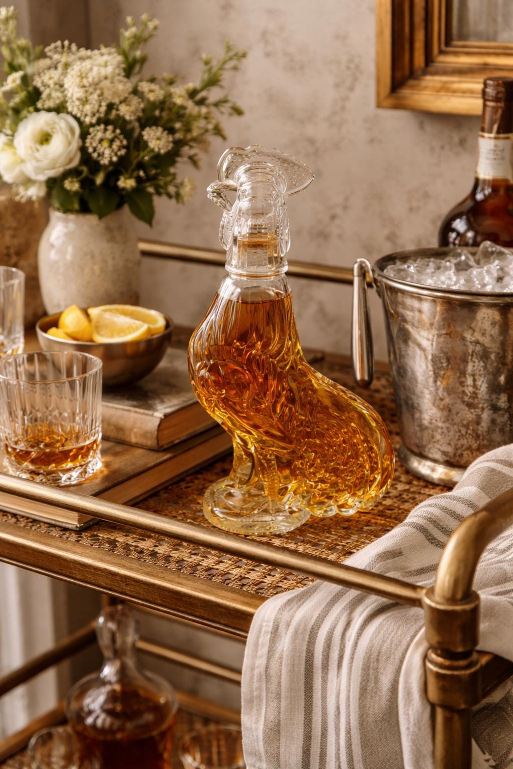 Its playful design makes it a great conversation piece and a unique addition to any vintage barware or farmhouse collection.