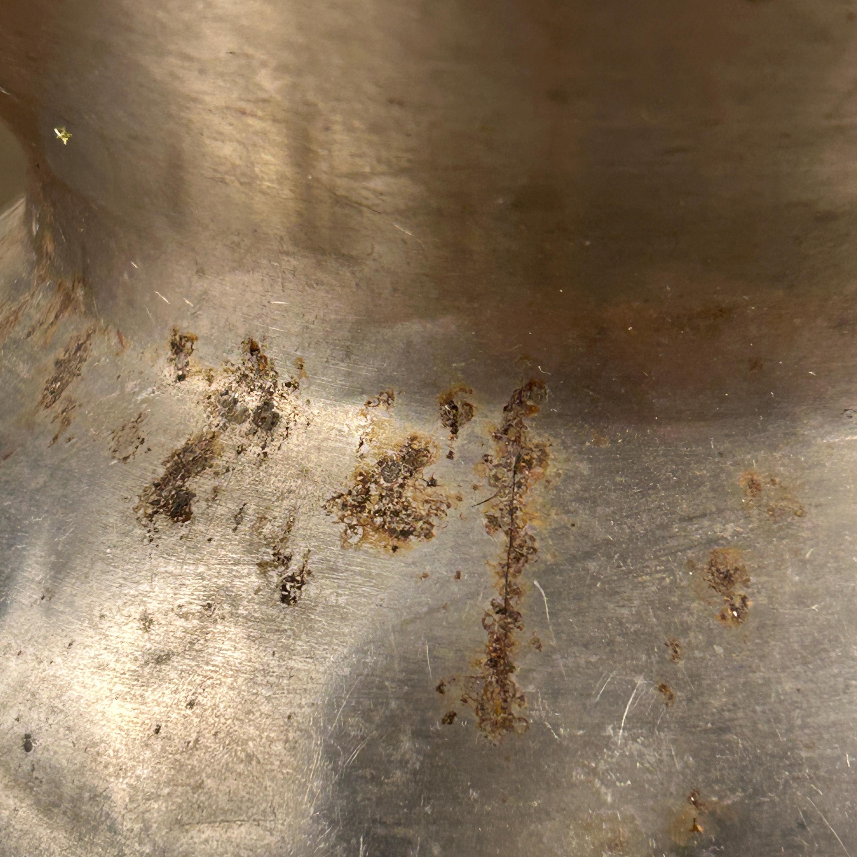 Its worn surface, with scuffs, stains, and minor dents, adds authentic vintage character and makes it a perfect piece for rustic, farmhouse, or industrial styling.