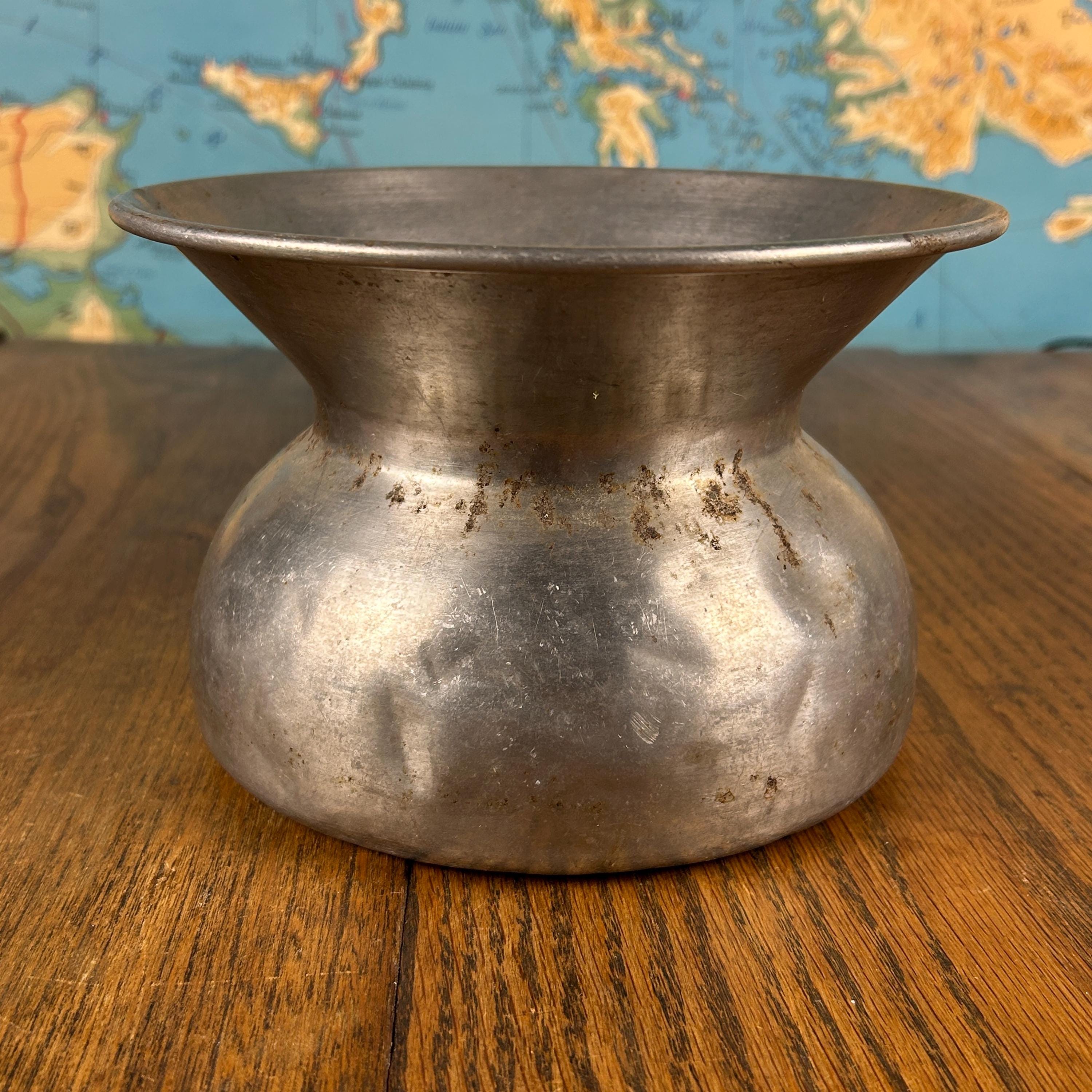 This unique vintage aluminum spittoon or pot, possibly by Diamond Brand and made in Thailand, offers a rustic industrial look that works beautifully in today’s décor.