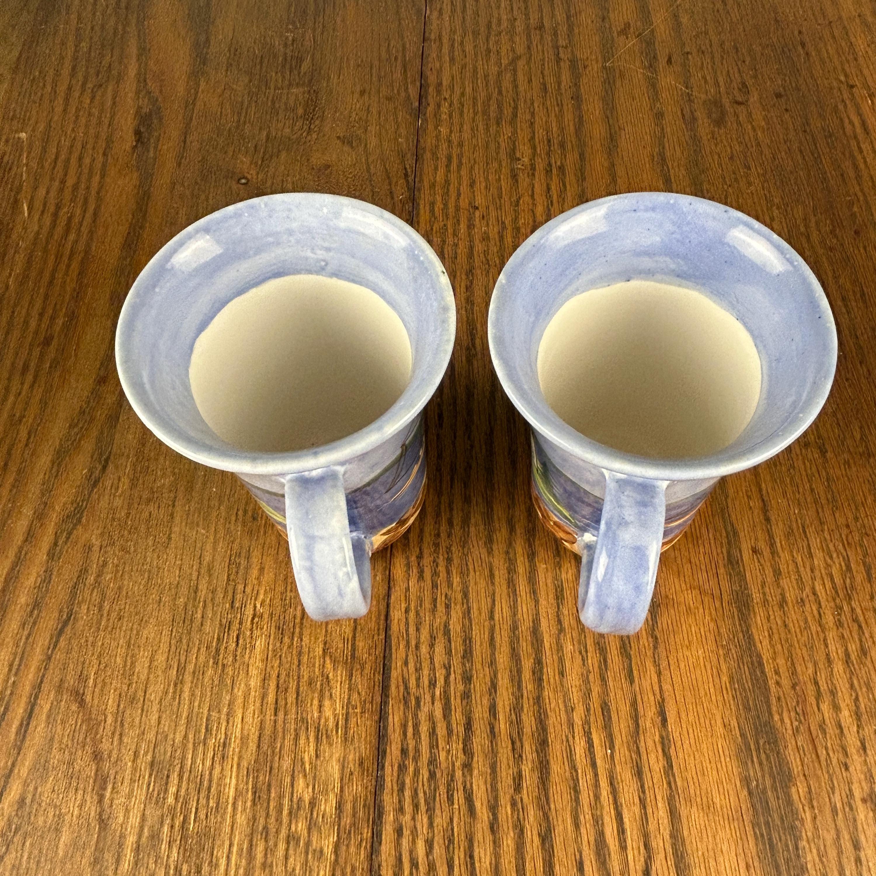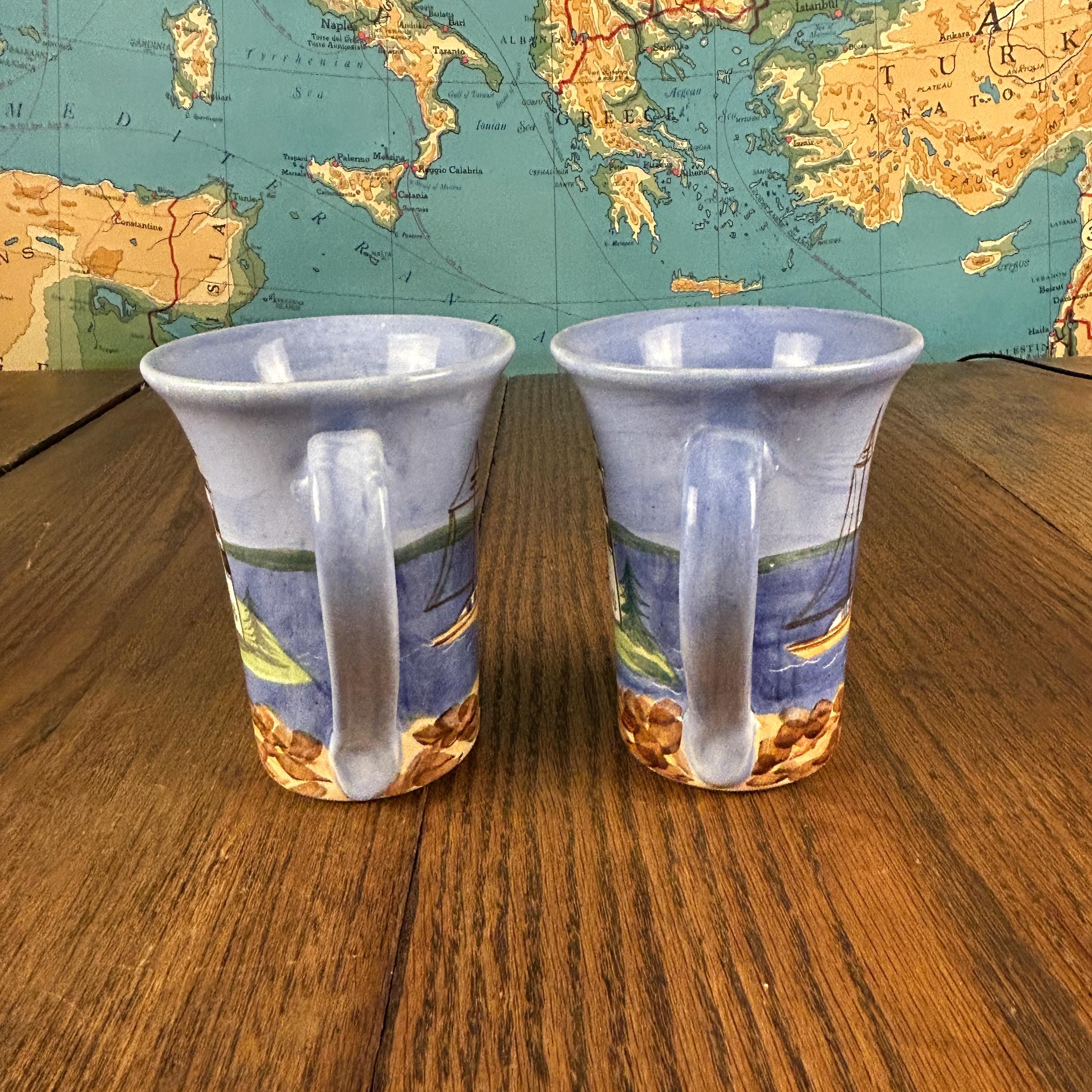 Crafted from durable stoneware and made in the USA, each mug showcases unique hand-painted details, making them both functional and artistic. Shard Pottery is known for its coastal themes and quality craftsmanship, making these mugs highly desirable for collectors.