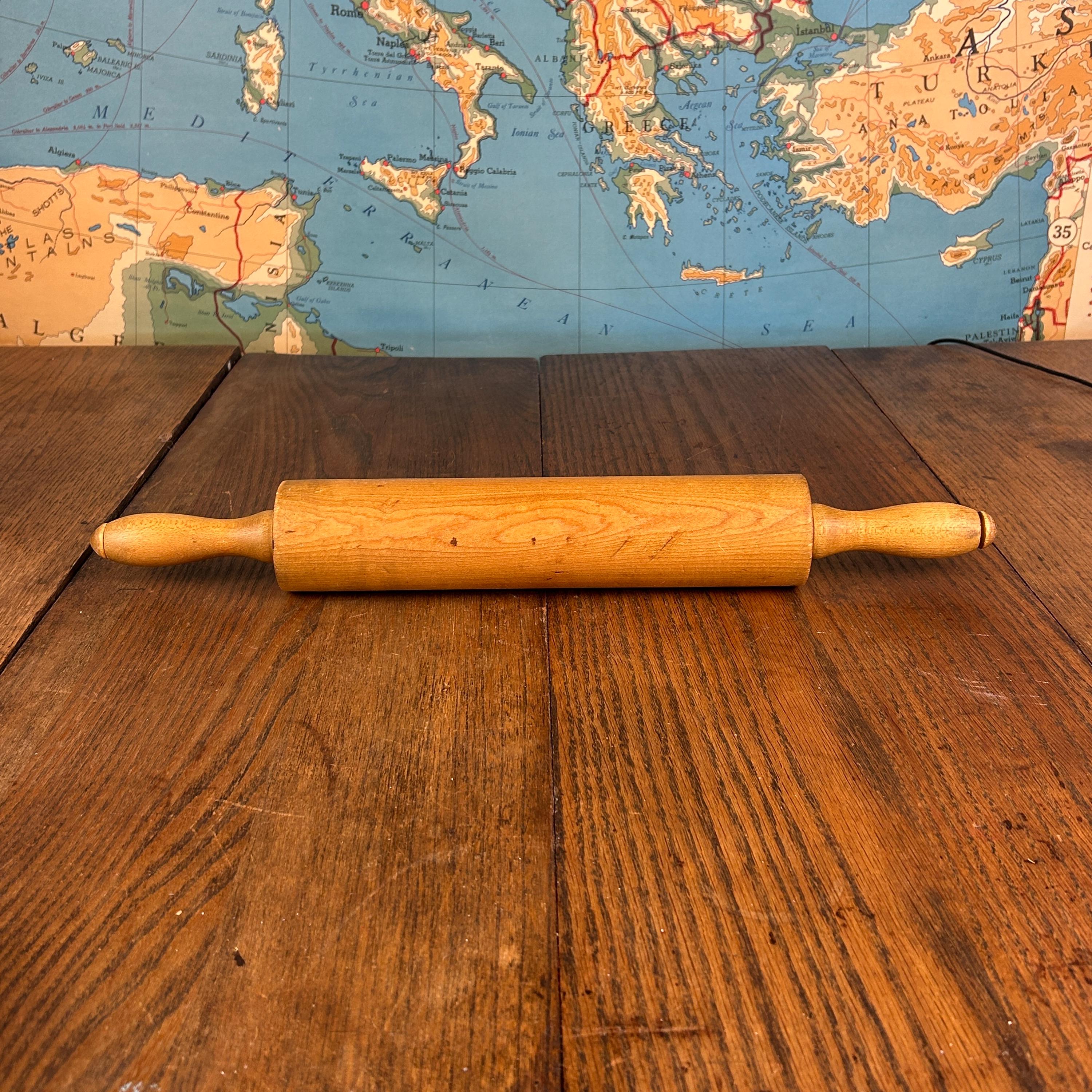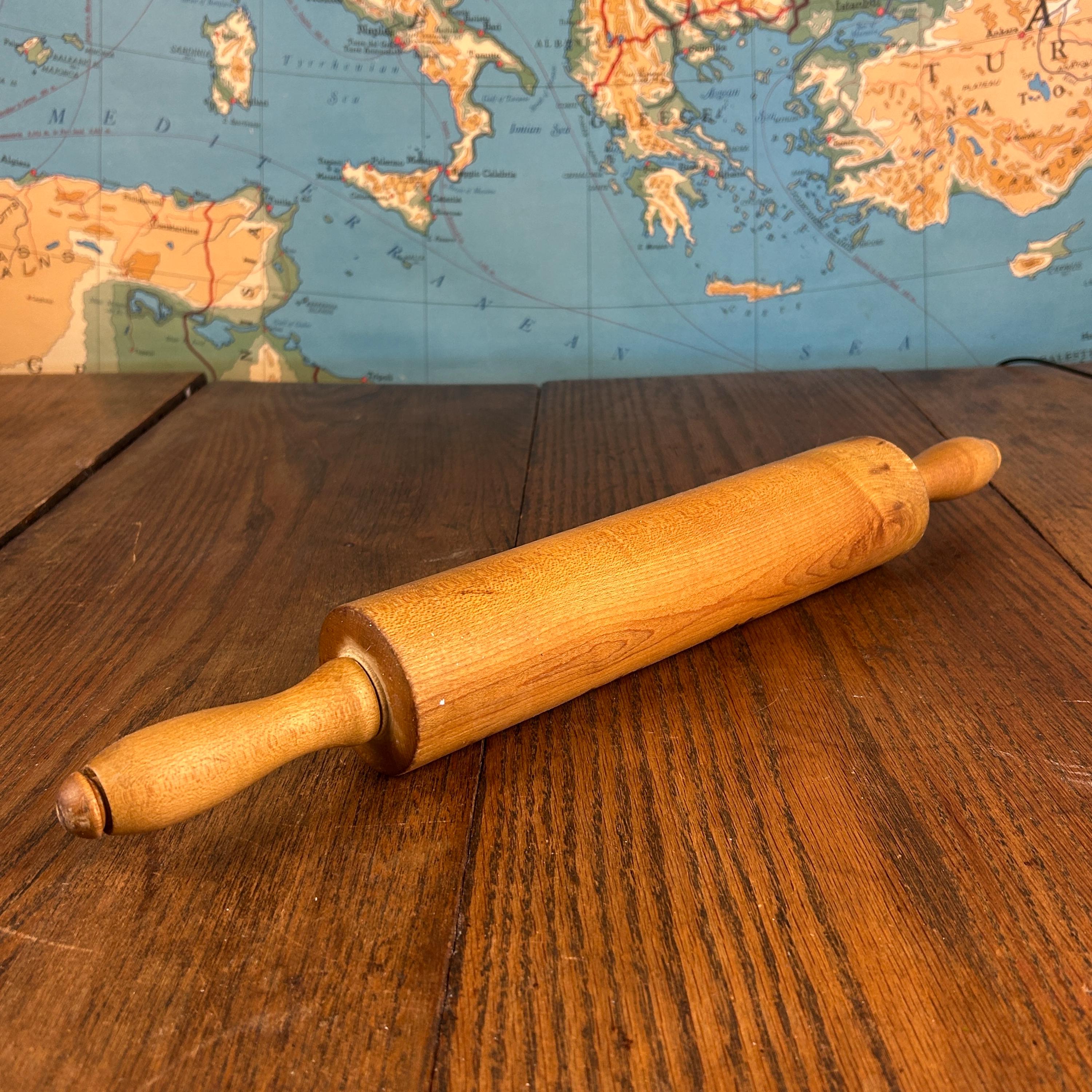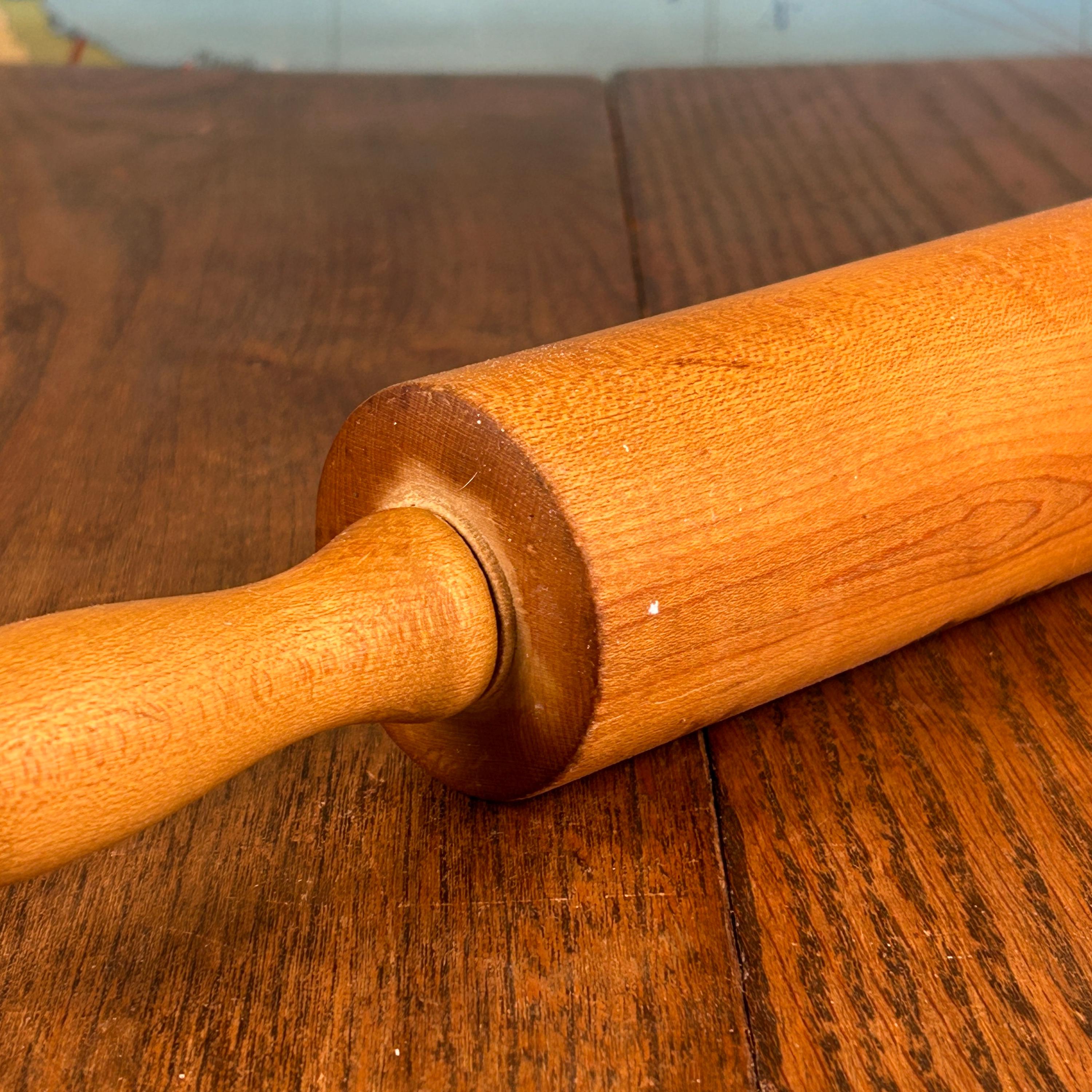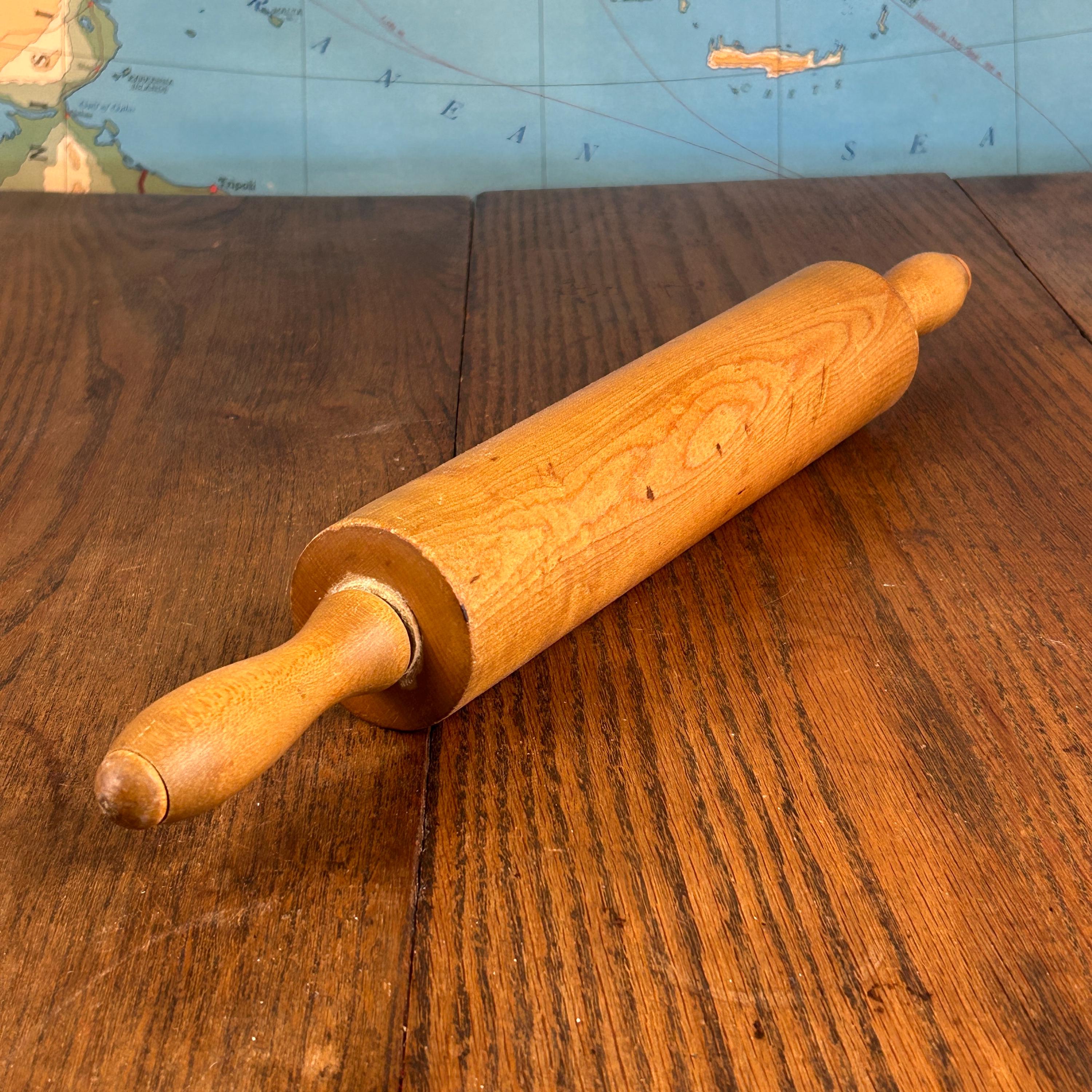 This classic vintage wooden rolling pin features traditional wooden handles and a timeless design that brings warmth and character to any kitchen.