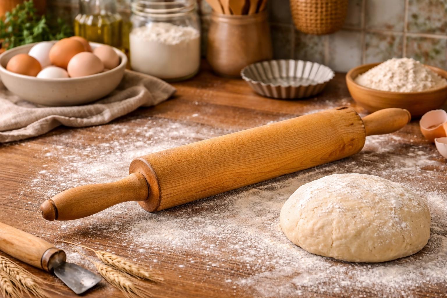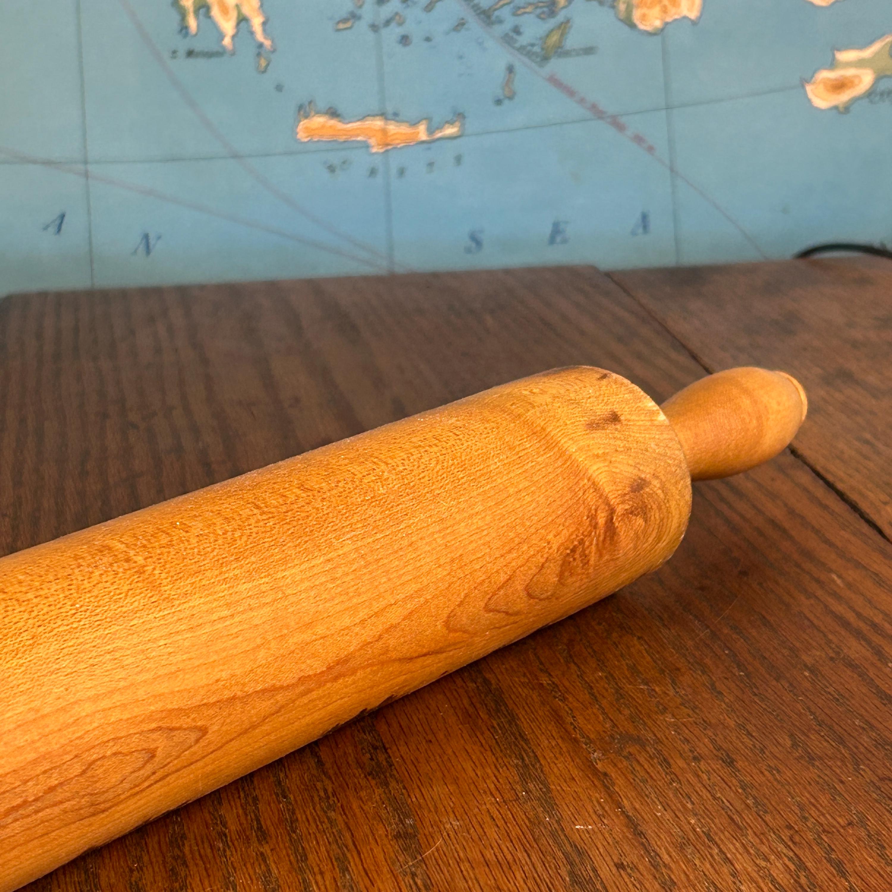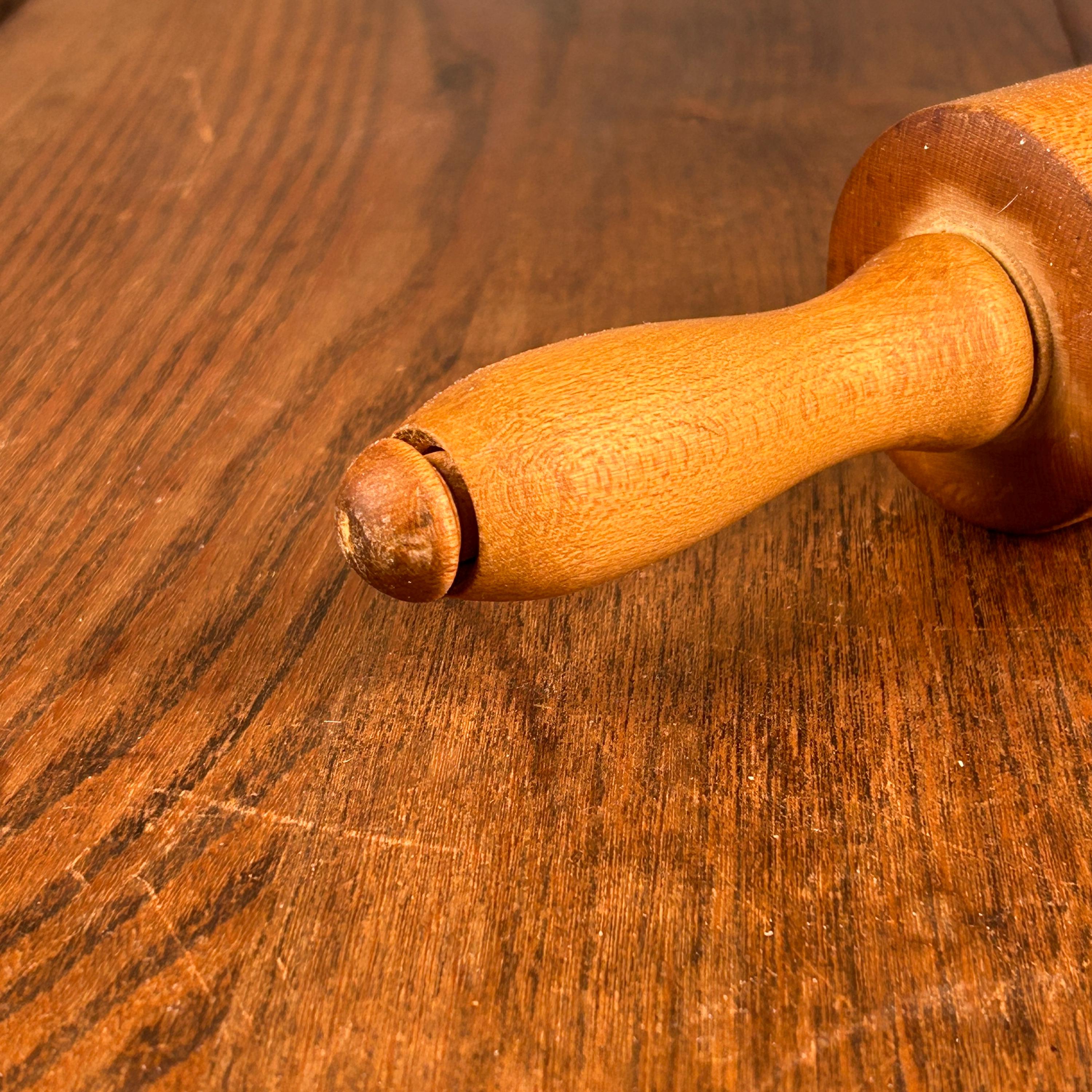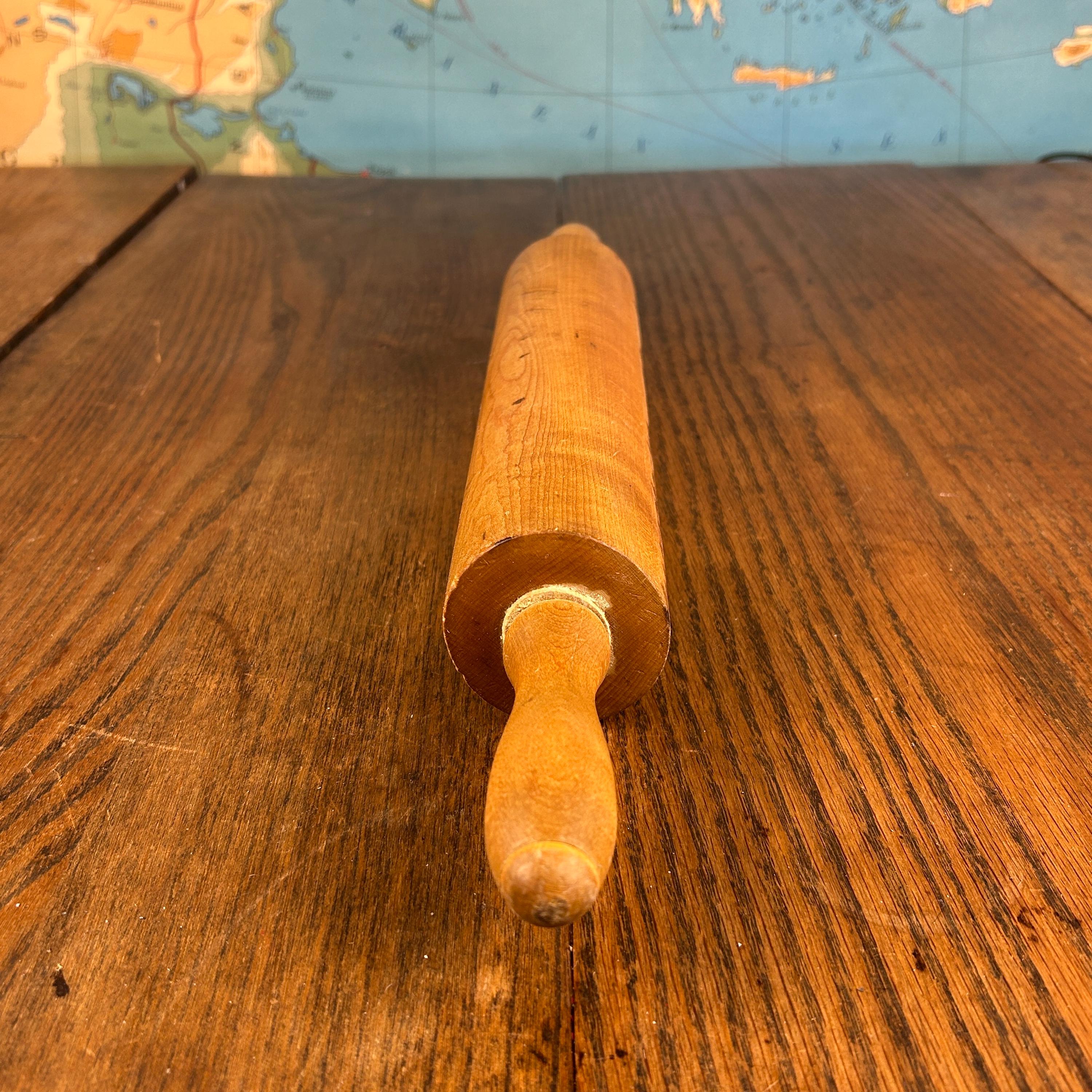 This classic vintage wooden rolling pin features traditional wooden handles and a timeless design that brings warmth and character to any kitchen.