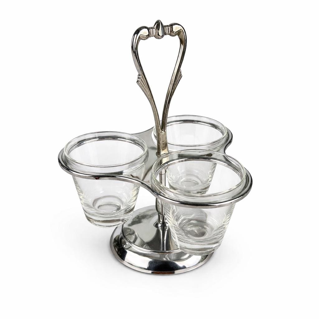 • Material: Chrome-coated metal frame with glass bowls