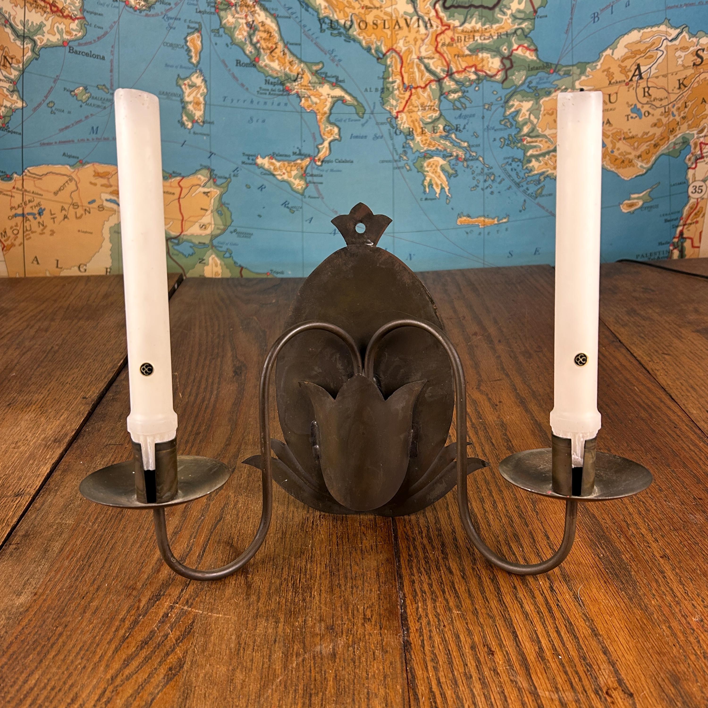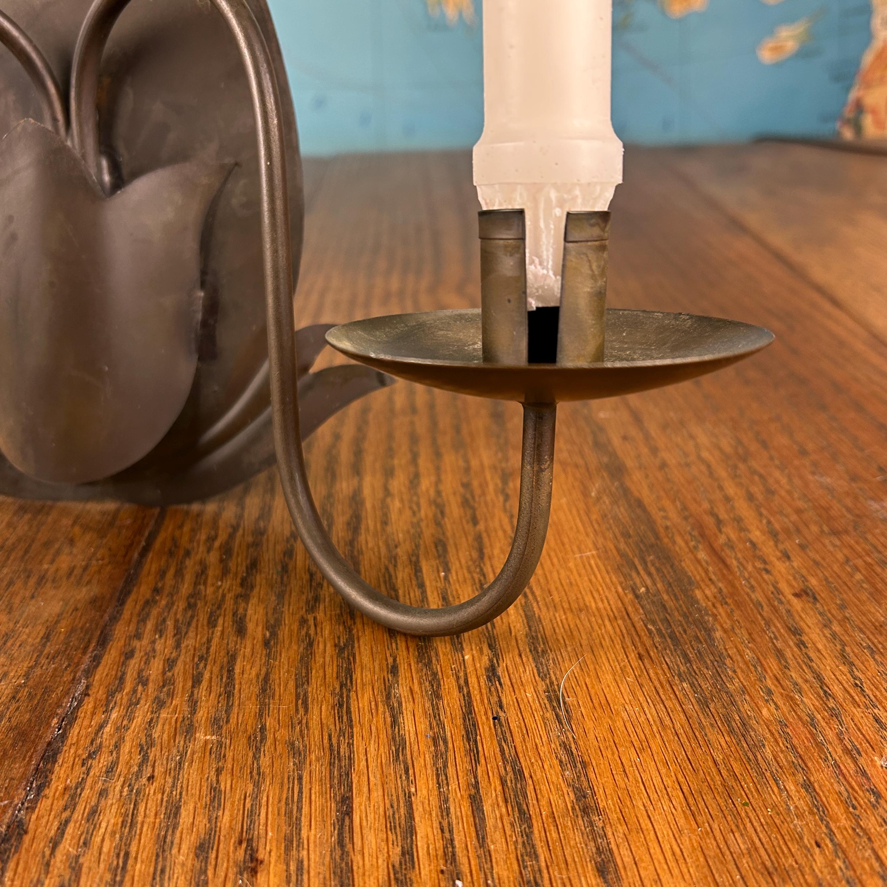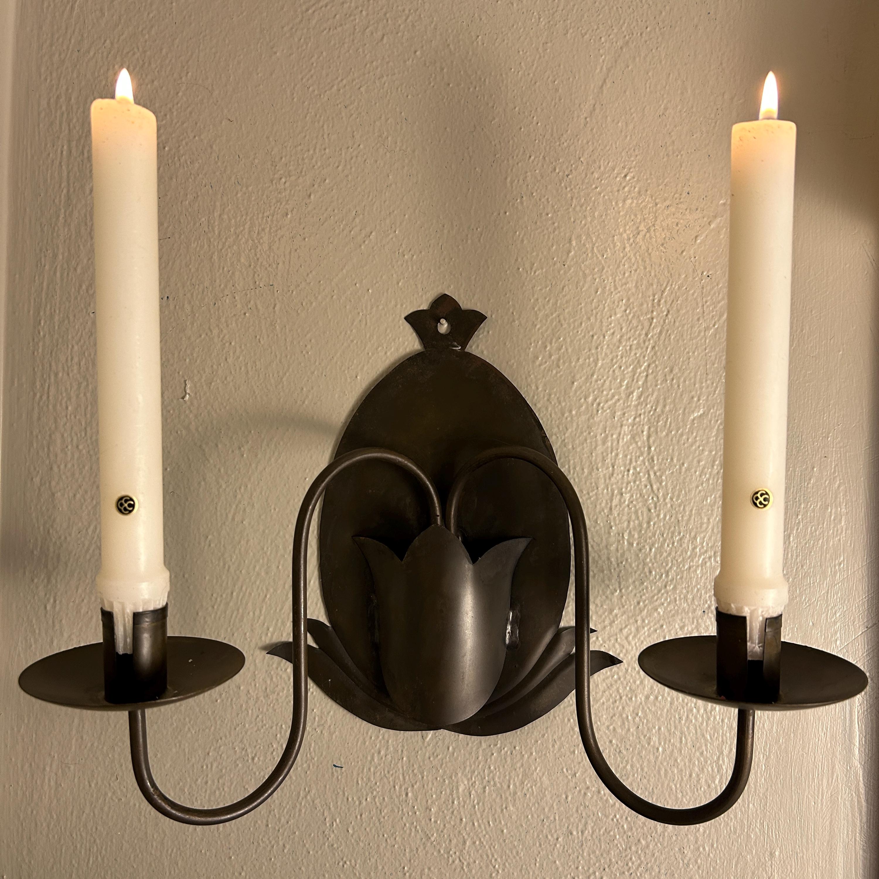This stunning wall sconce is a beautifully crafted, hand-forged iron piece inspired by 18th-century Flemish design.