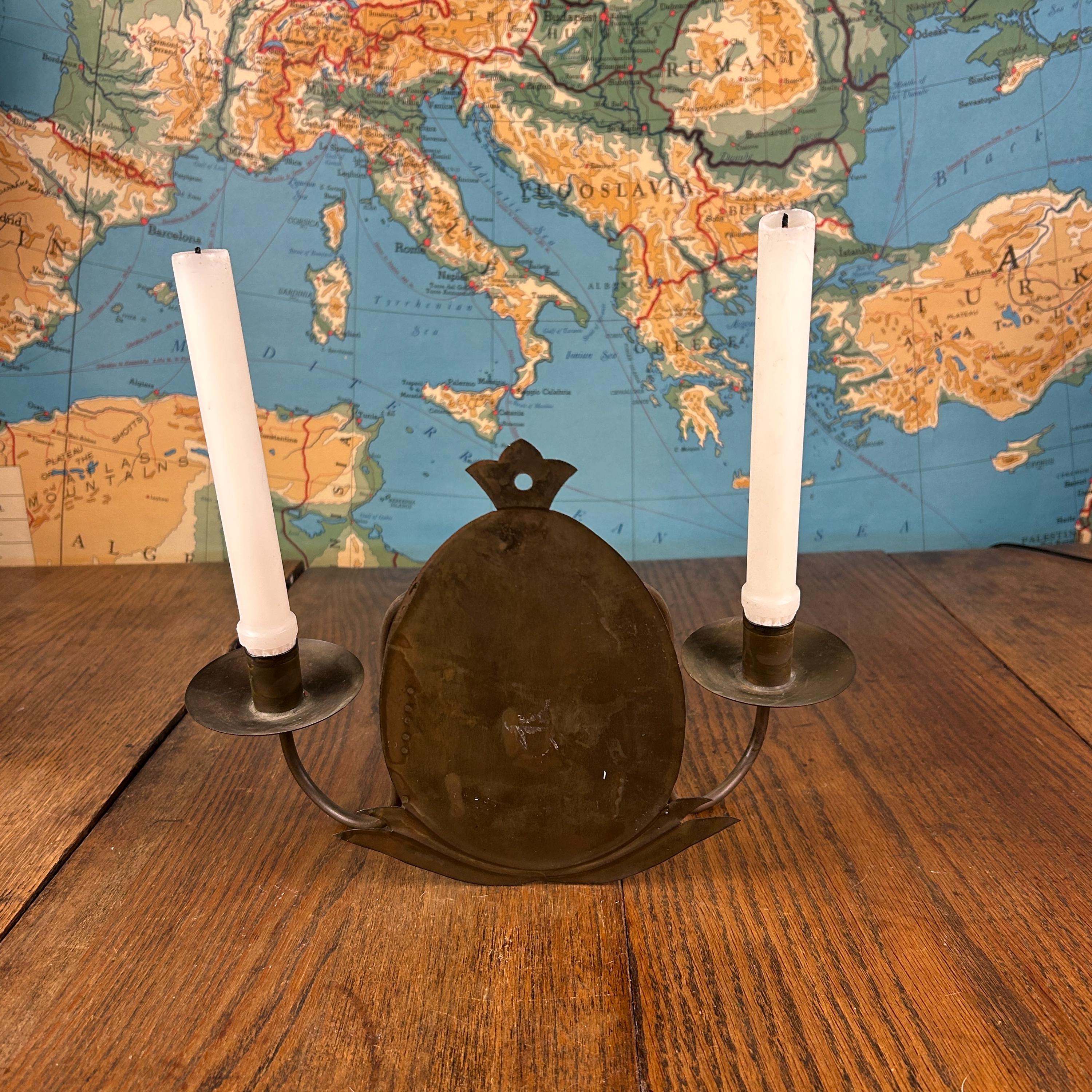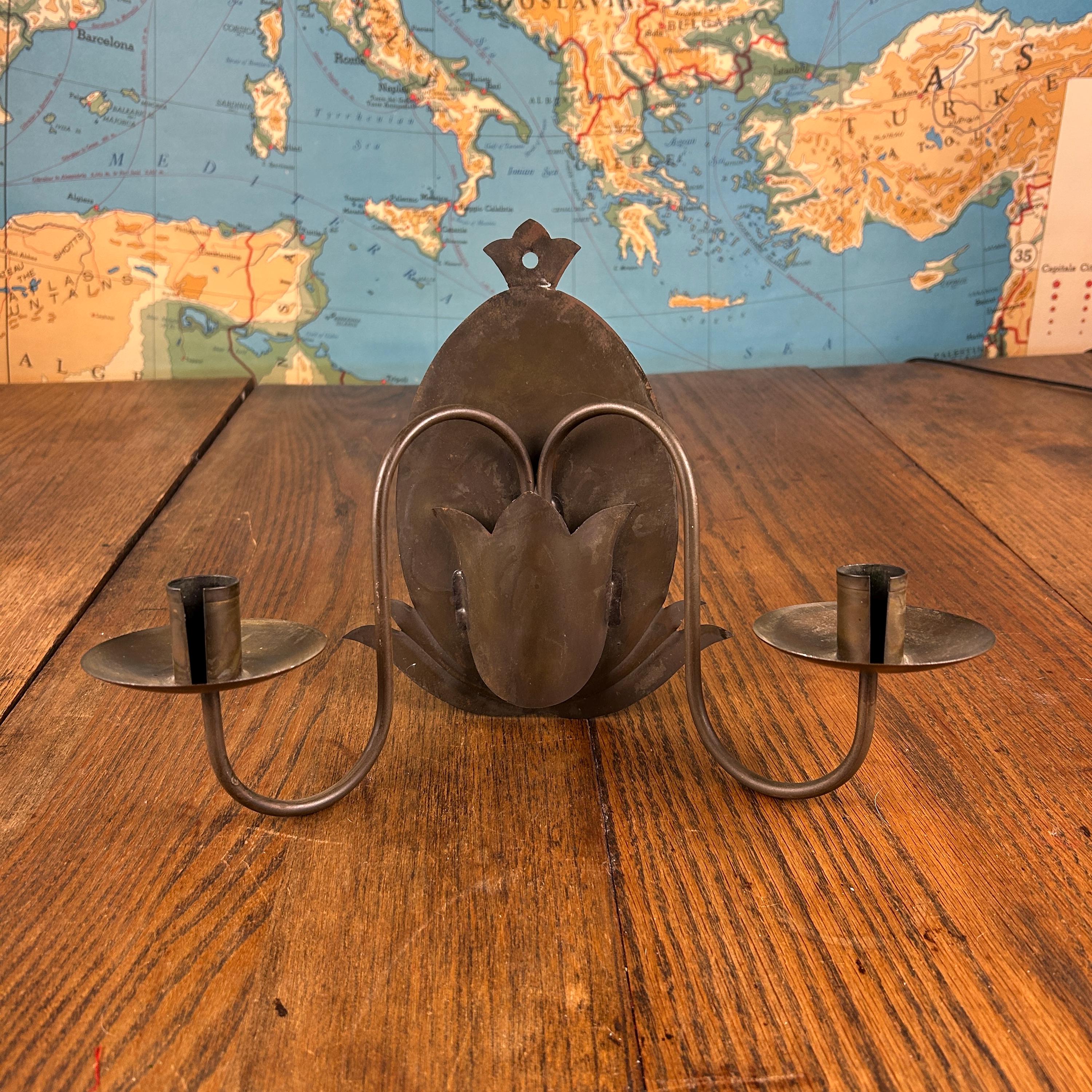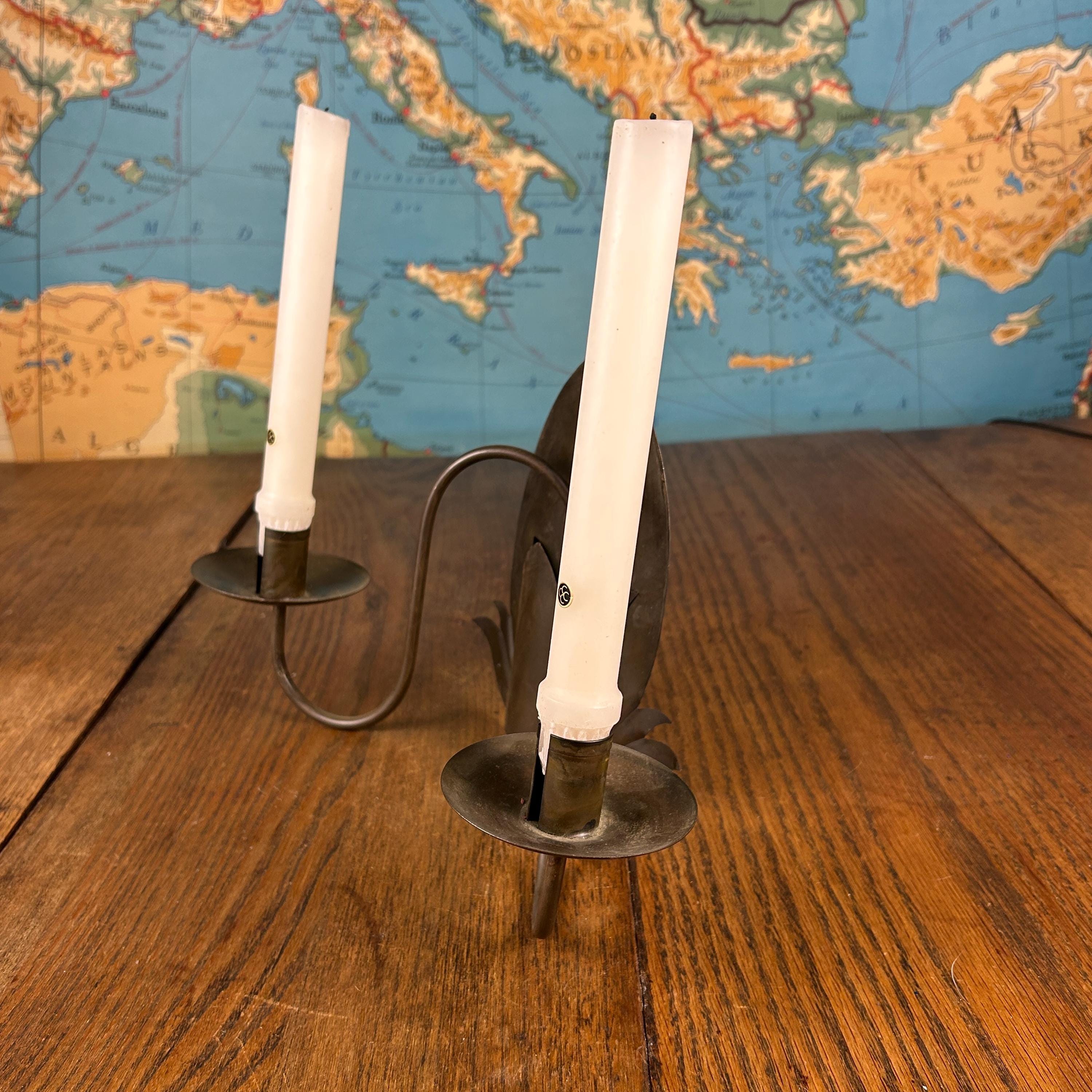 This stunning wall sconce is a beautifully crafted, hand-forged iron piece inspired by 18th-century Flemish design.
