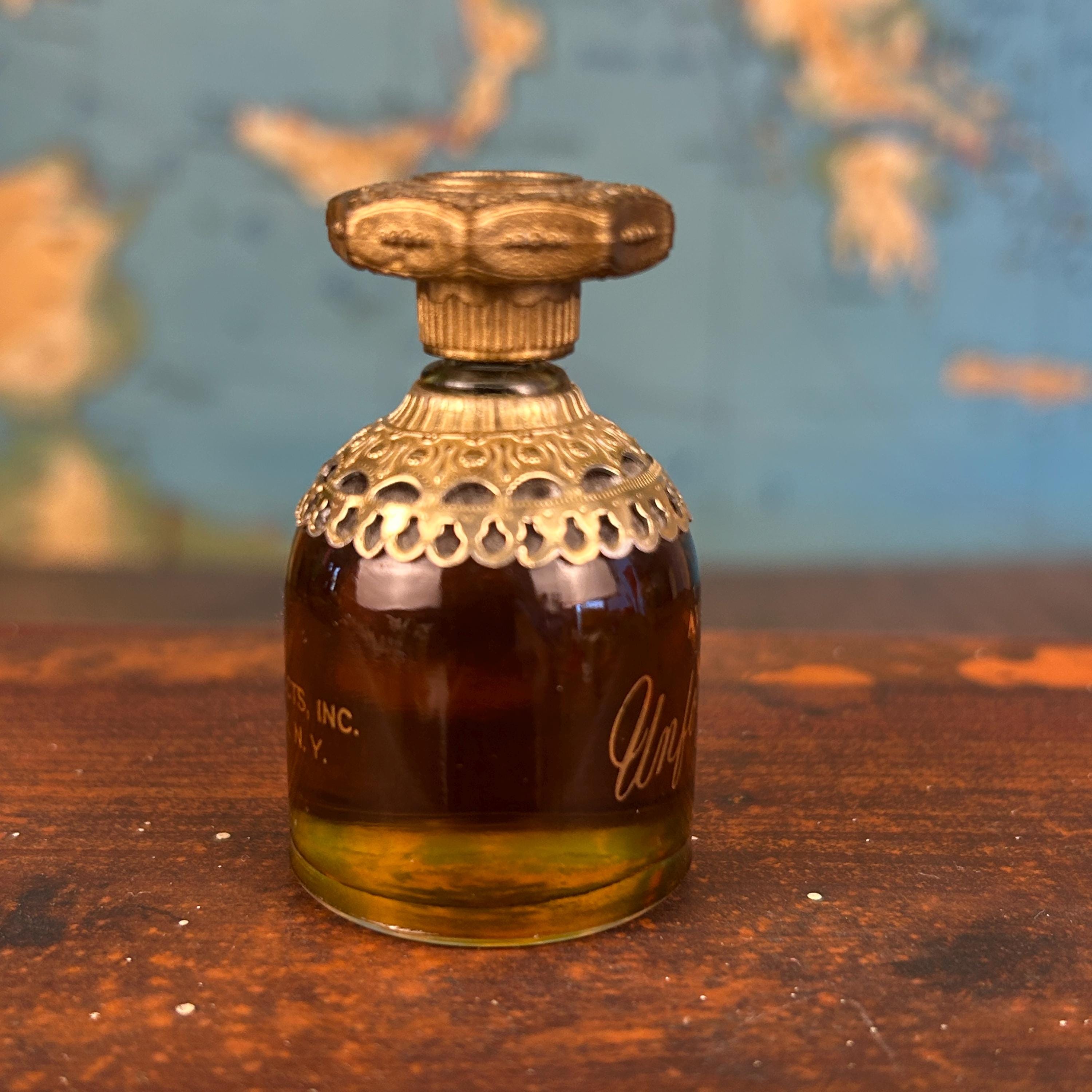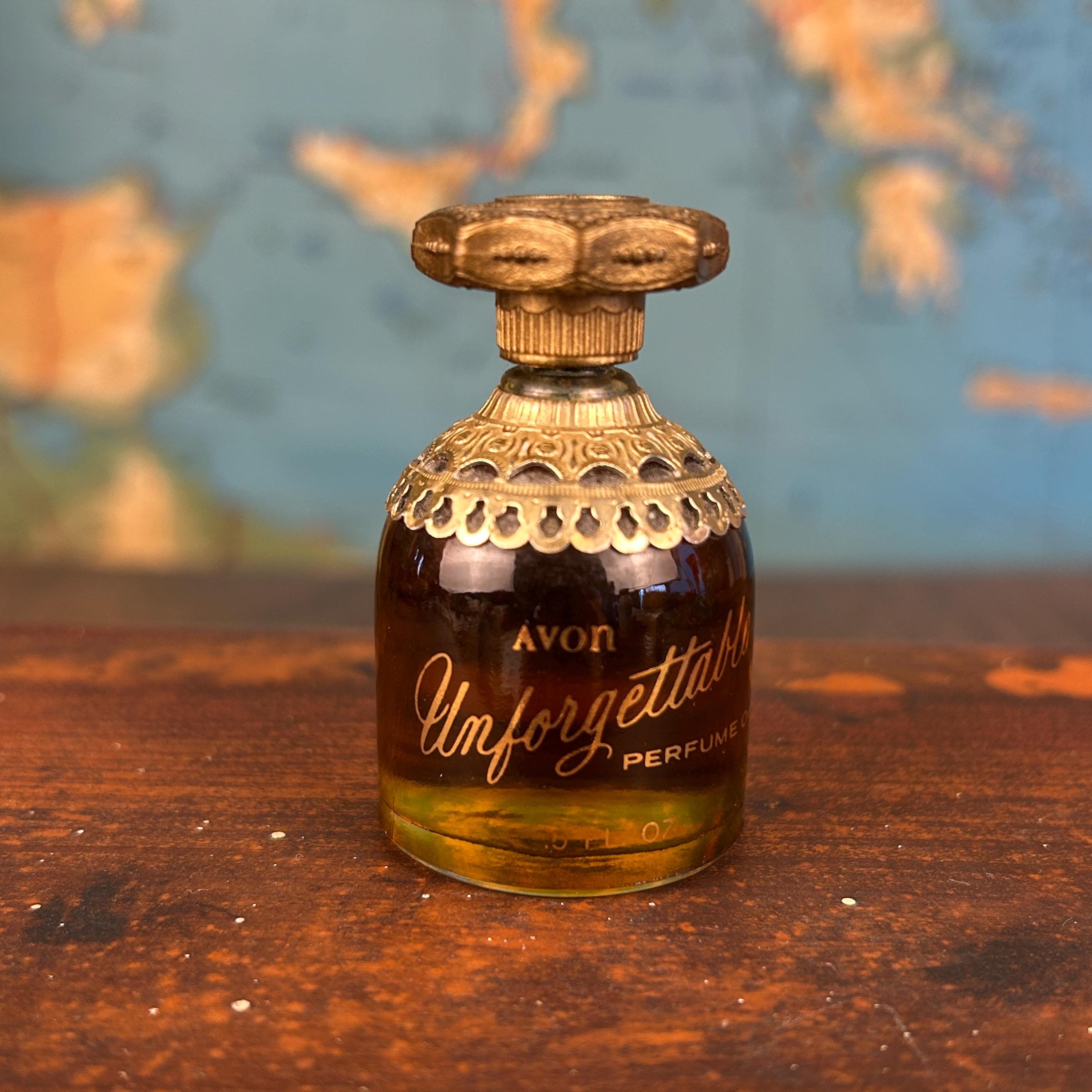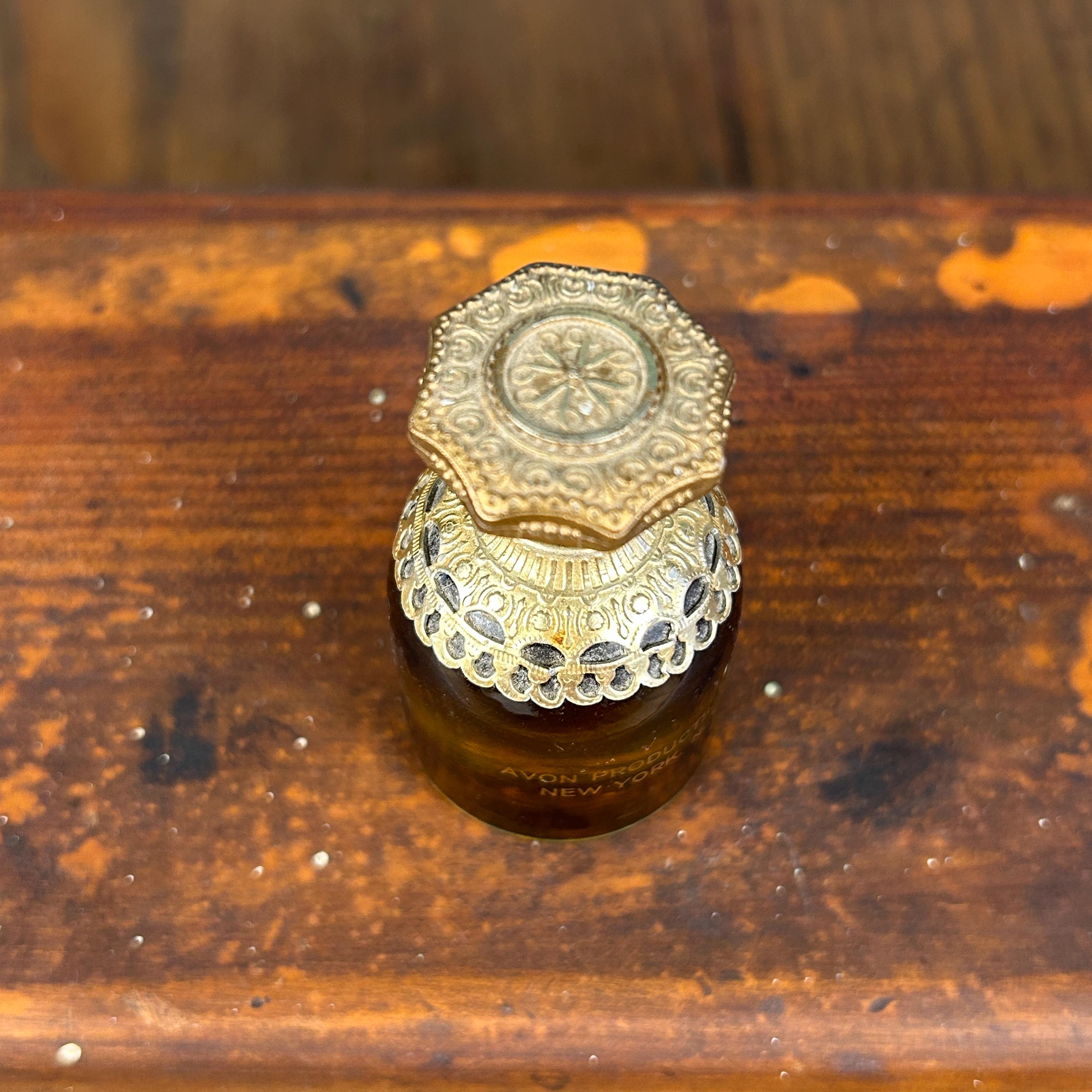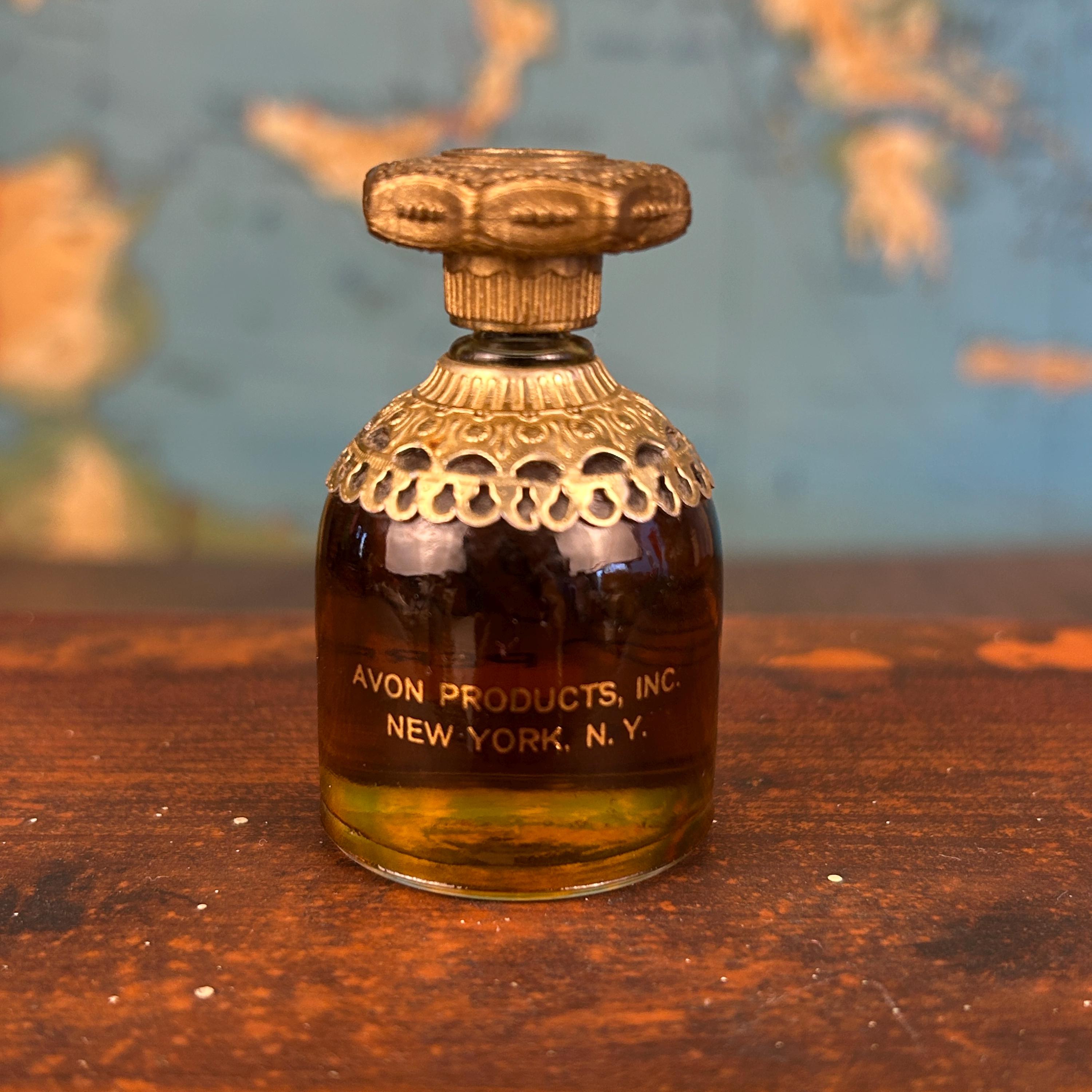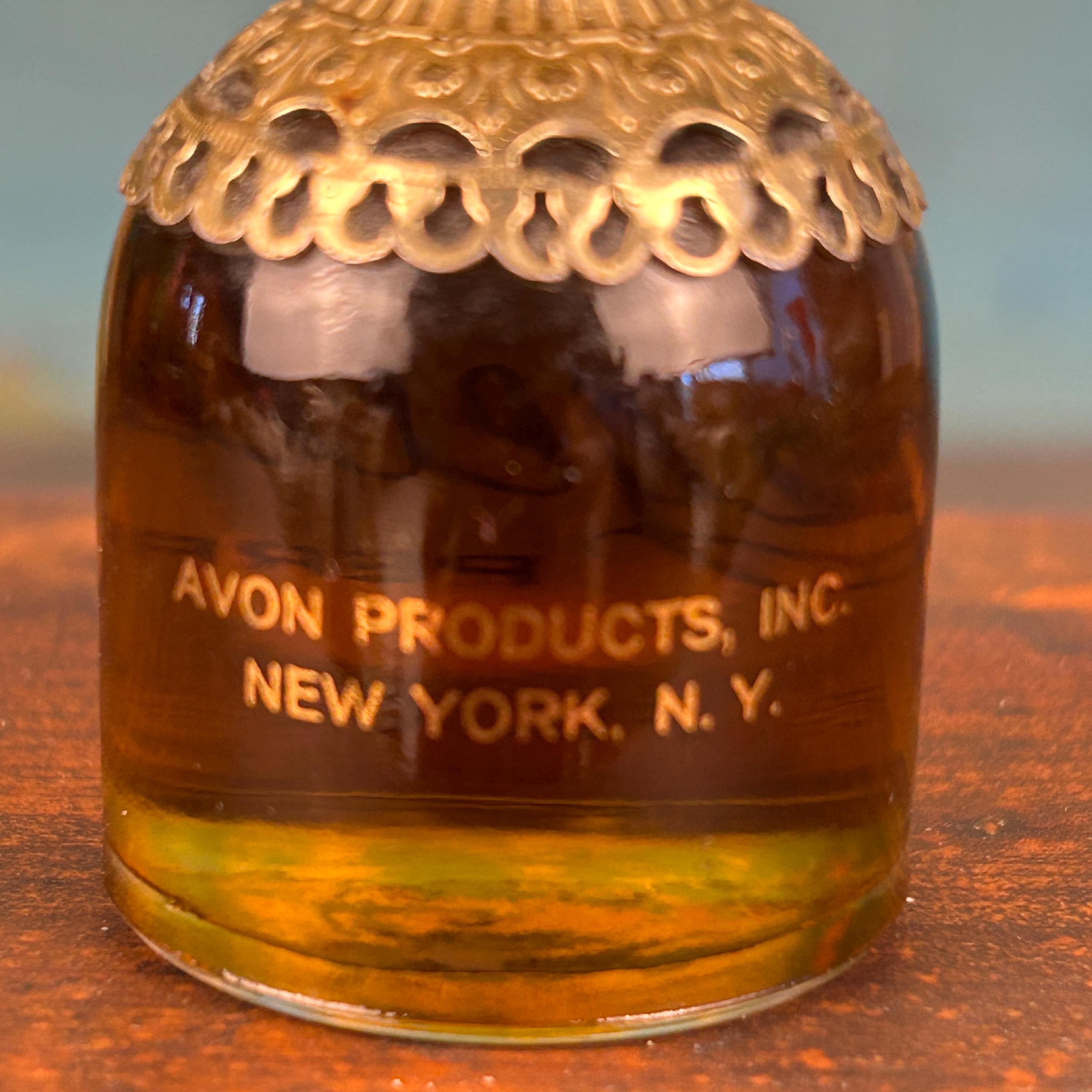 The petite glass bottle features an elegant gold-tone cap and ornate neck collar, giving it that classic Avon charm collectors love. Even better—this bottle still contains a full amount of original perfume, making it both a collectible and a nostalgic fragrance piece.