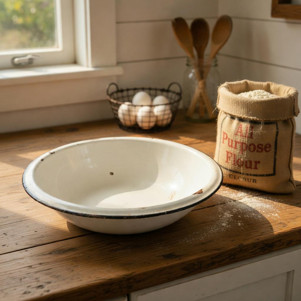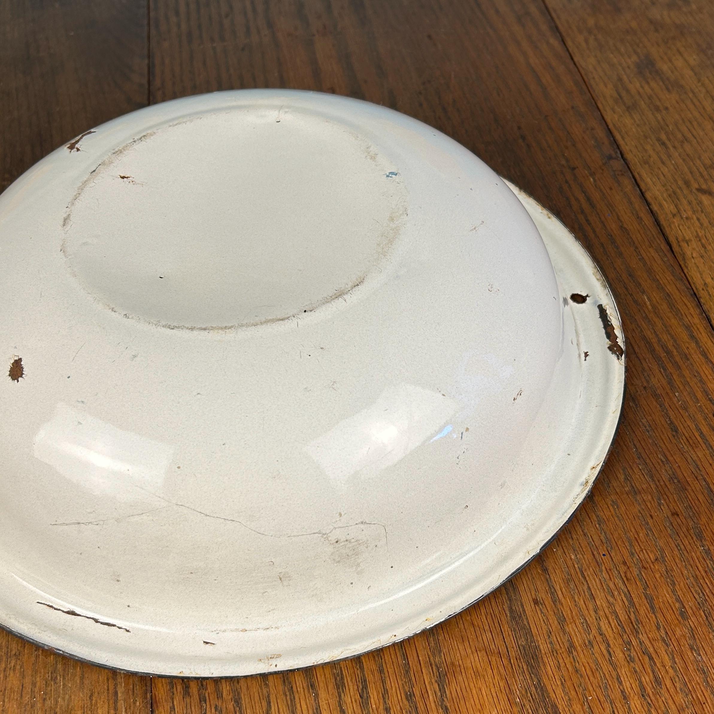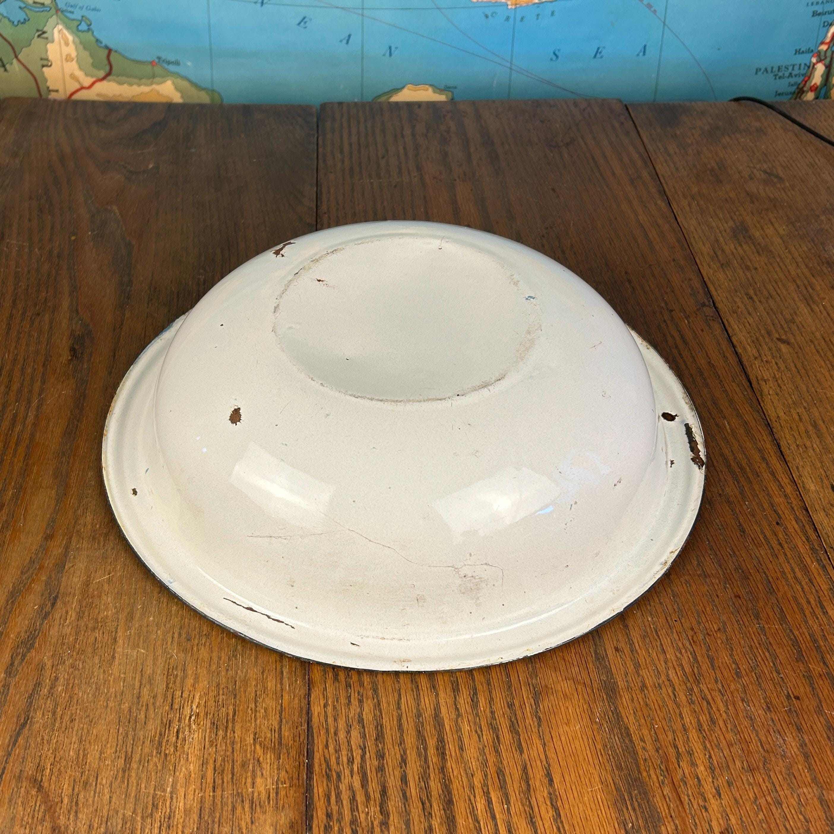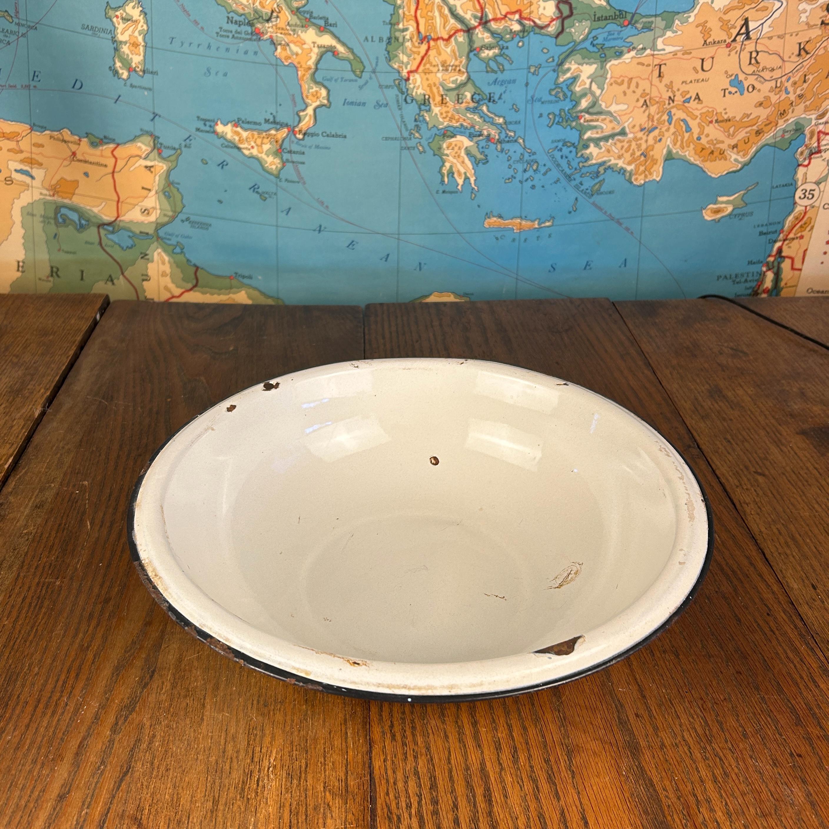 This classic vintage enamelware basin bowl, often called graniteware, is a timeless farmhouse staple with endless charm.