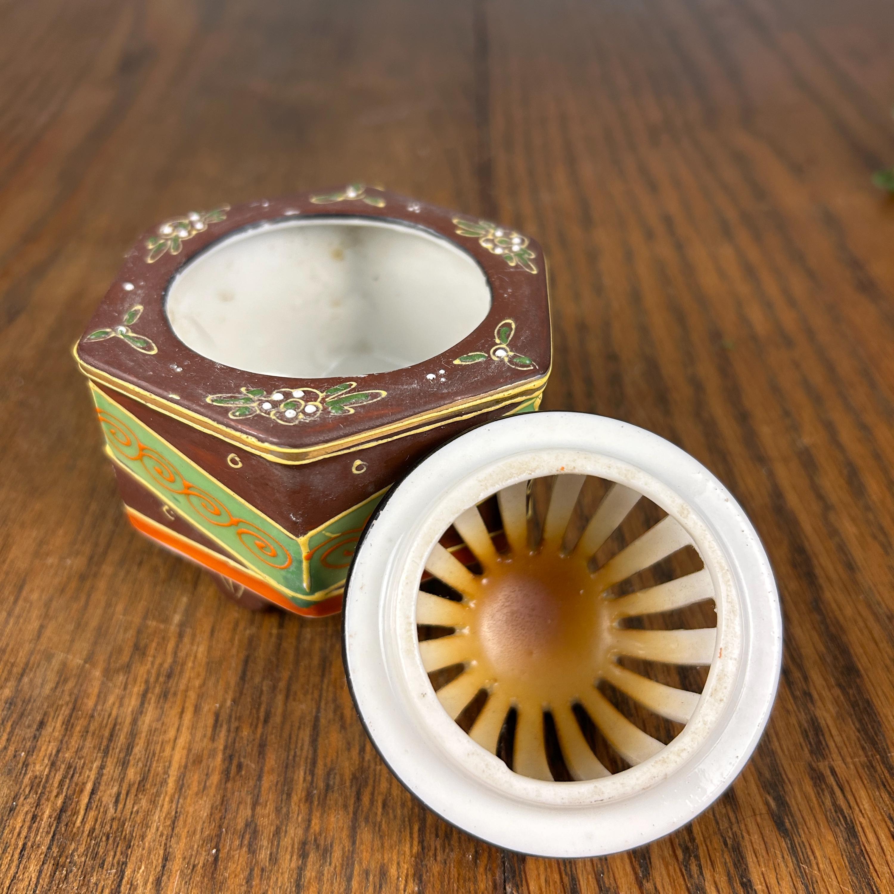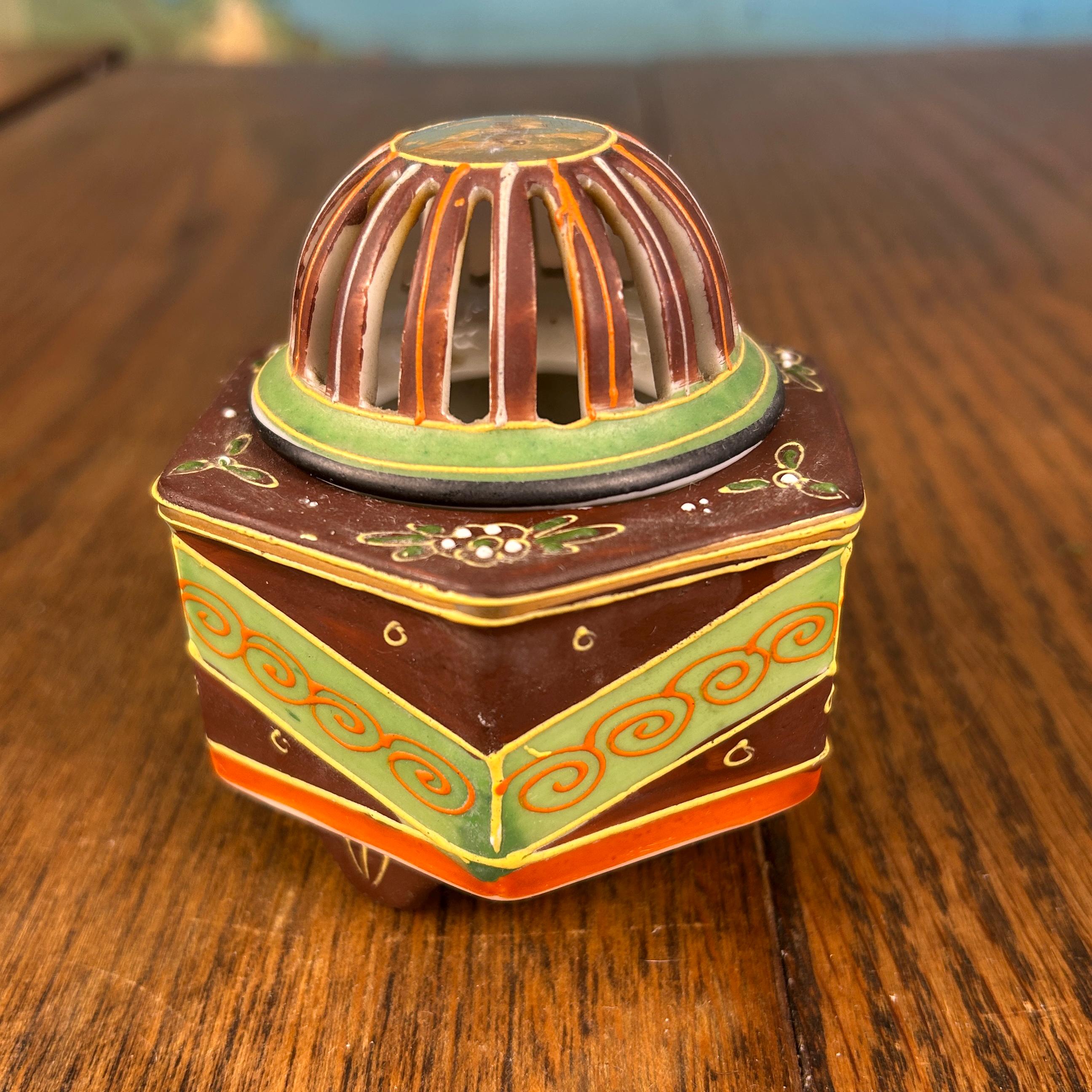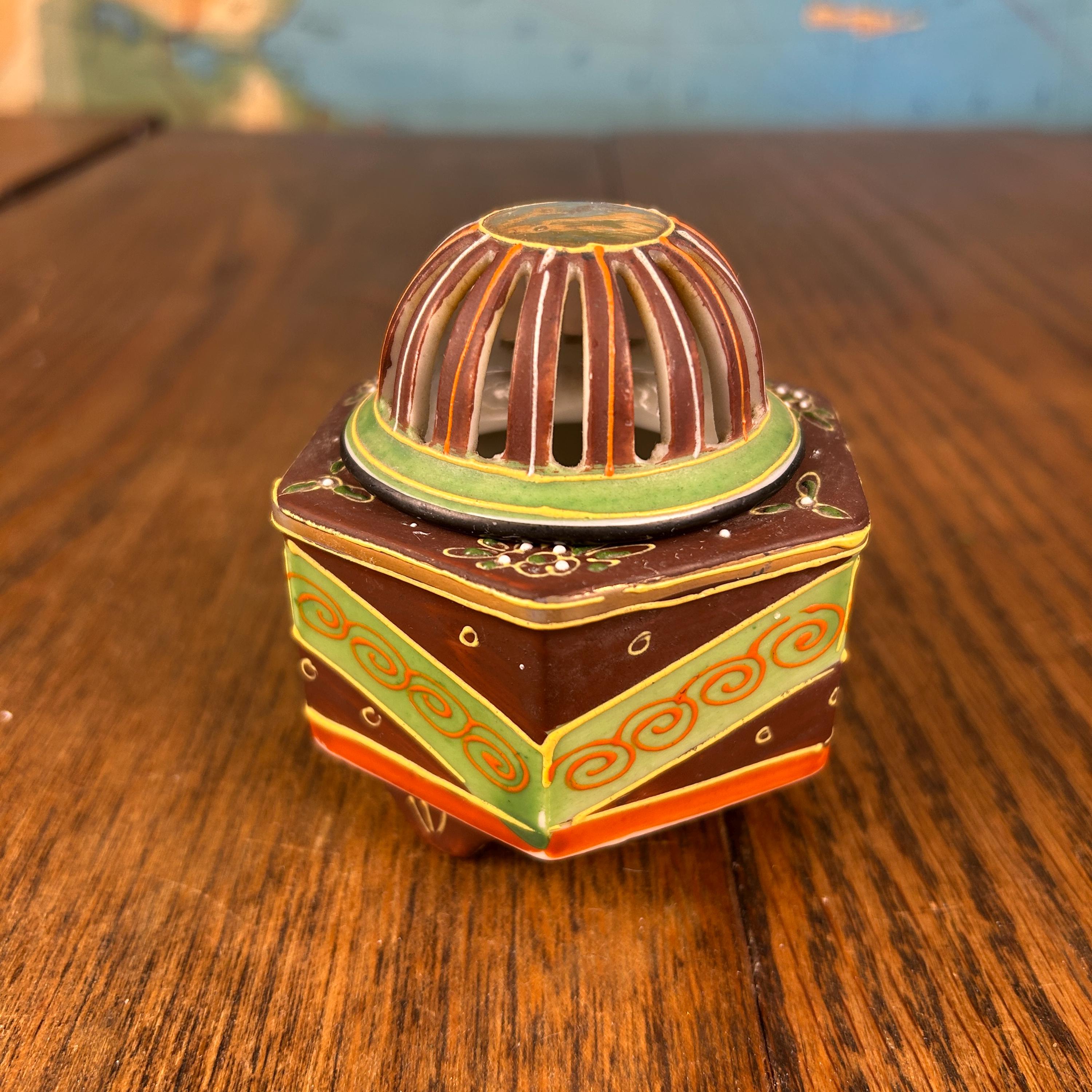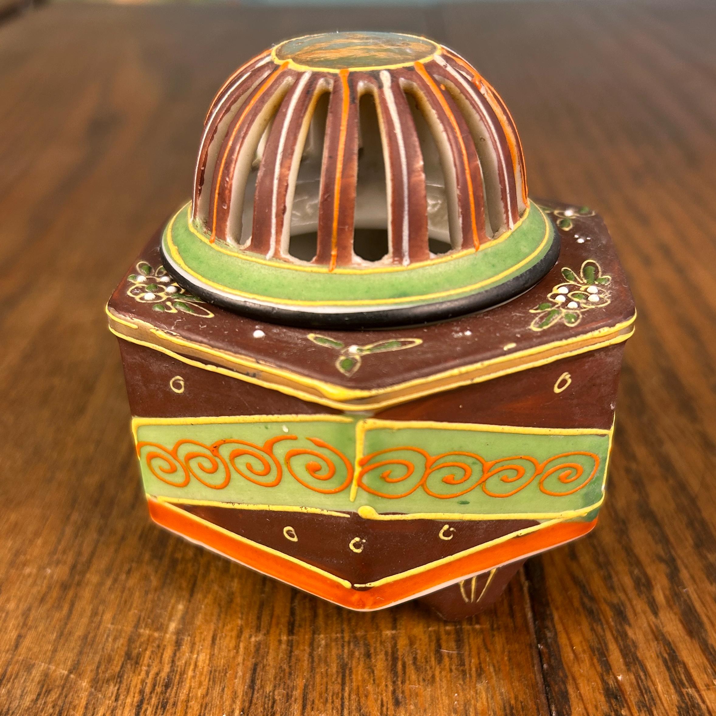 This beautiful vintage Japanese Satsuma incense burner dates to around the 1920s and showcases the intricate artistry Satsuma pieces are known for.